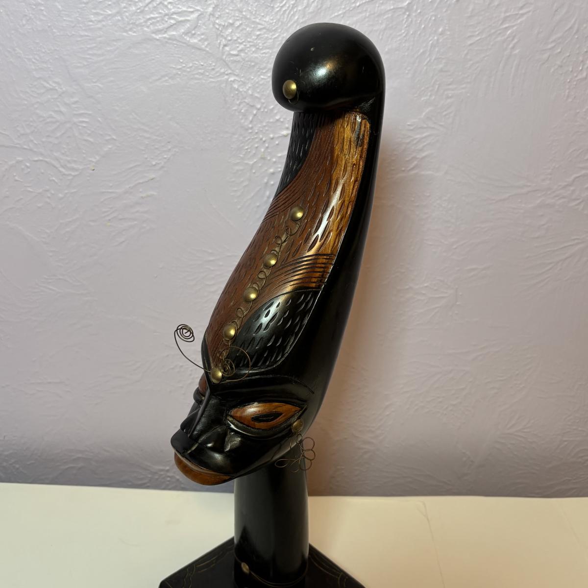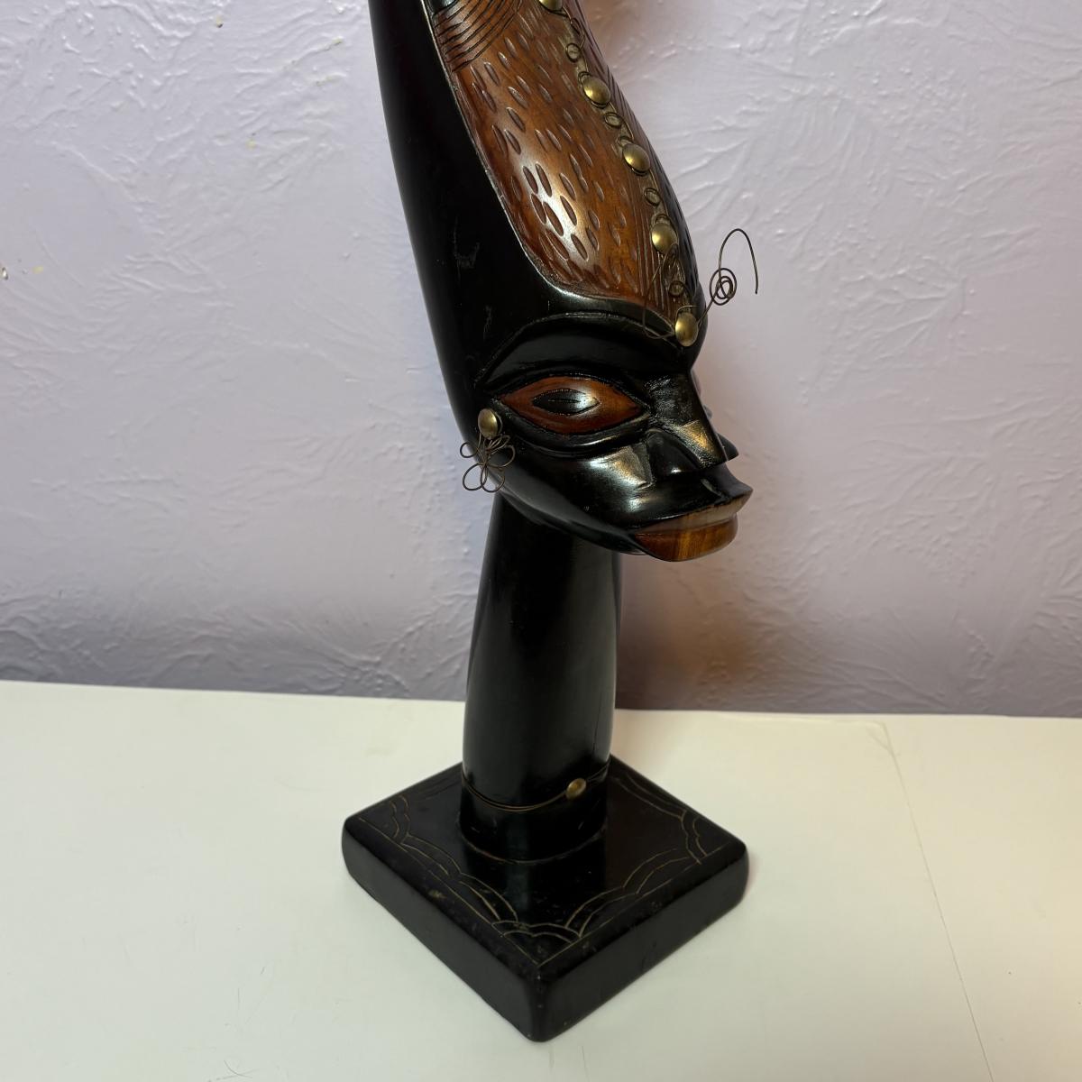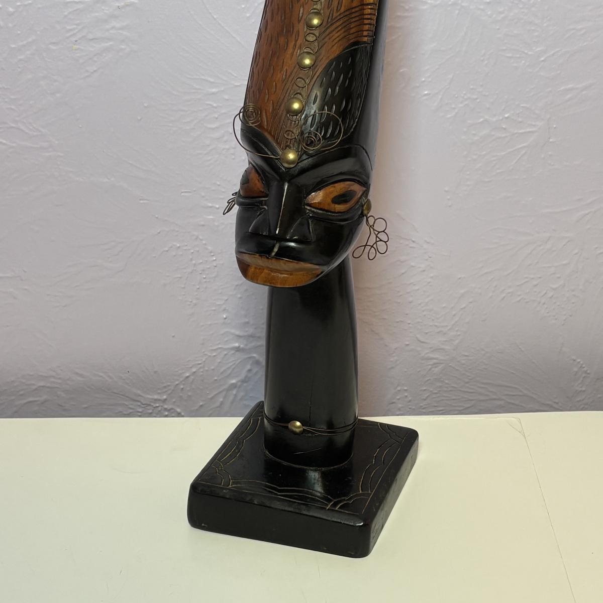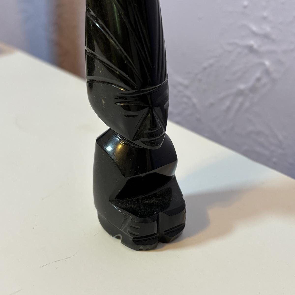 LOT 90: Vintage Carved Wooden Tribal Statue w/Metal Accents, Hand Made in Kenya Wall Art/Trivet along with 2 Black Onyx Statues