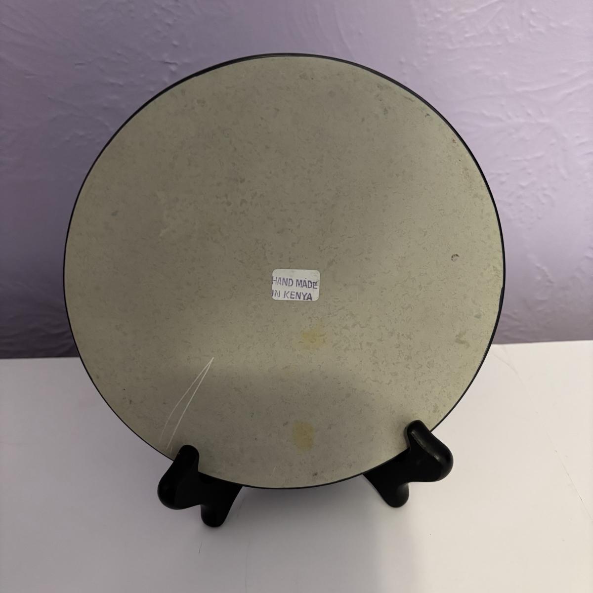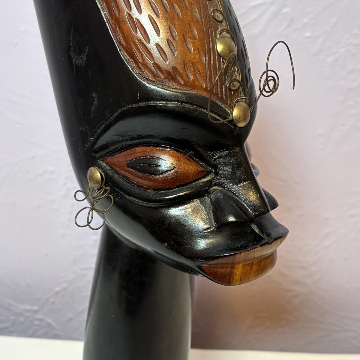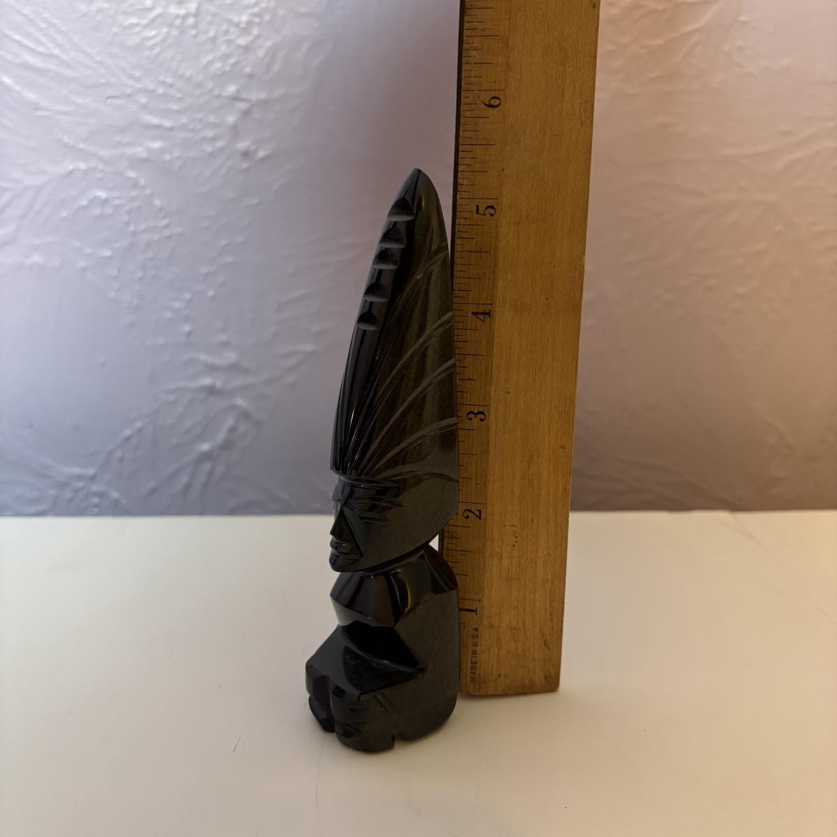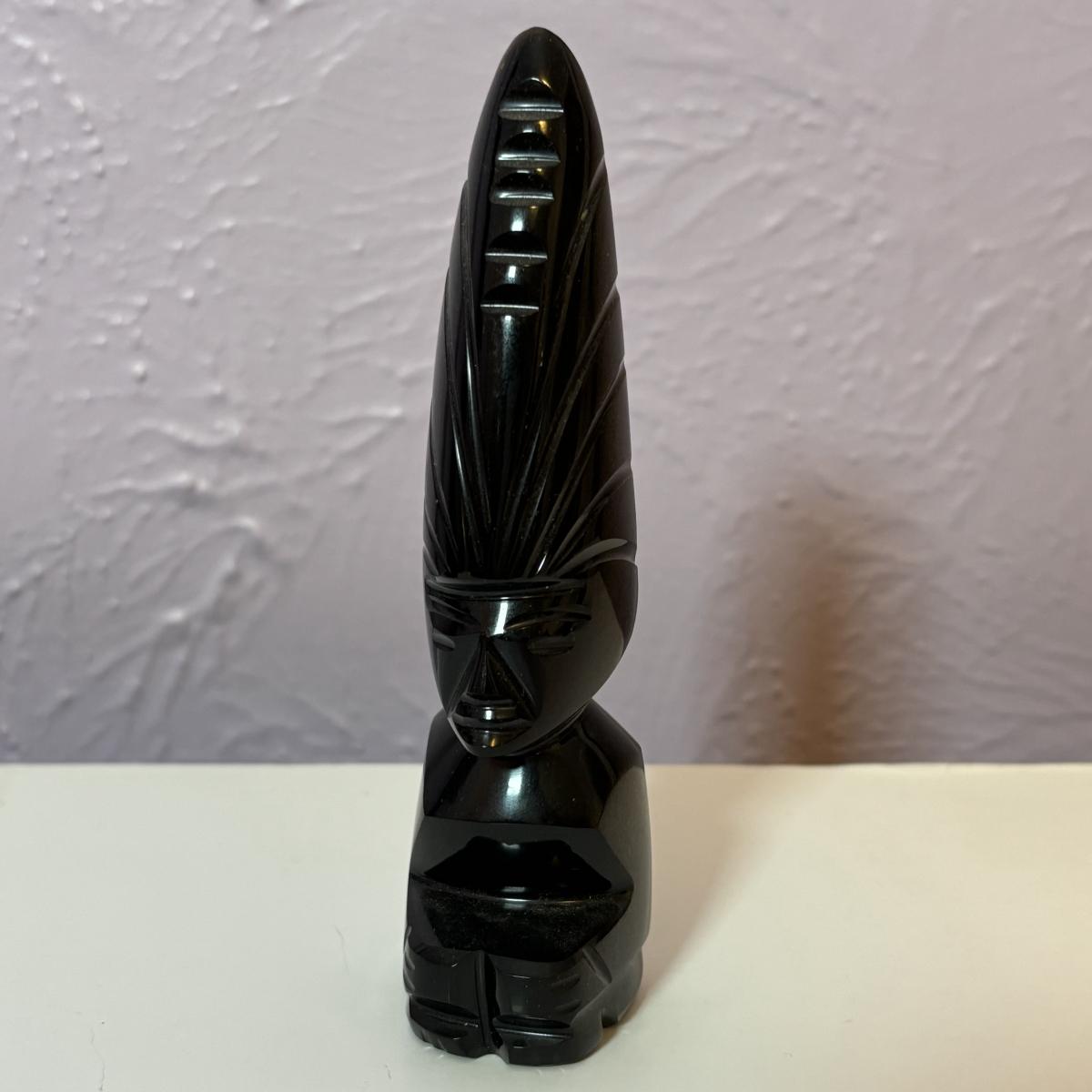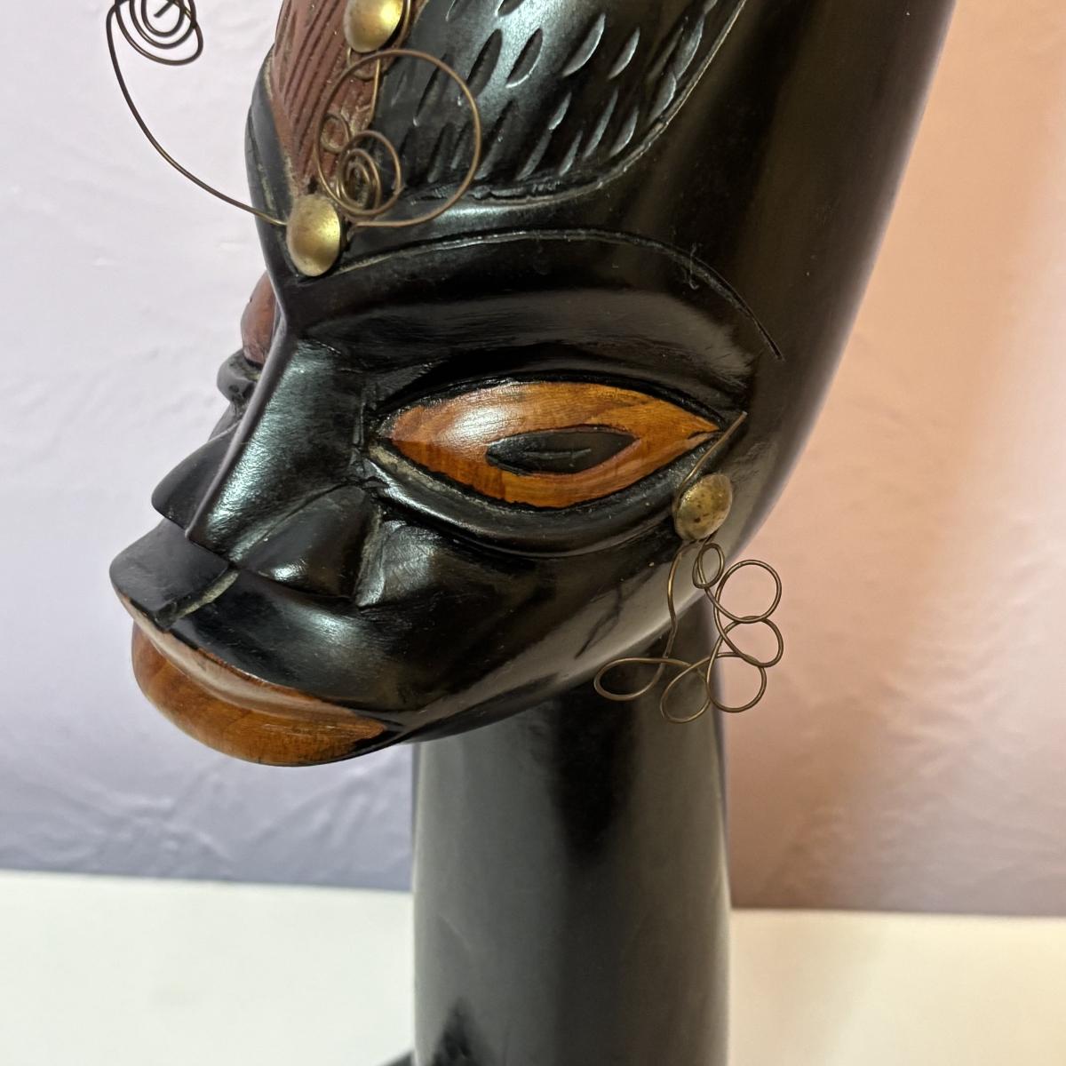 LOT 90: Vintage Carved Wooden Tribal Statue w/Metal Accents, Hand Made in Kenya Wall Art/Trivet along with 2 Black Onyx Statues