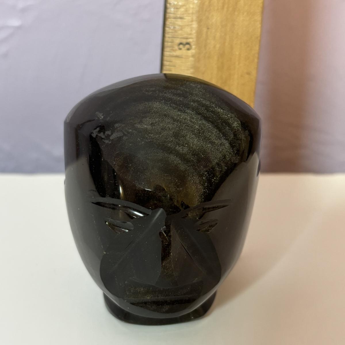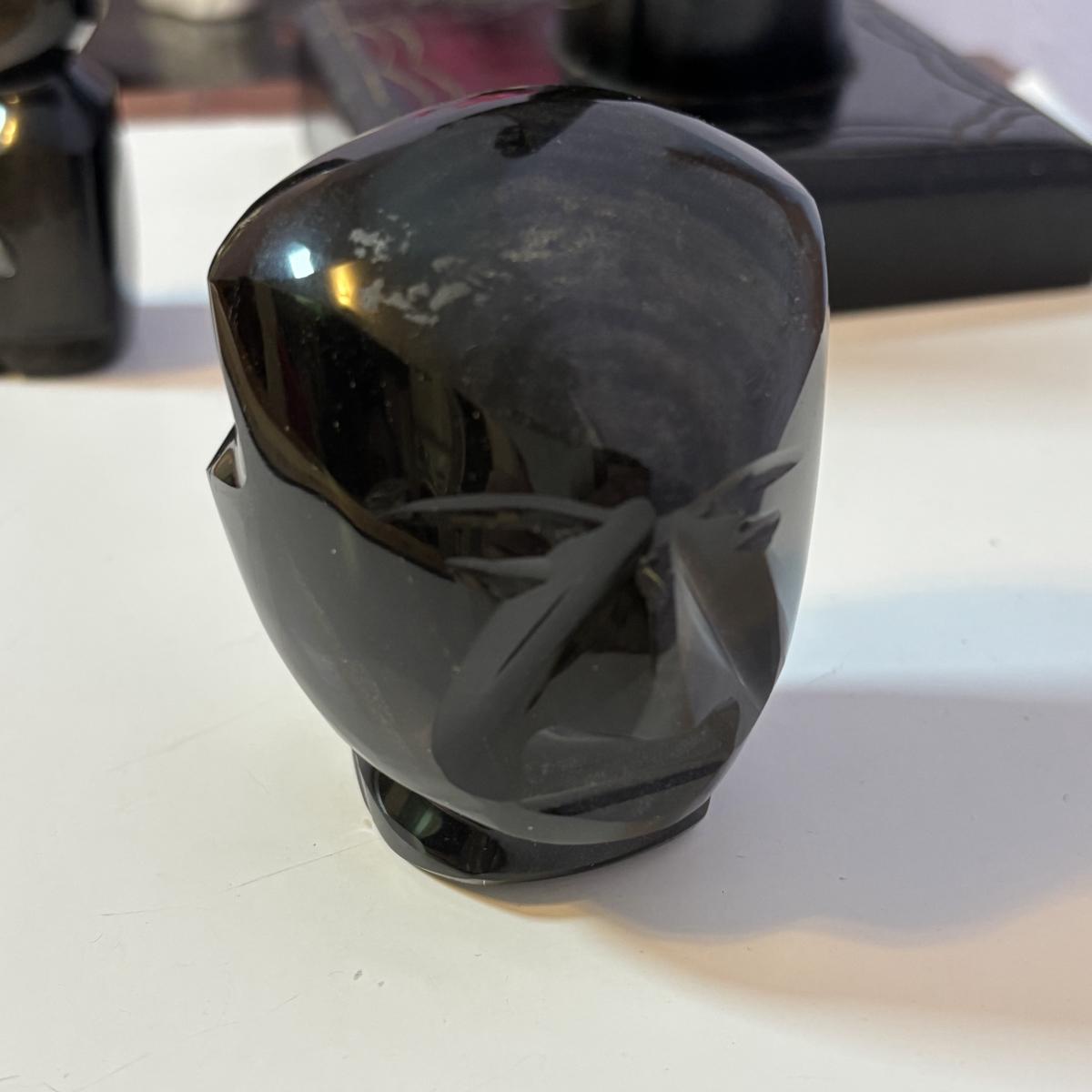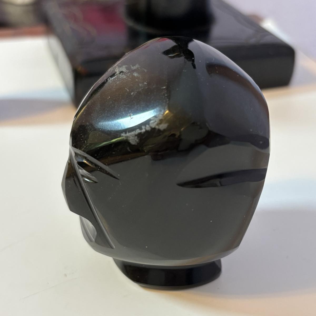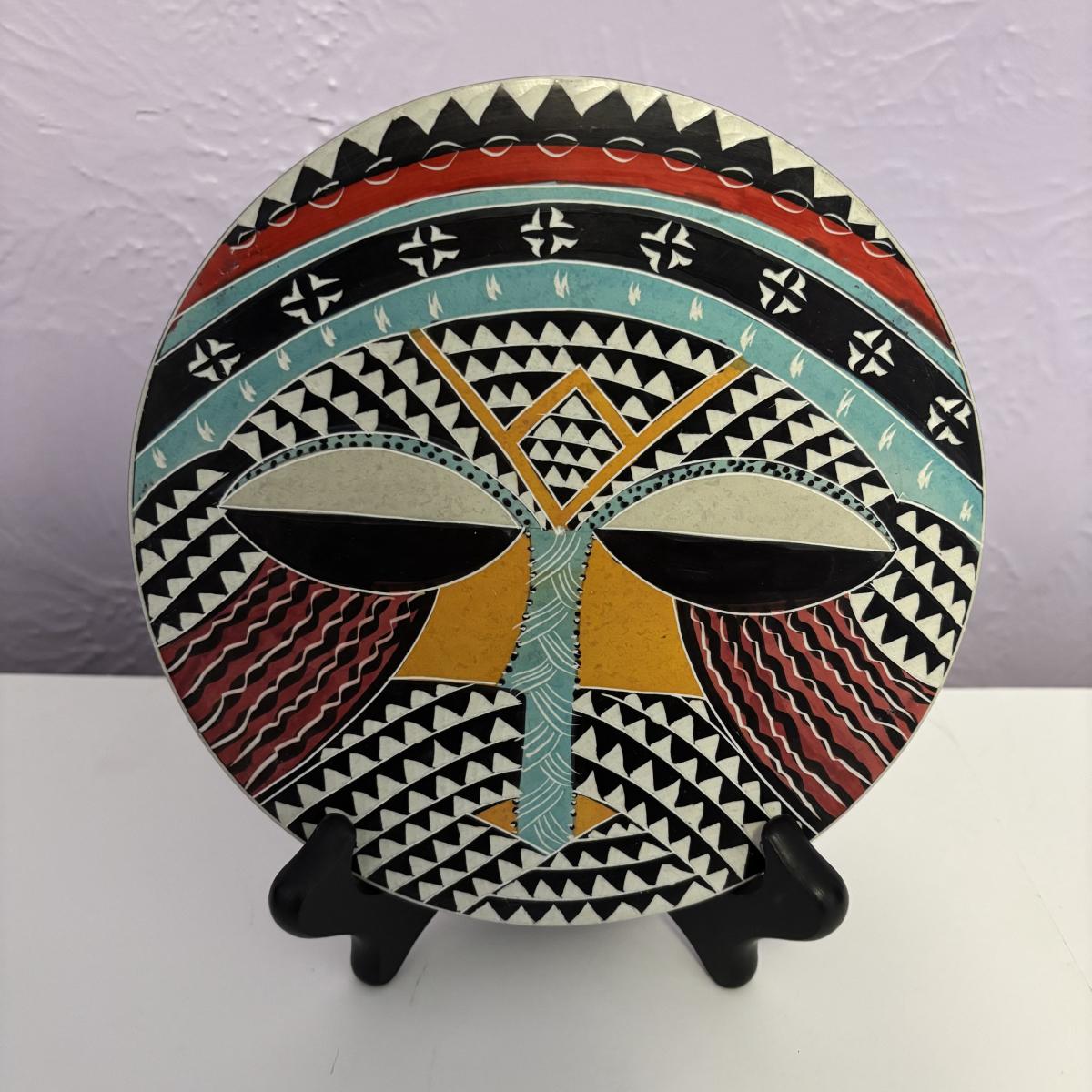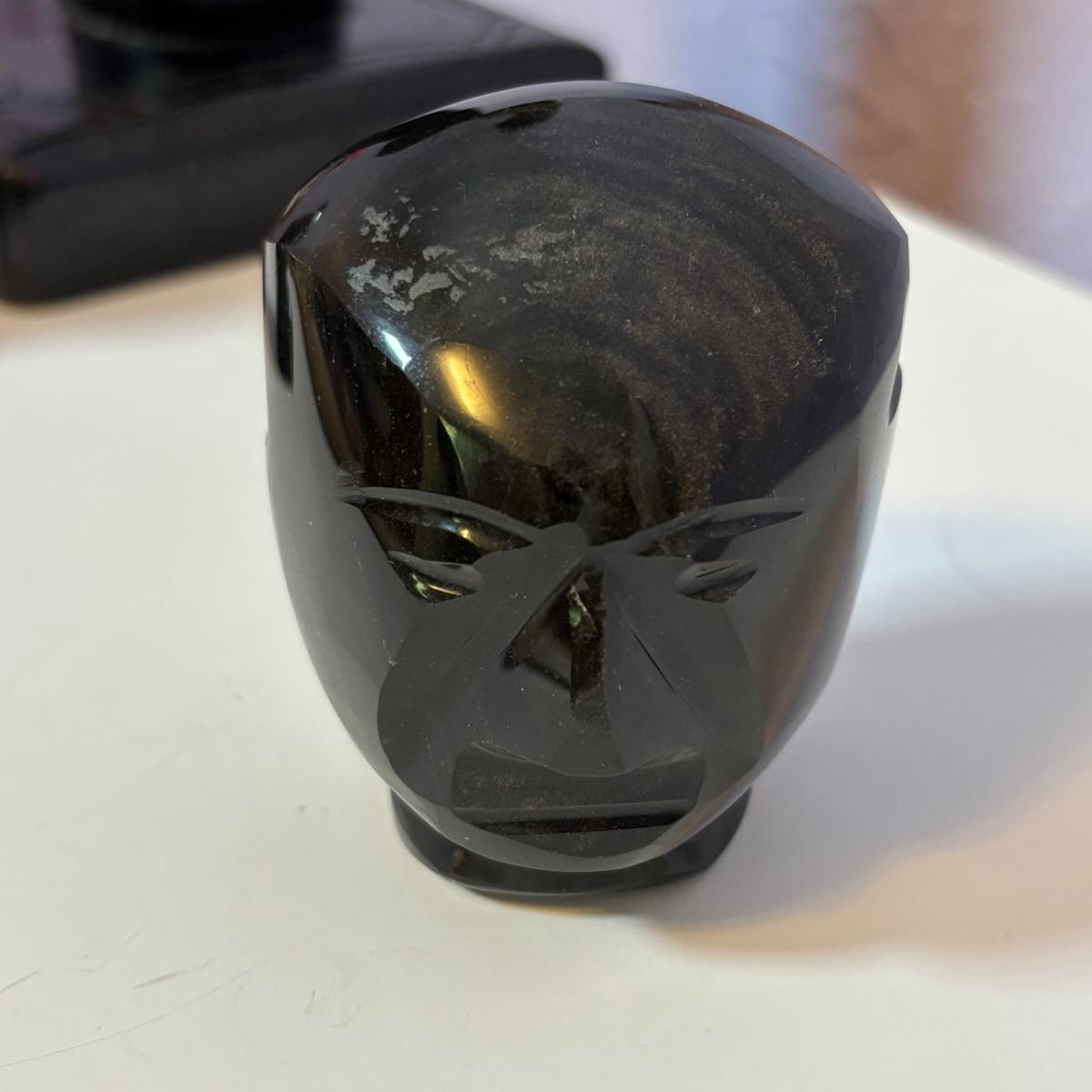 LOT 90: Vintage Carved Wooden Tribal Statue w/Metal Accents, Hand Made in Kenya Wall Art/Trivet along with 2 Black Onyx Statues