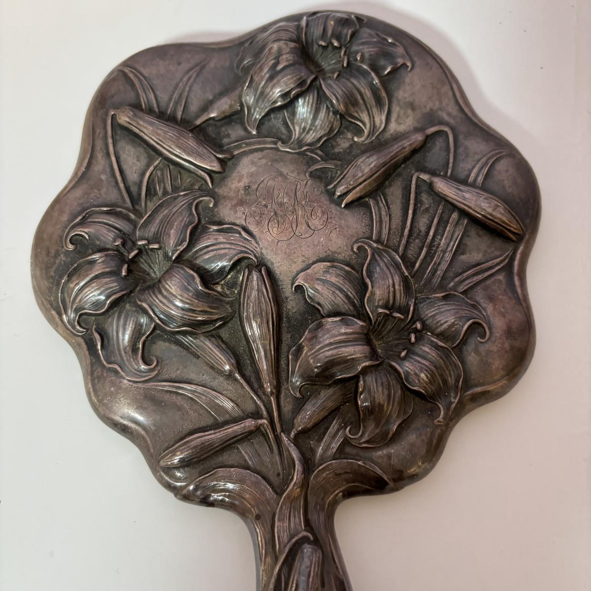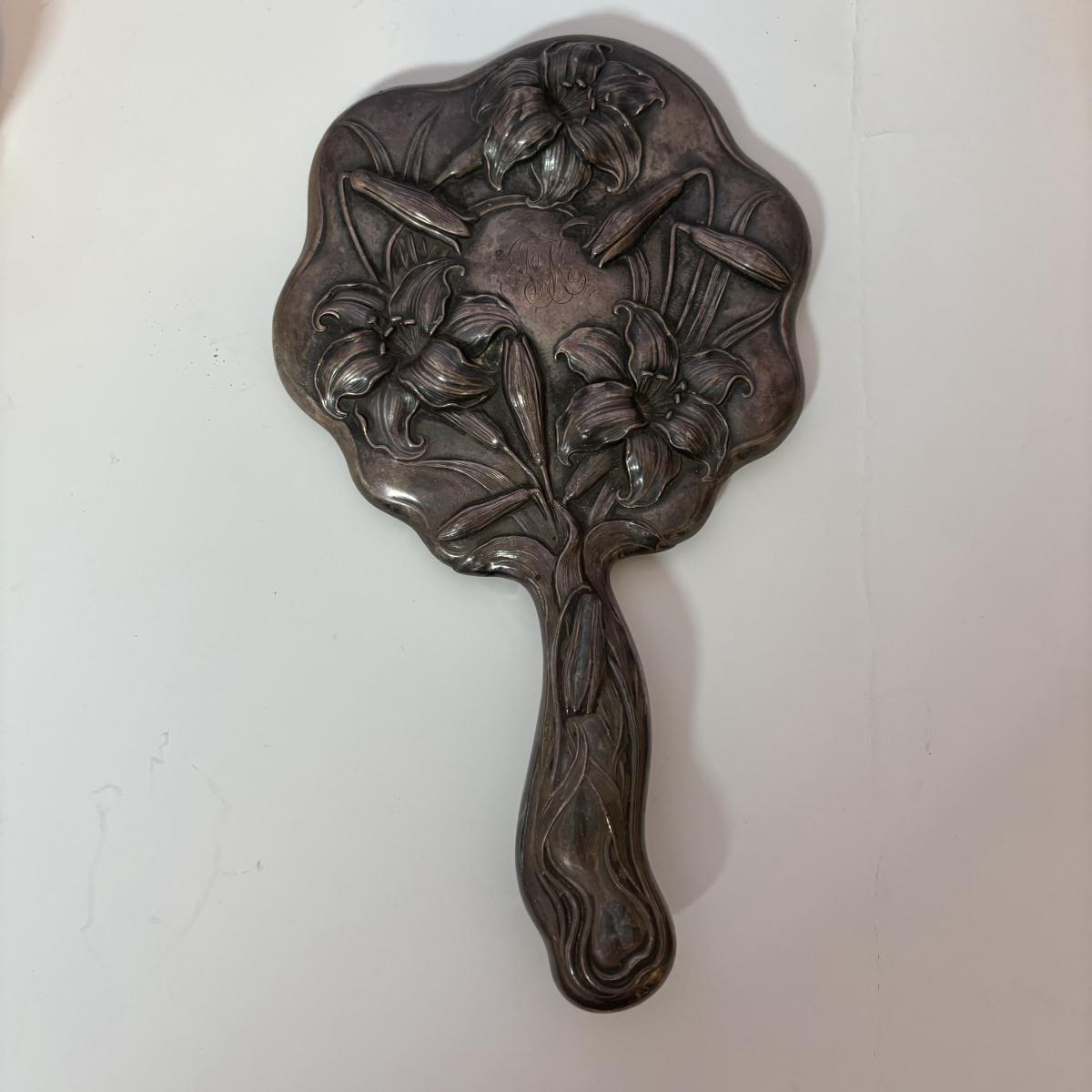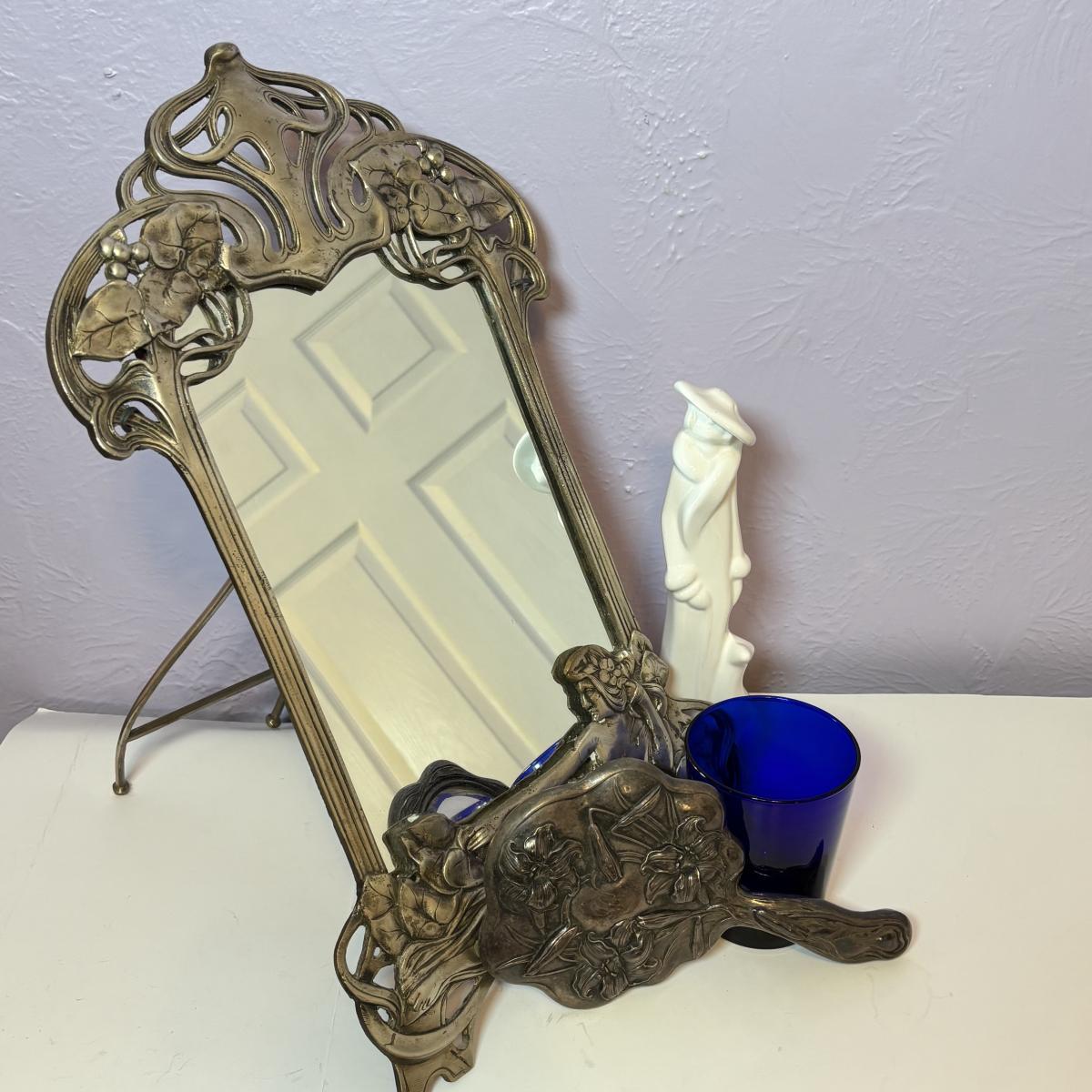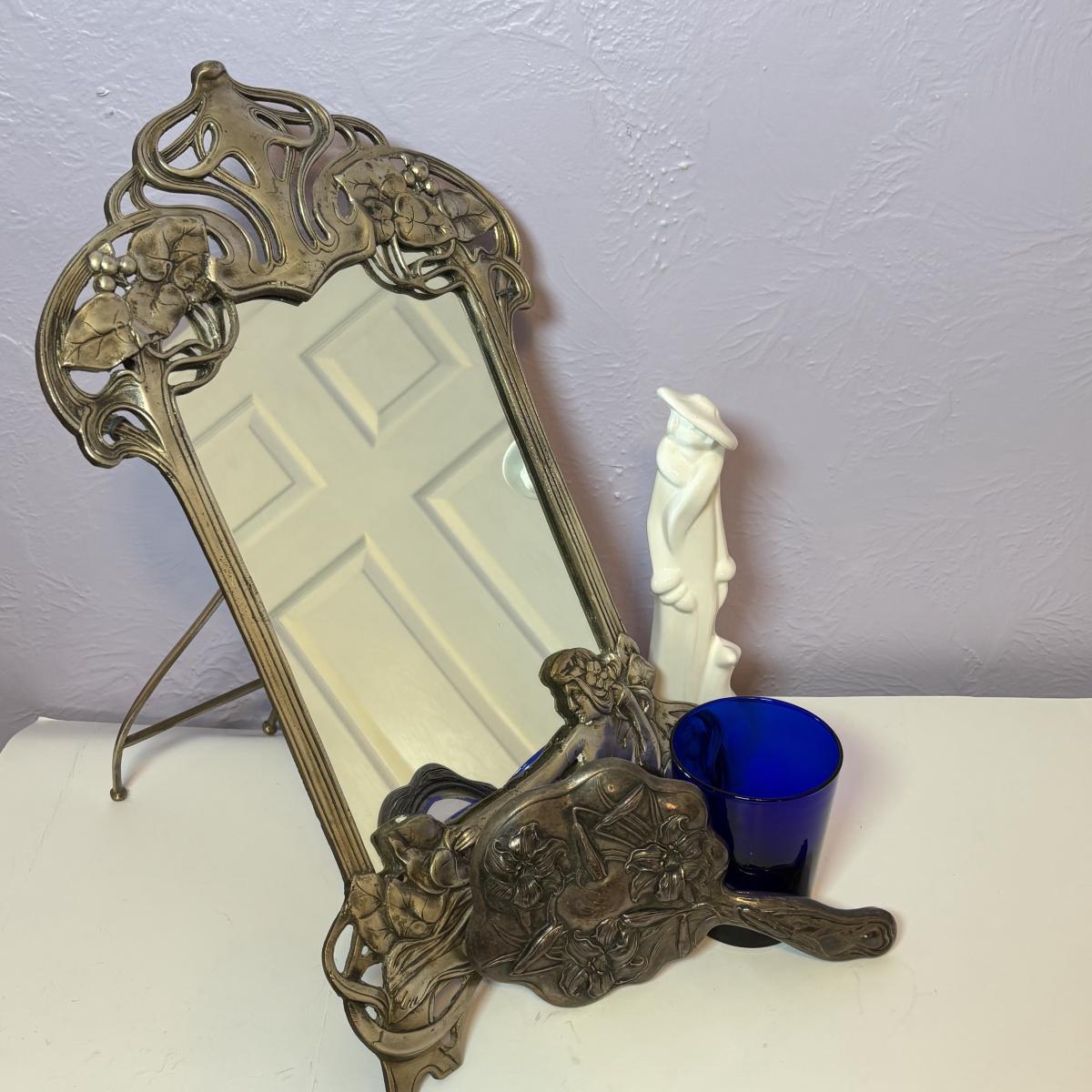 LOT 92: Art Nouveau Standing Mirror, Art Nouveau Handheld Mirror & More