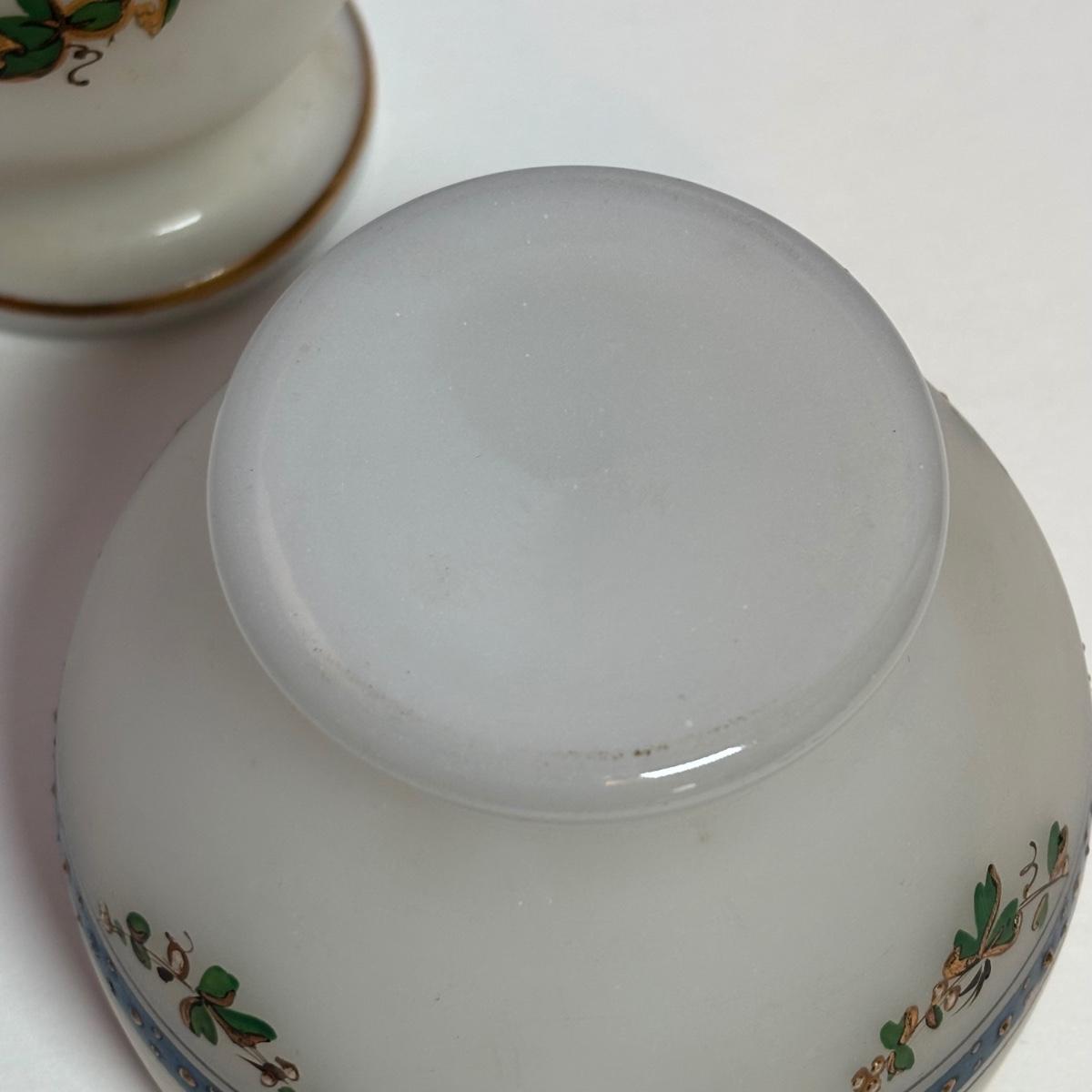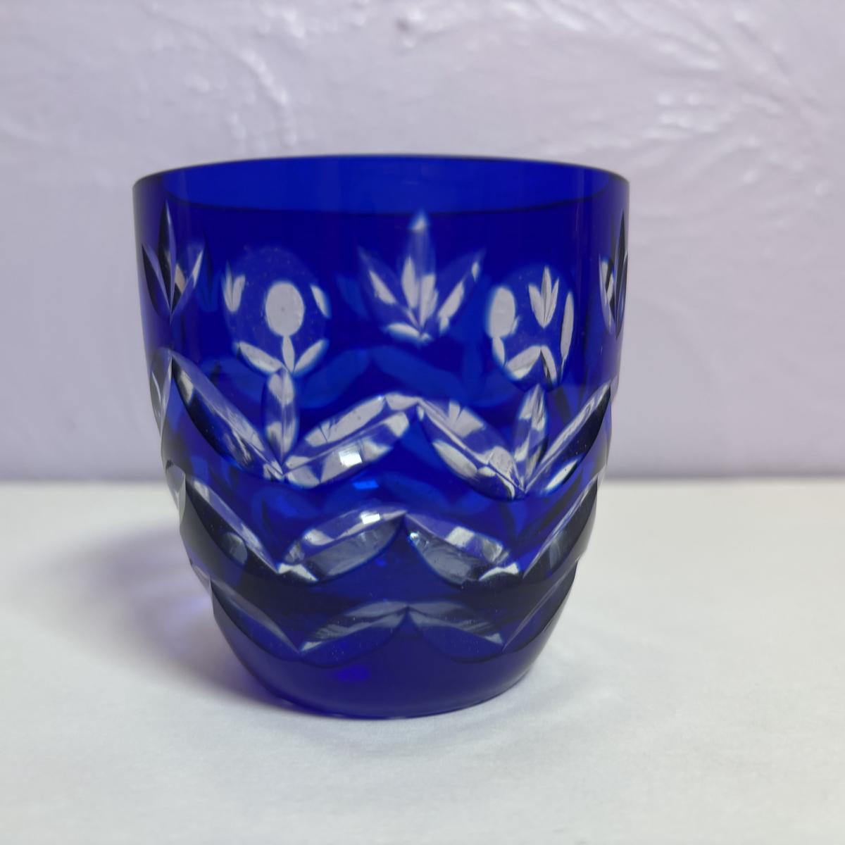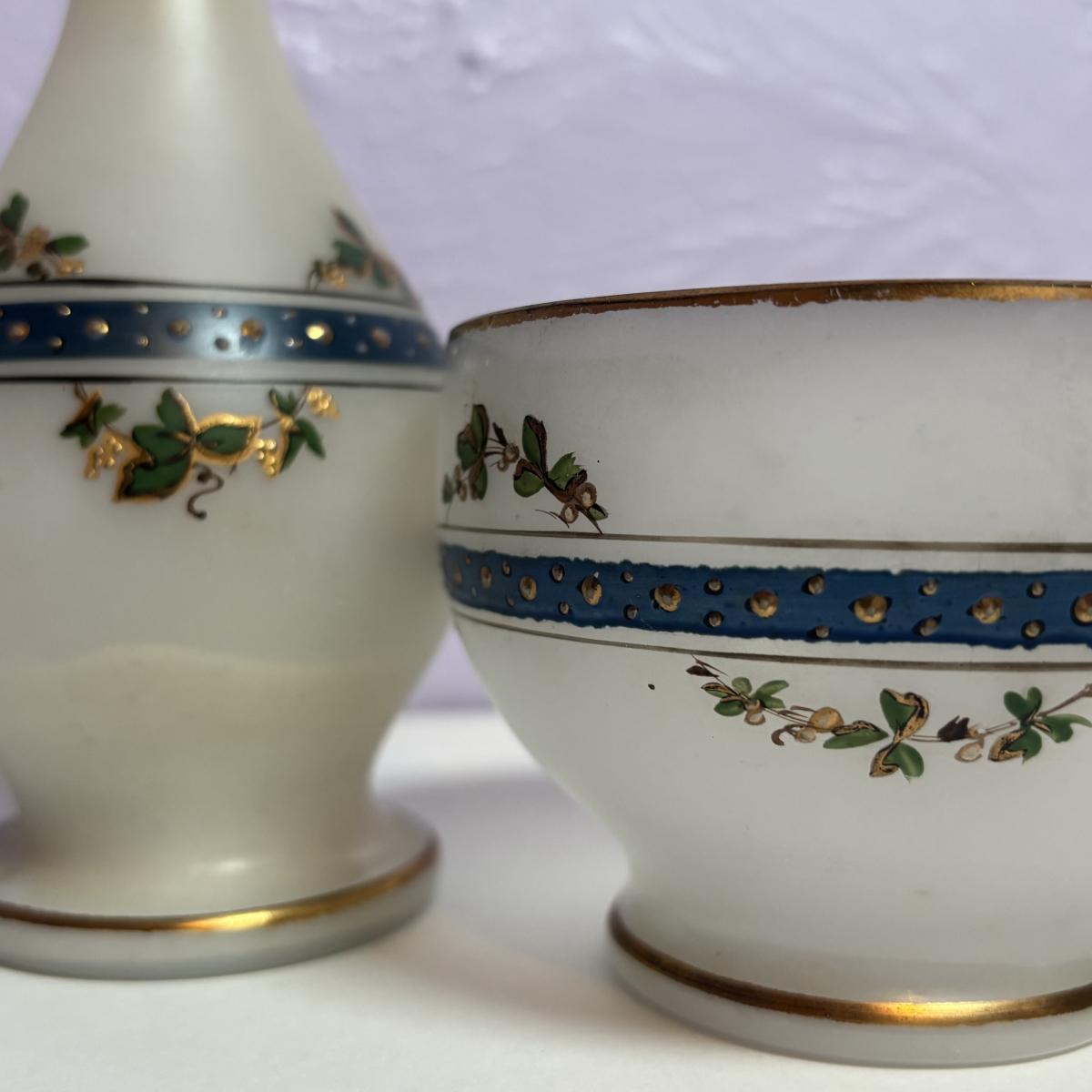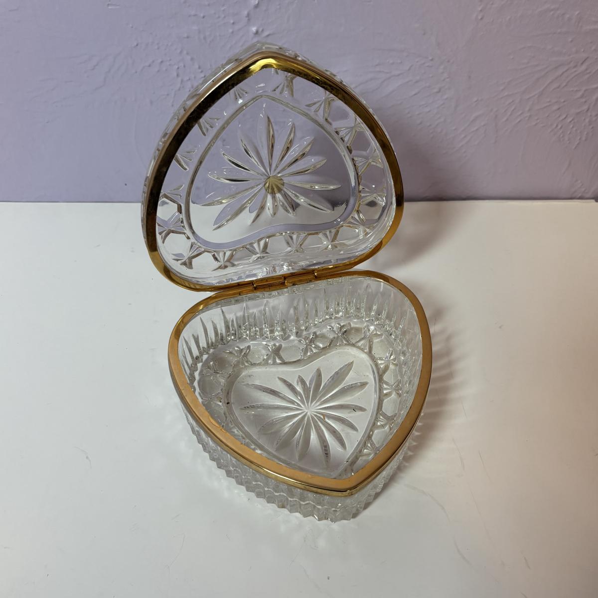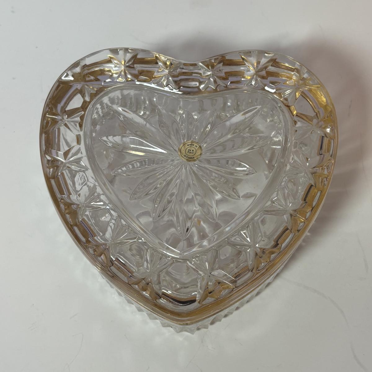 LOT 96: Vintage Cobalt Blue Cut to Clear Glass, Lead Crystal Heart, Frosted Dog Inkwells w/Cherub Mounted on Glass Base, Painted Frosted Glass Perfume Bottle w/Bowl