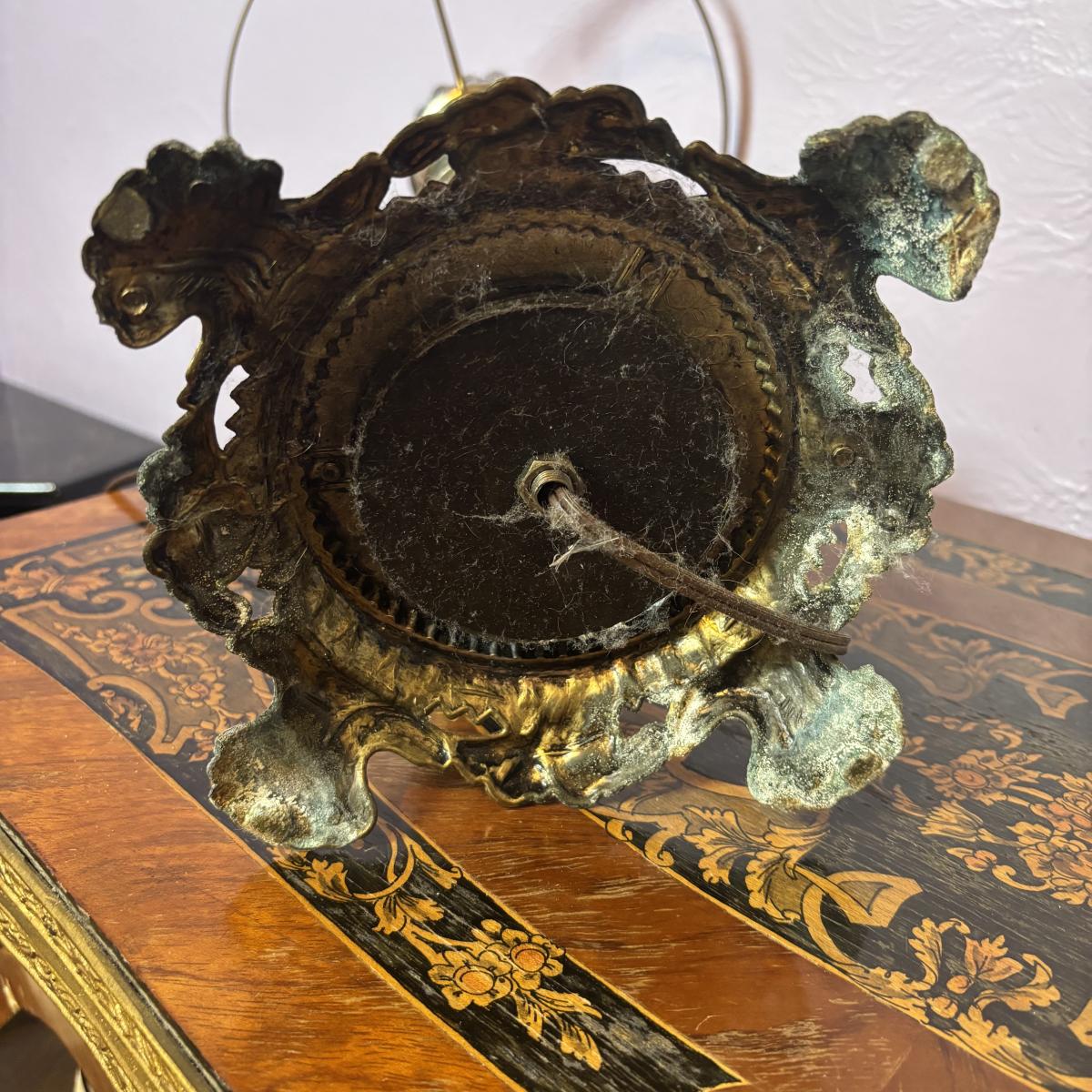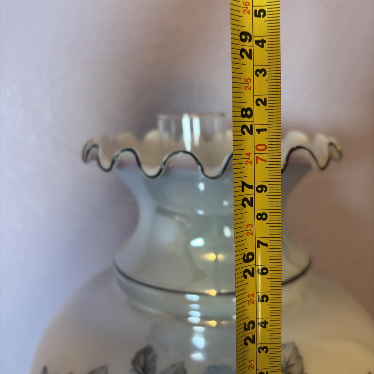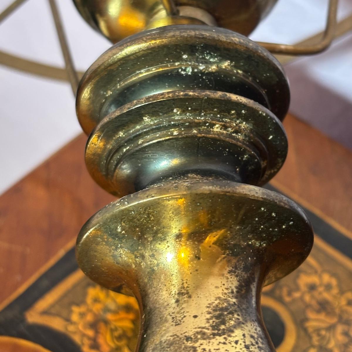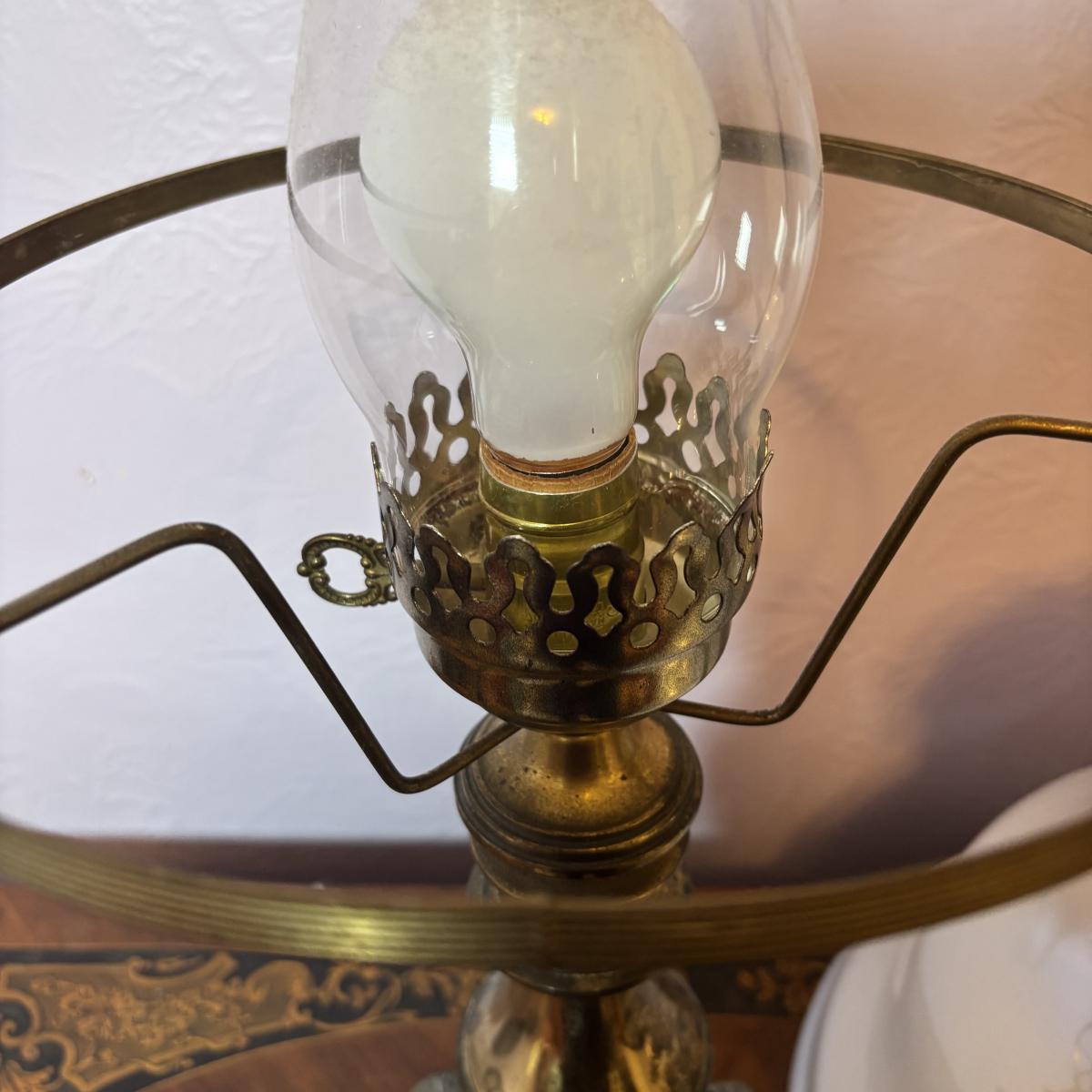 LOT 98: Brass Table Lamp w/Blue Floral Shade and Marble Accent Base