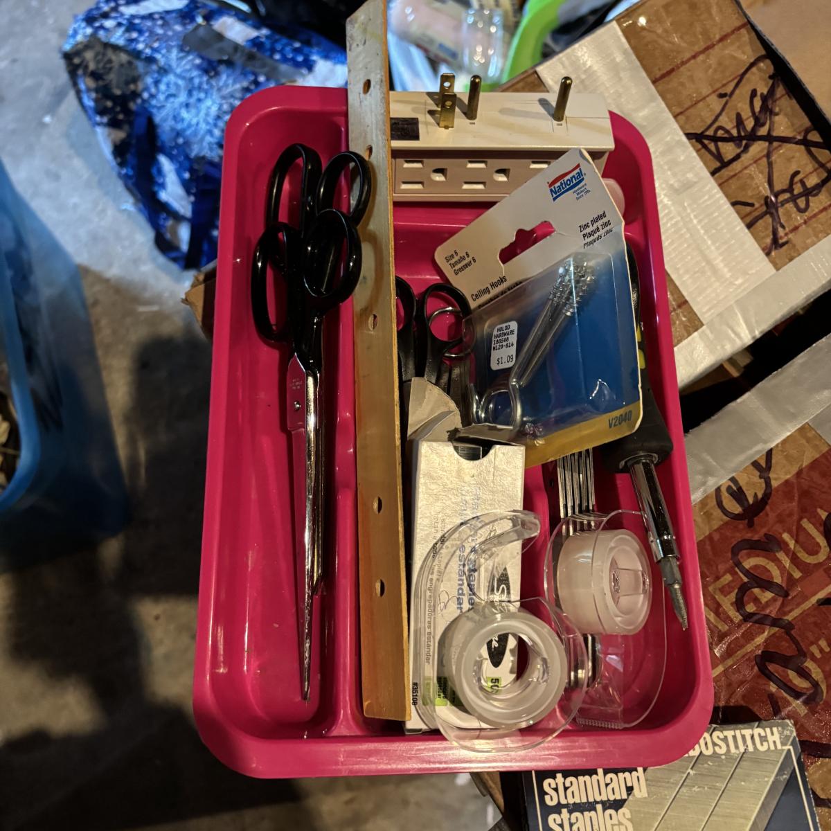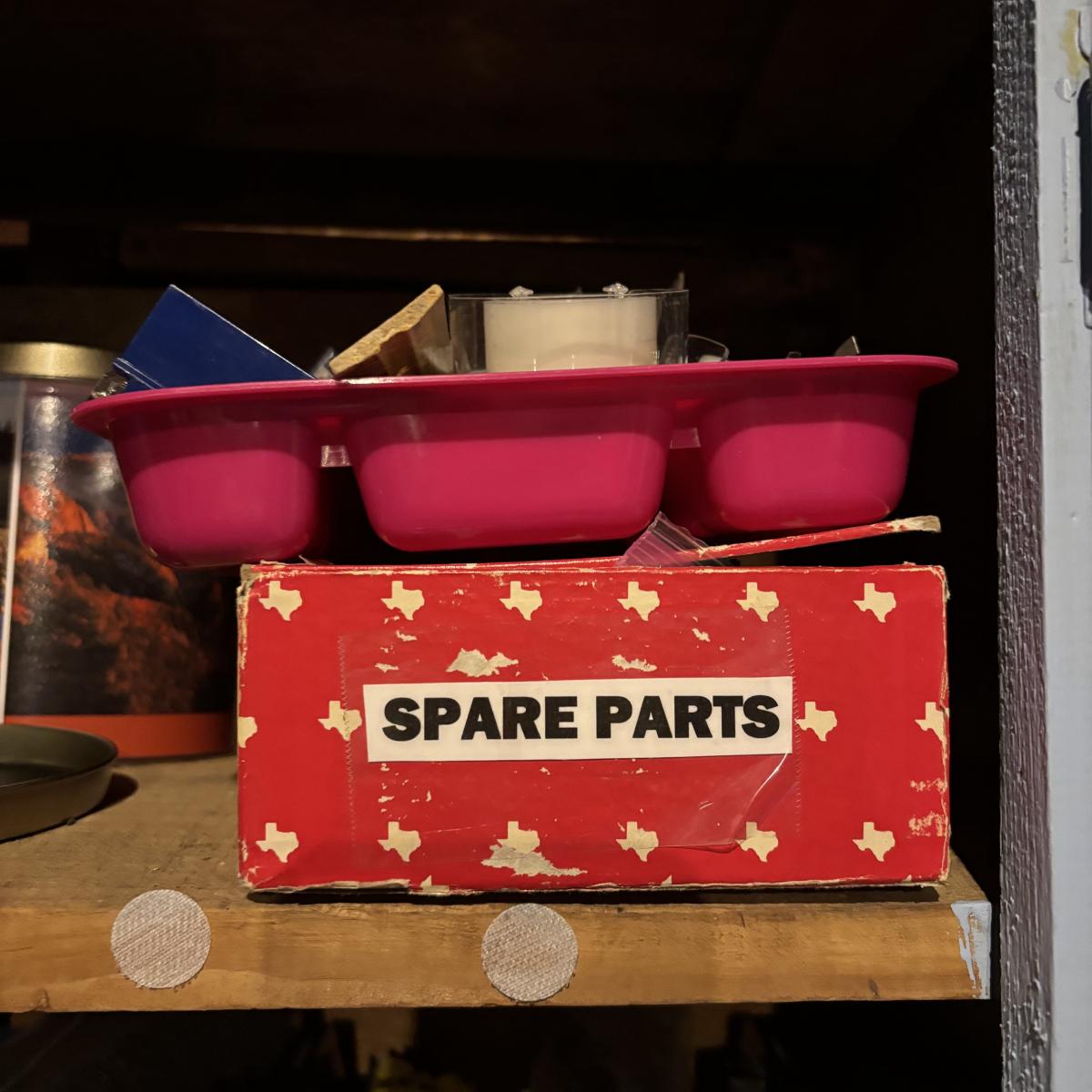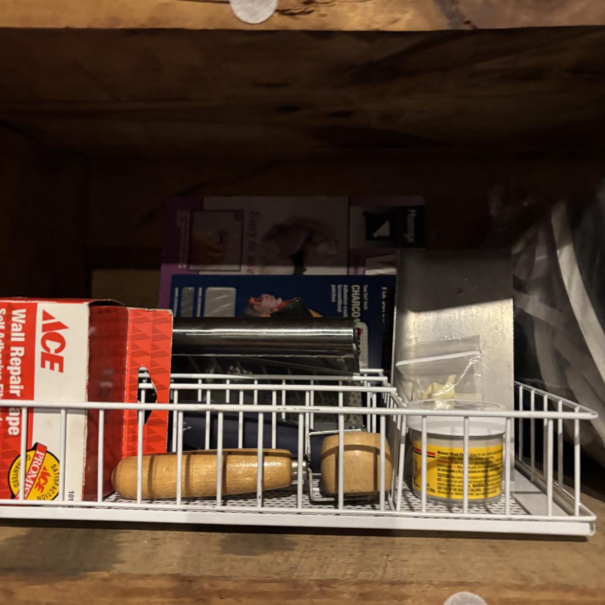 LOT 105: Garage Spare Parts & More Cabinet Cleanout (Cans on top shelf are empty)