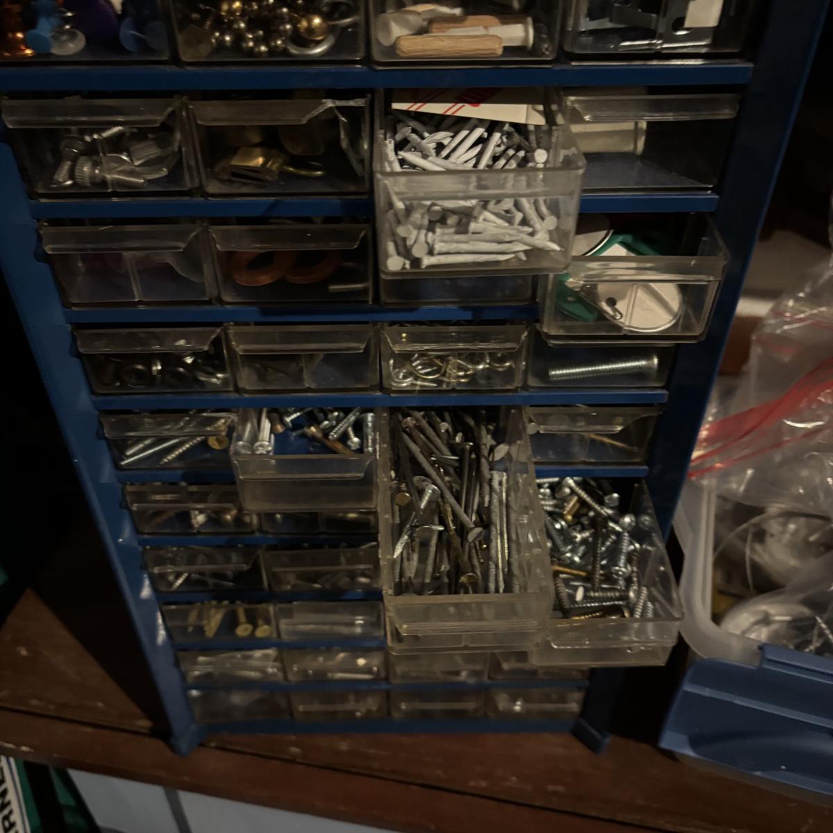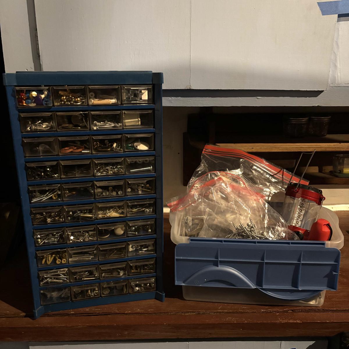 LOT 108: Nuts, Bolts, Nails, Screws, 40 Drawer Filled Organizer Garage Cleanout