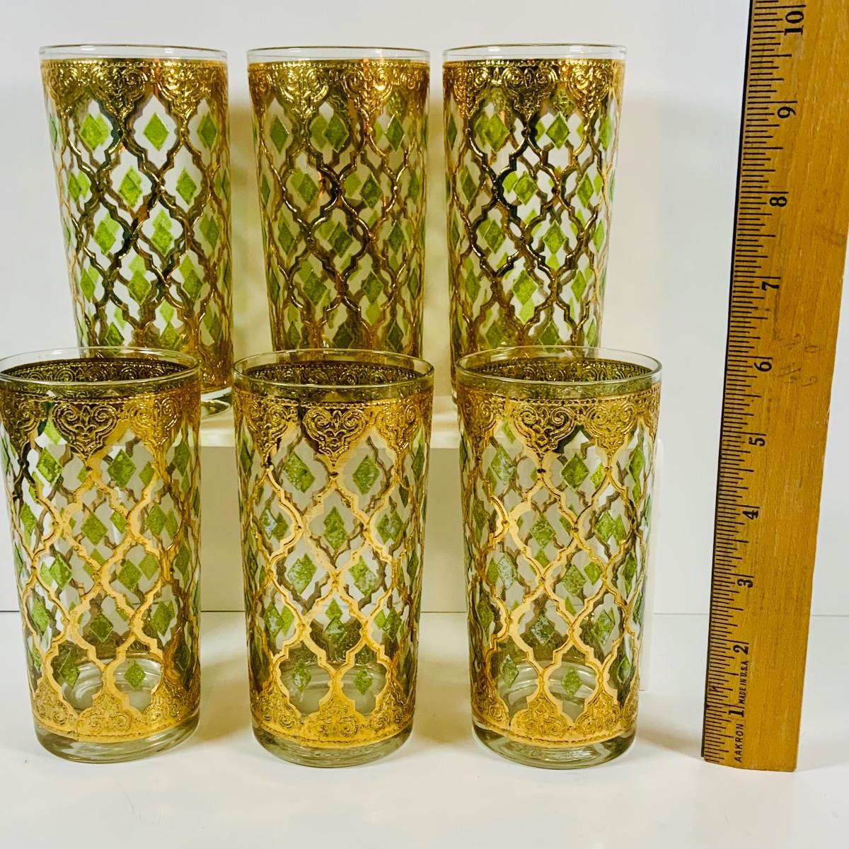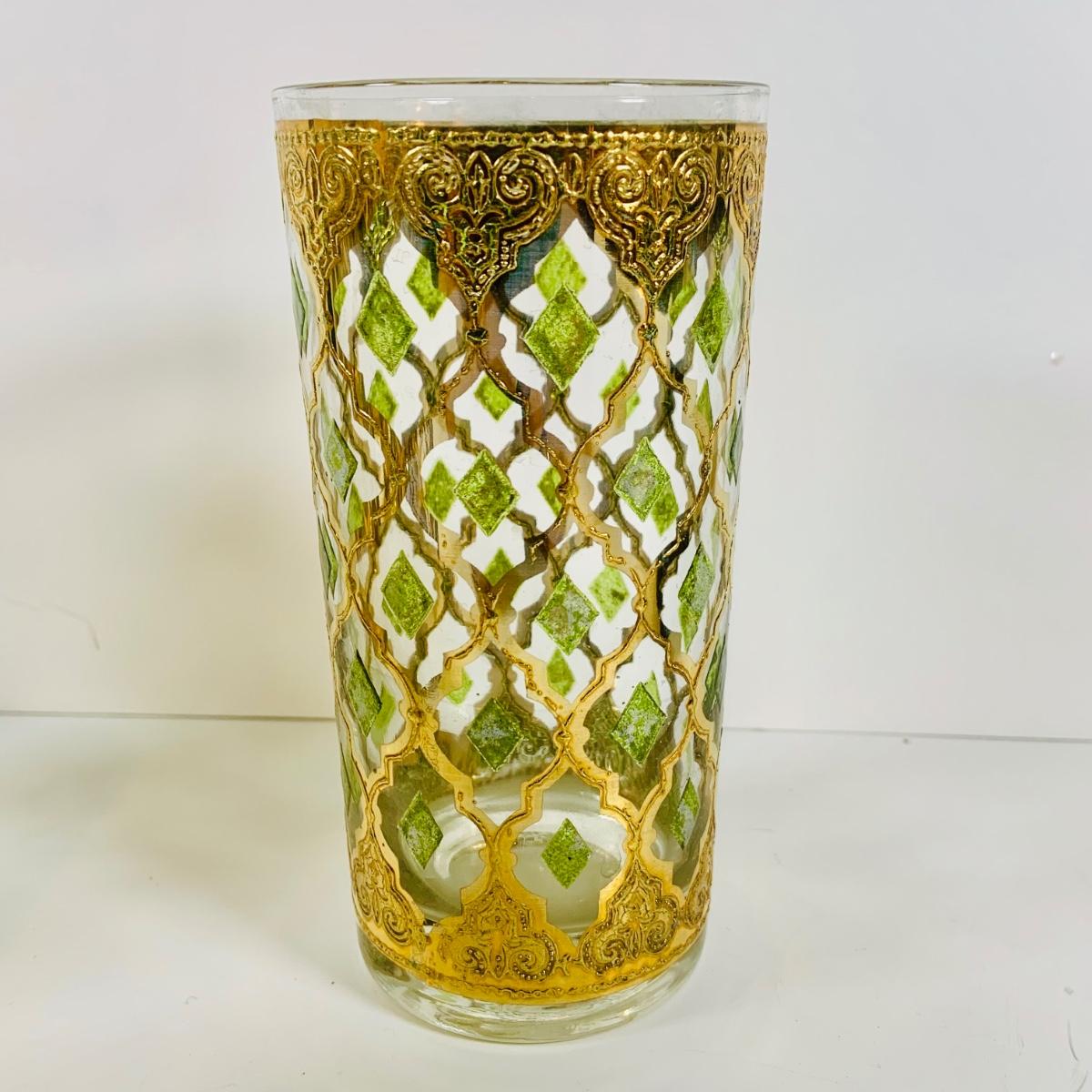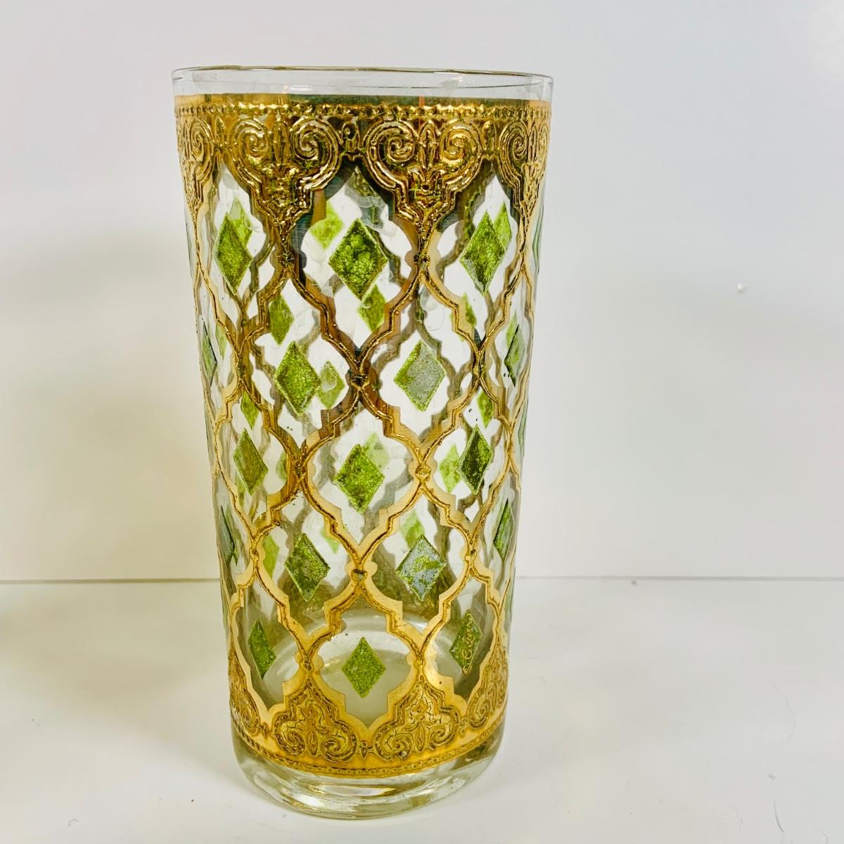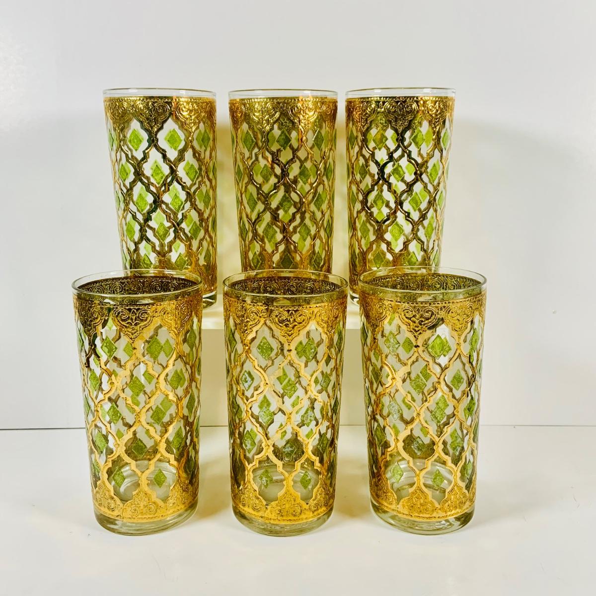 LOT 114: Set of (6) Signed Culvert 22k Gold and Green Valencia High Ball Glasses