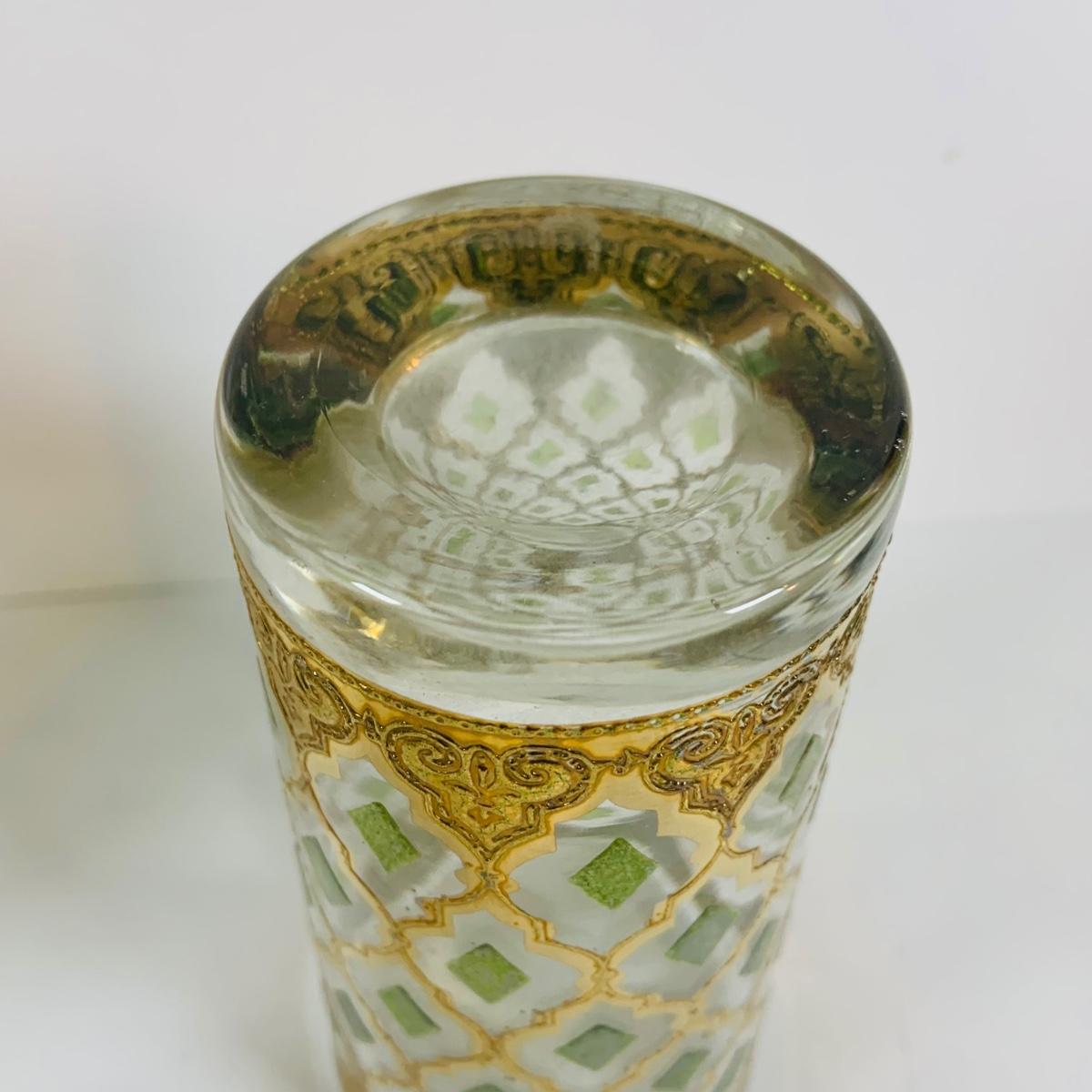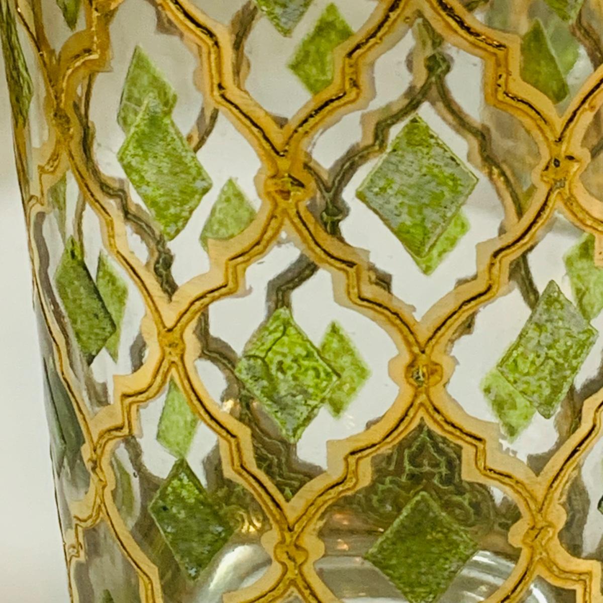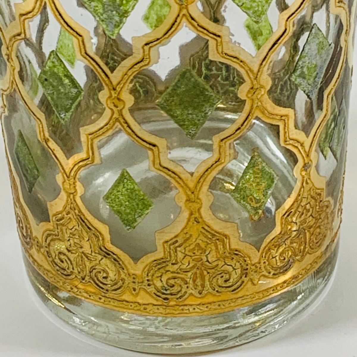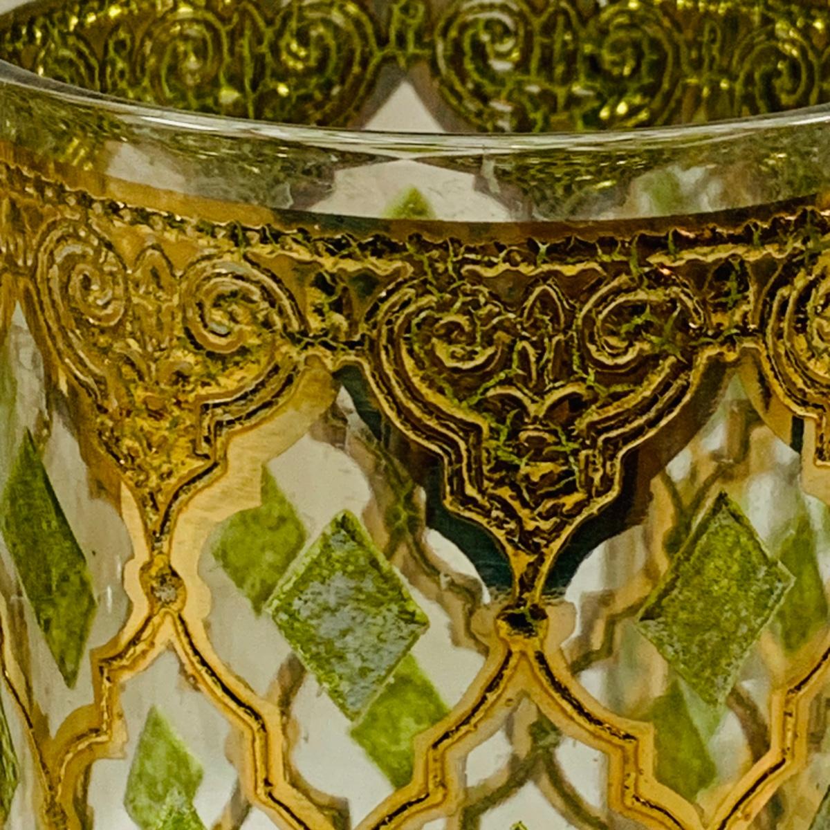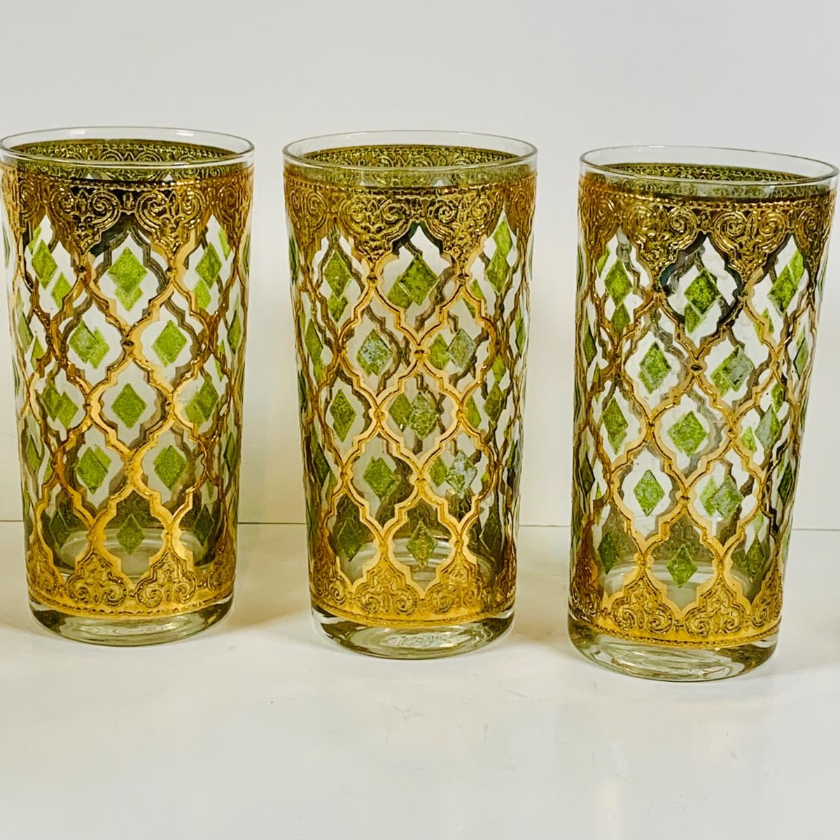 LOT 114: Set of (6) Signed Culvert 22k Gold and Green Valencia High Ball Glasses