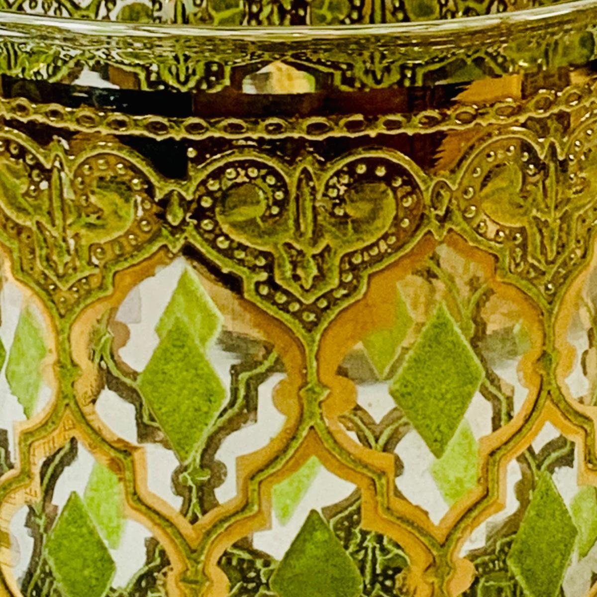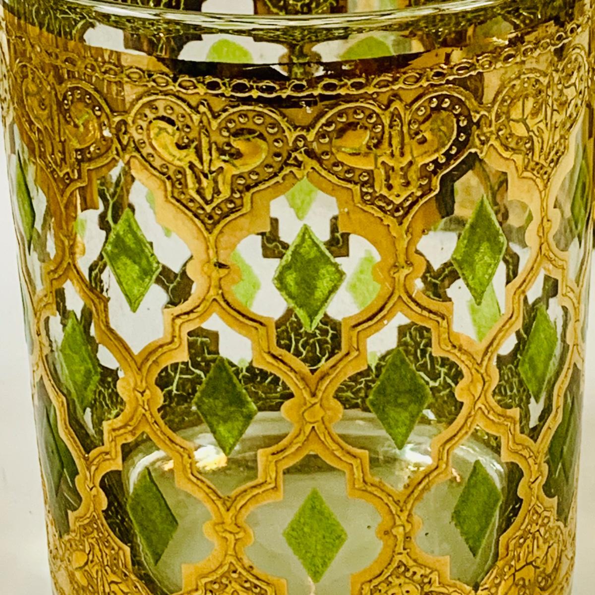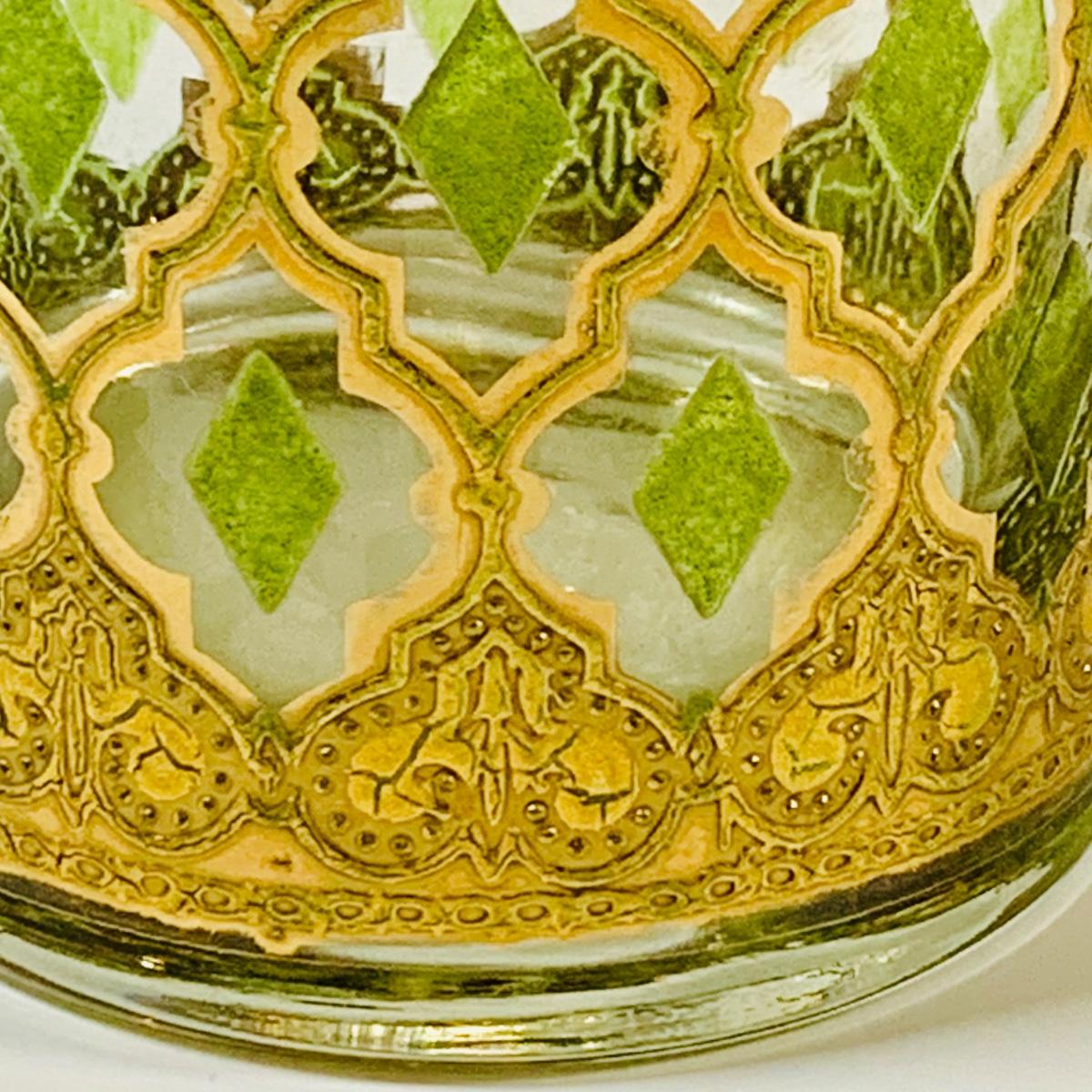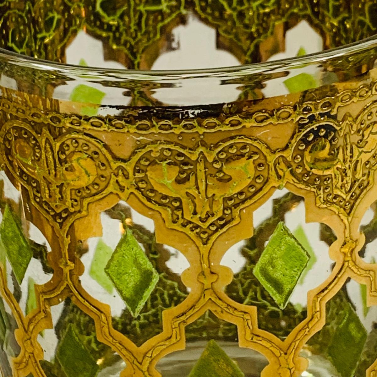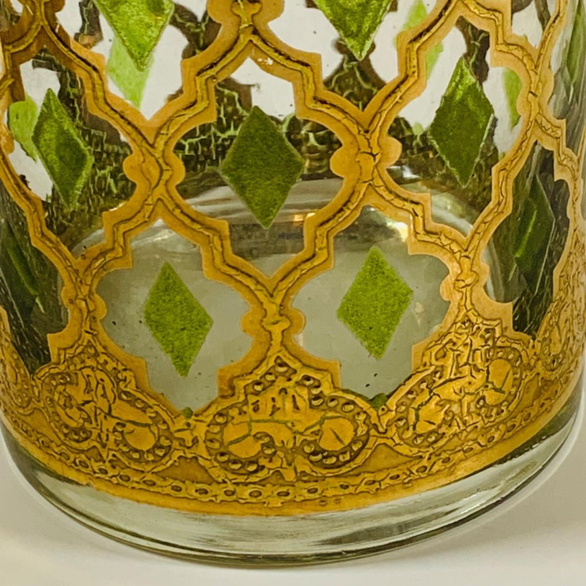 LOT 116: Set of (6) Culver Lowball Glass Tumblers with 22k Gold and Green Valencia Design