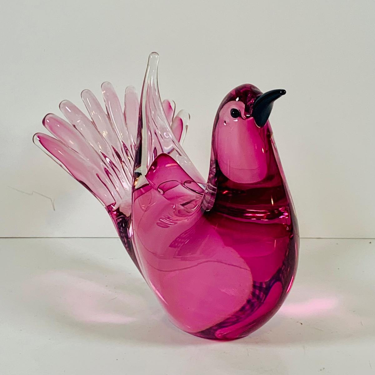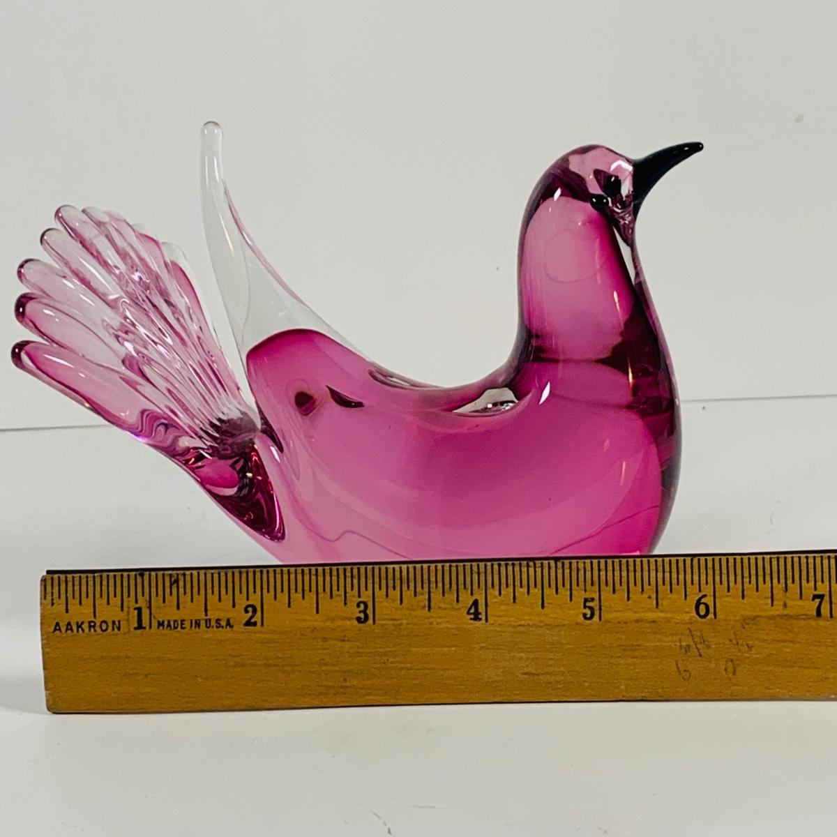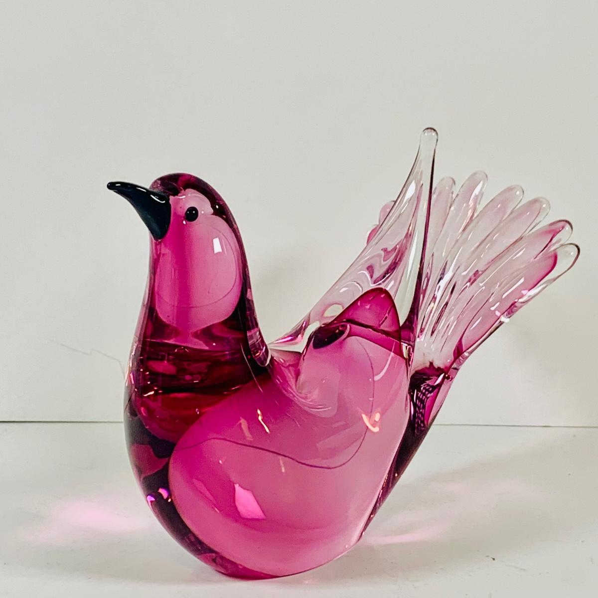 LOT 120: Beautiful Signed Murano Pink Art Glass Dove