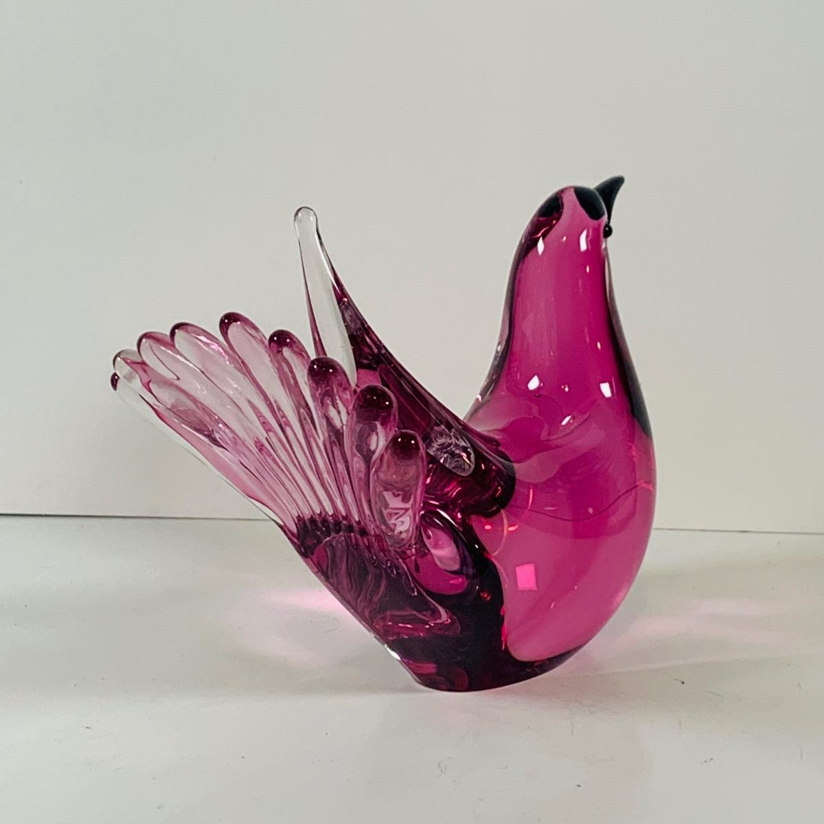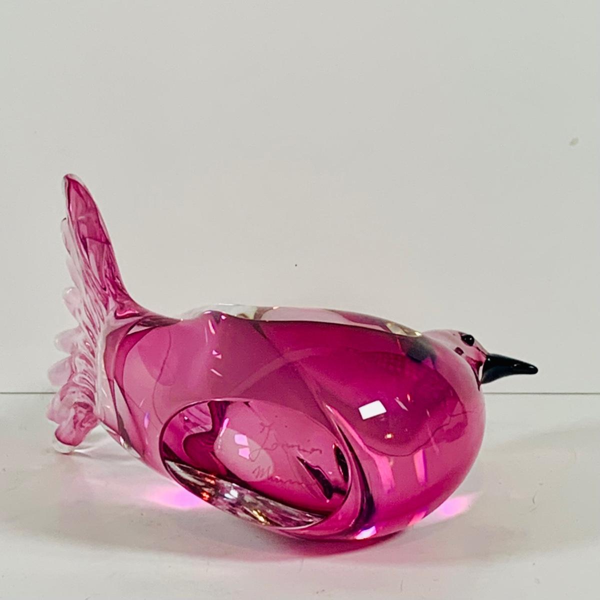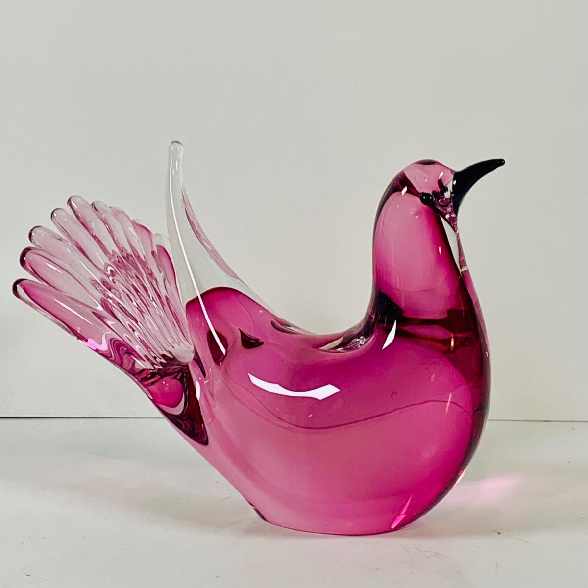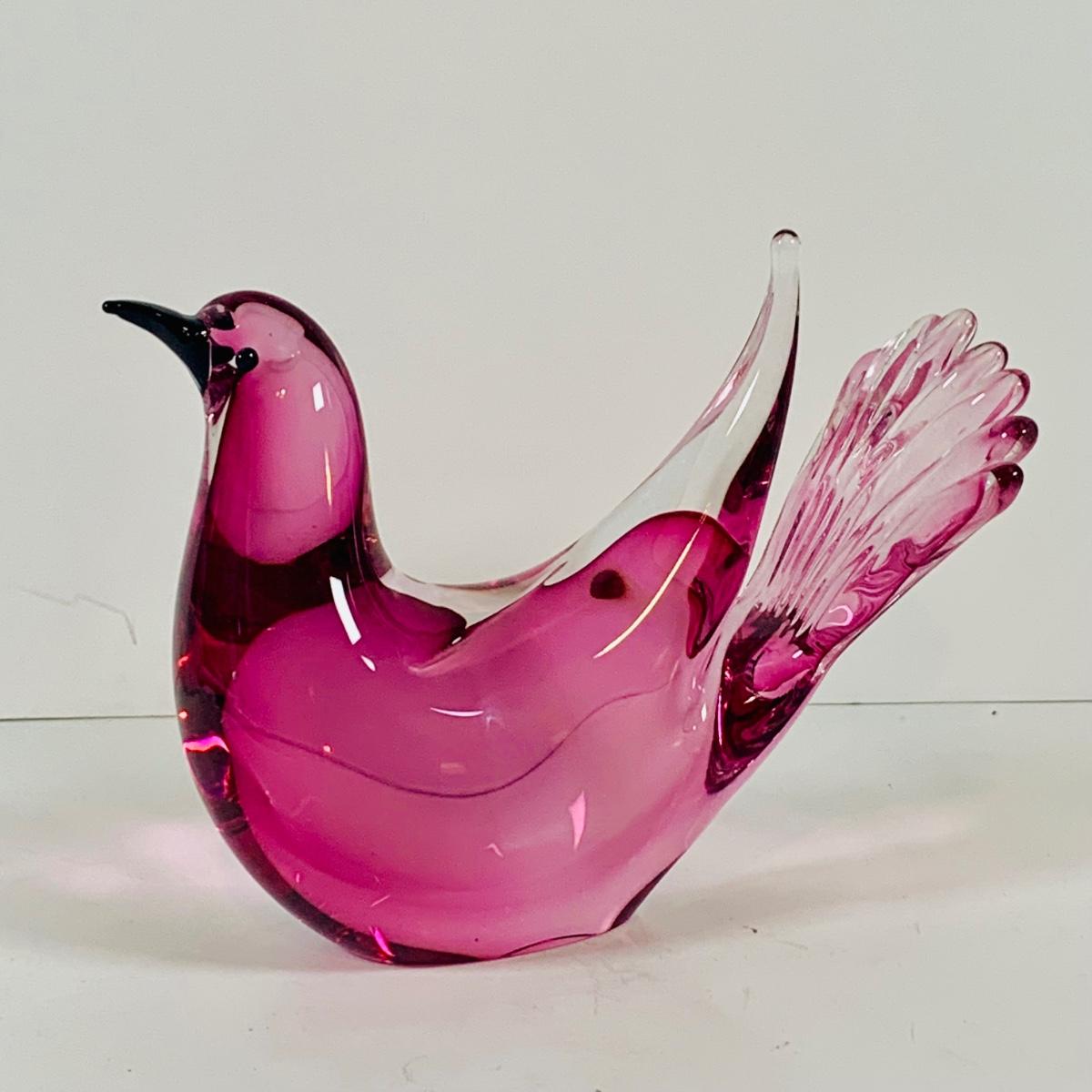 LOT 120: Beautiful Signed Murano Pink Art Glass Dove