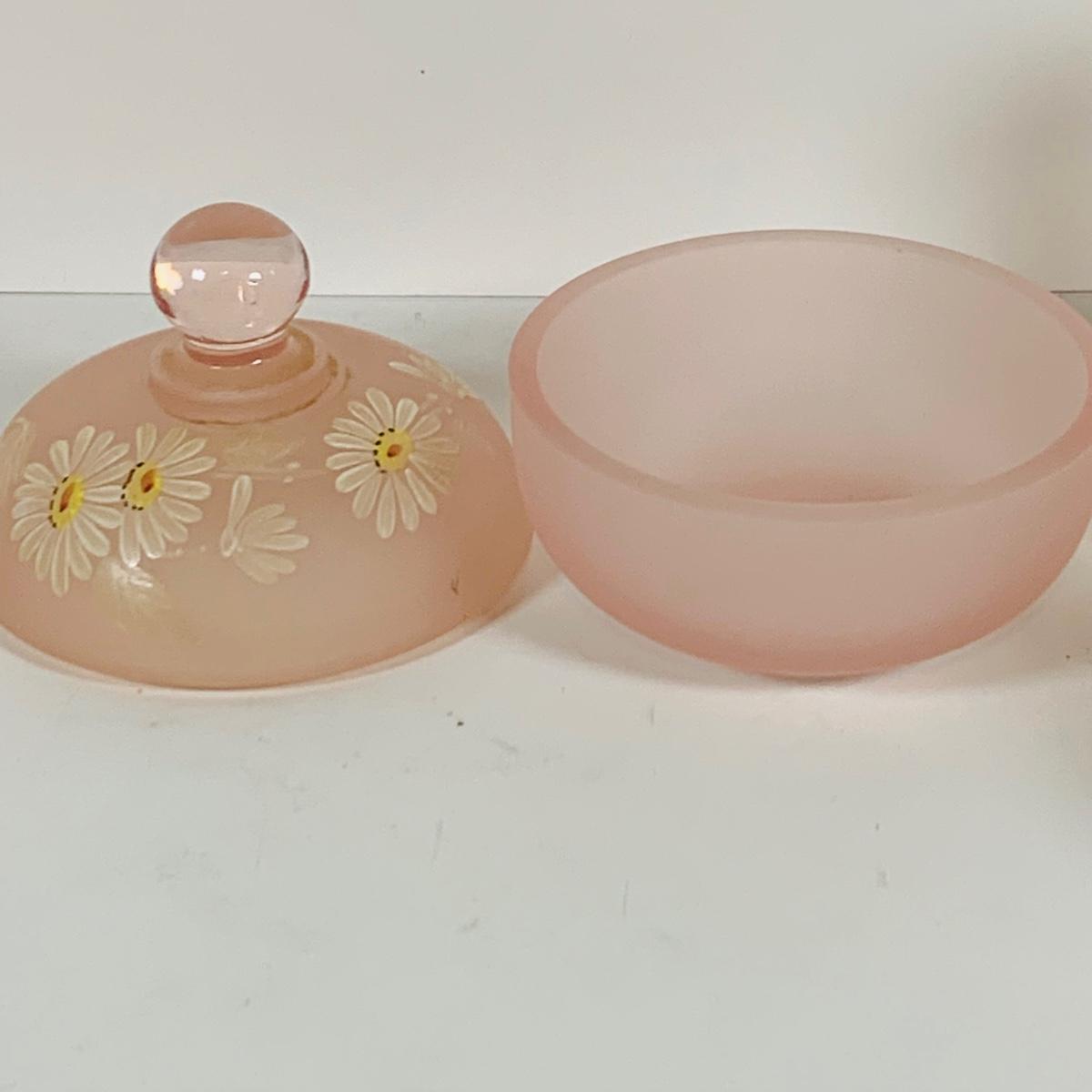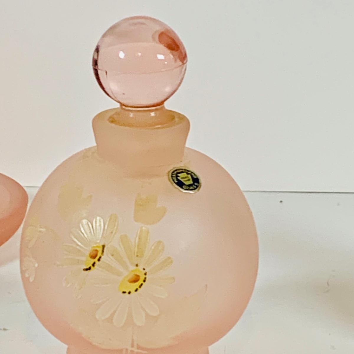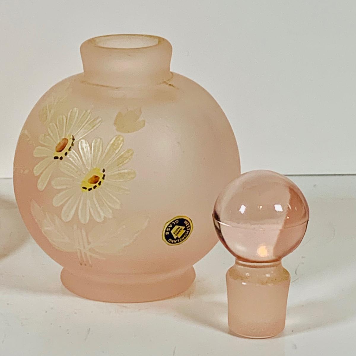 LOT 130: Westmoreland Glass Vanity Set with Tray Includes Two (2) Perfume Bottles and a Power Jar and a Crystal Vase