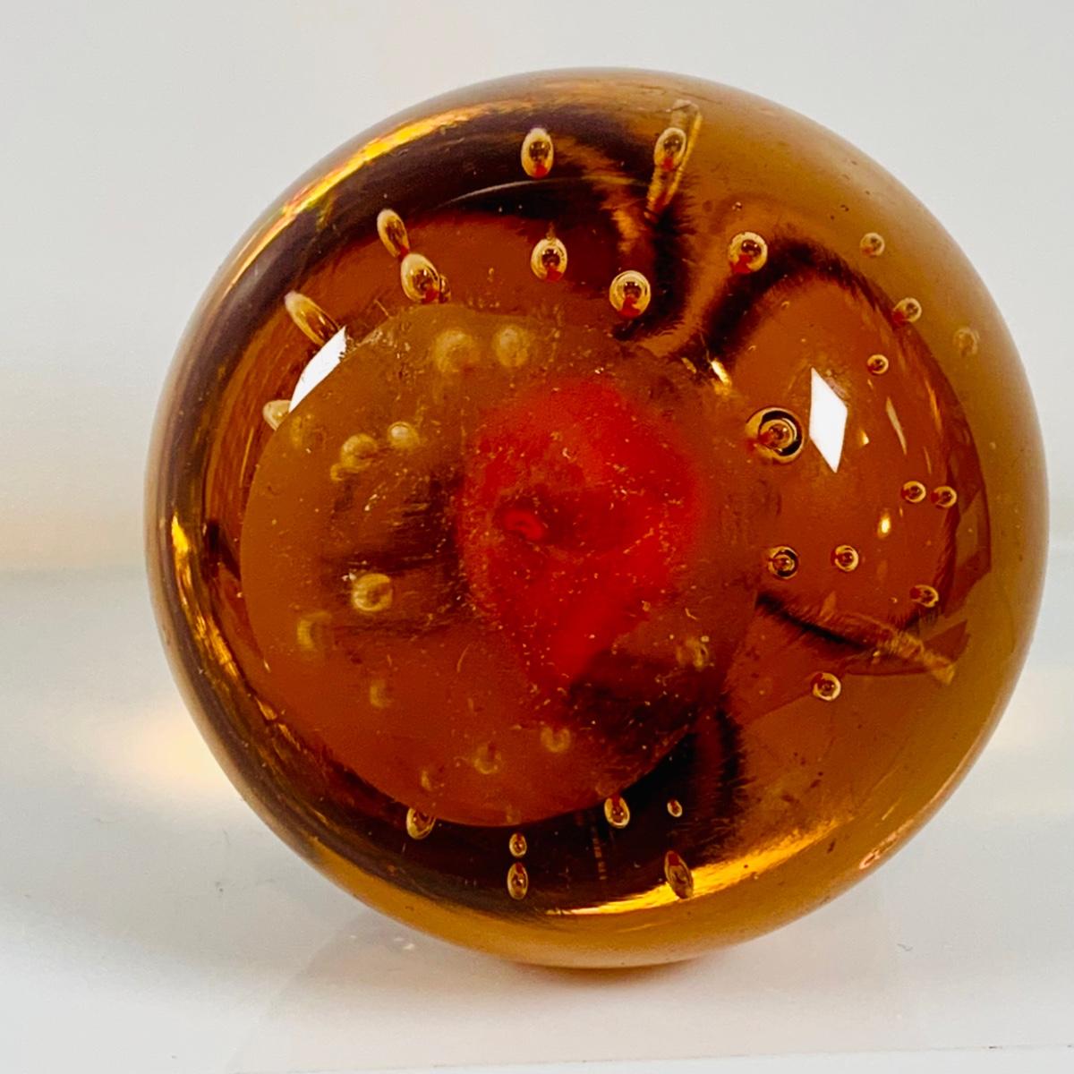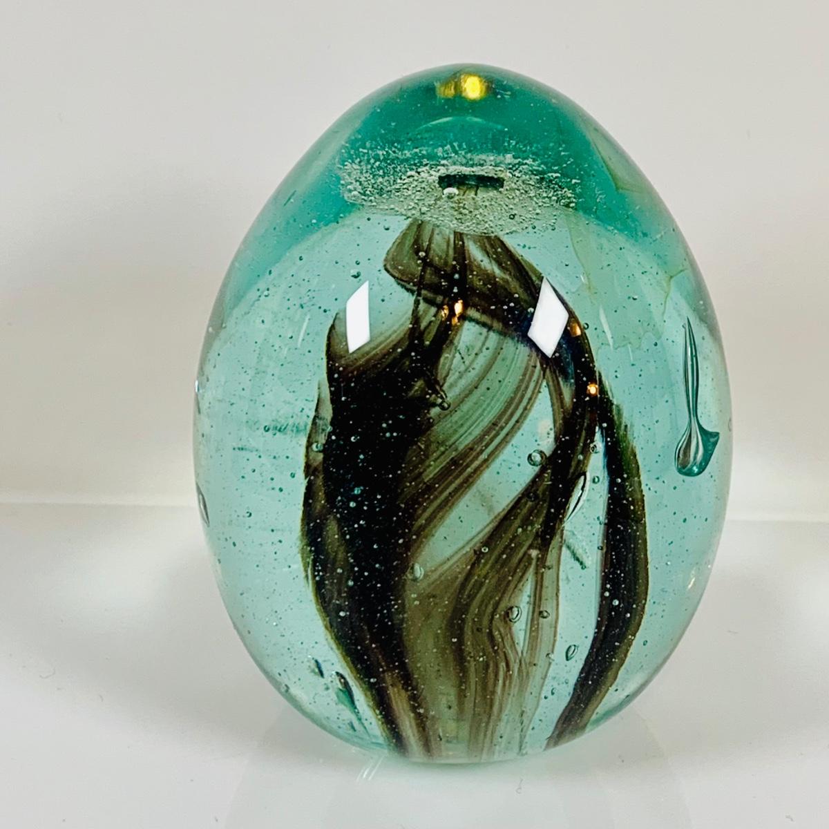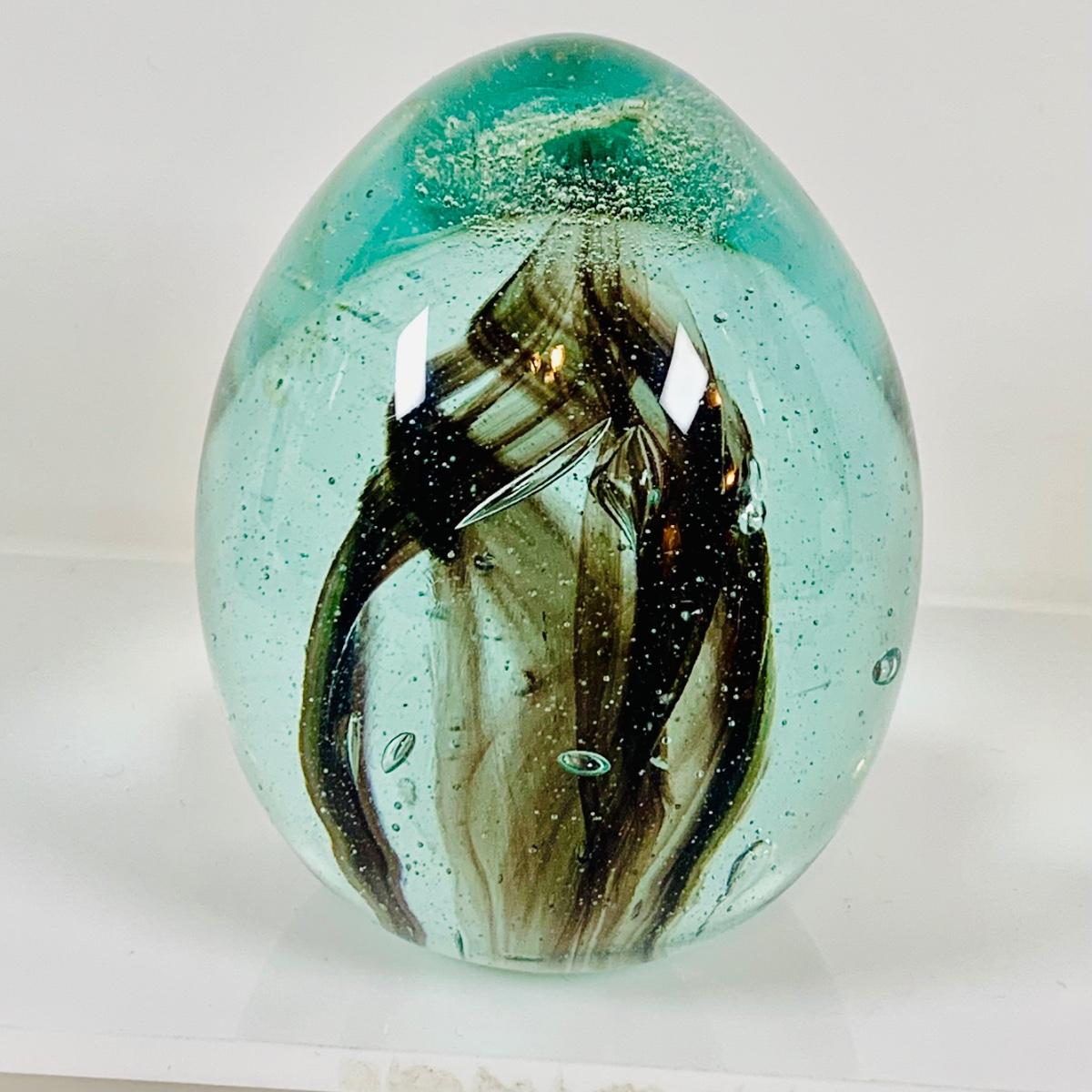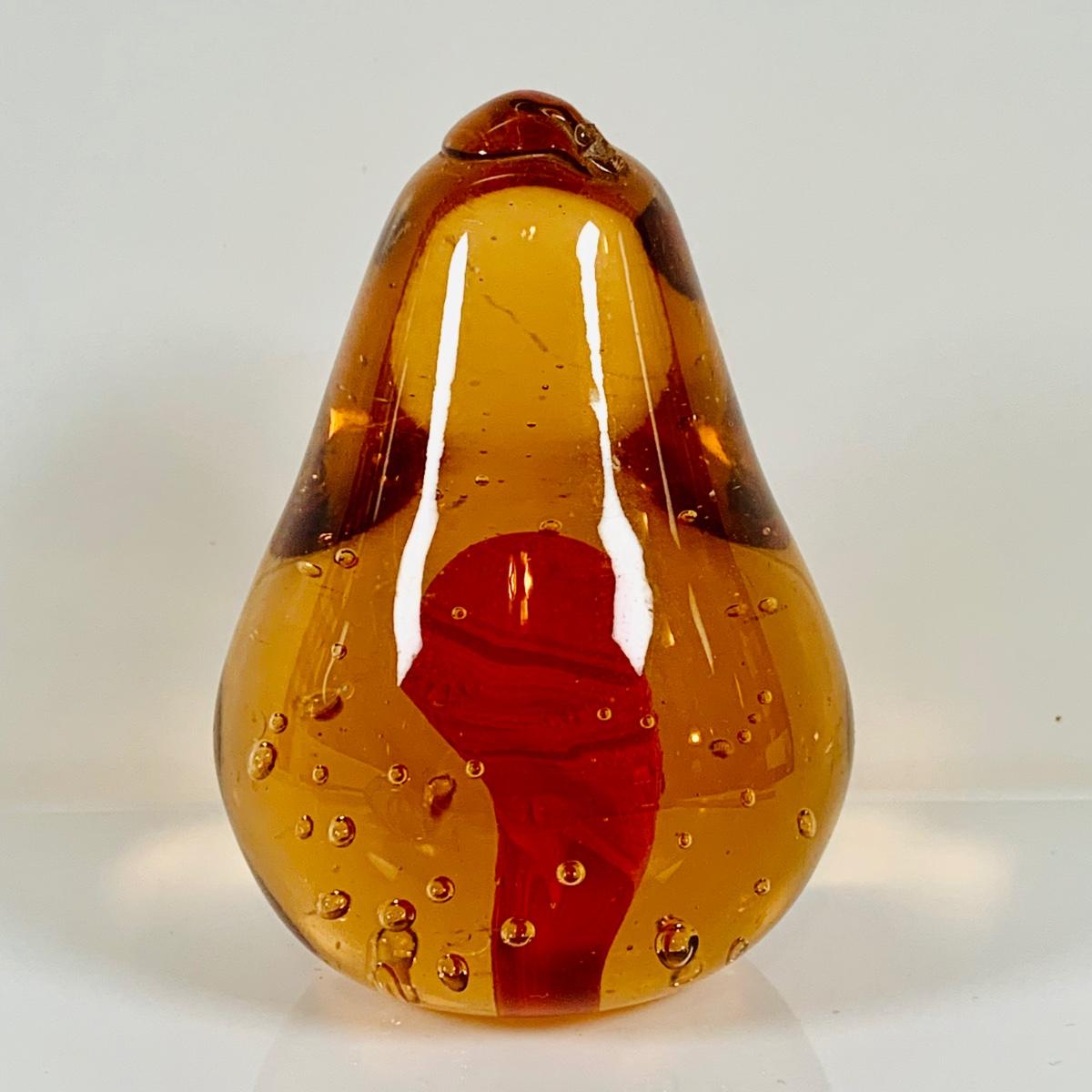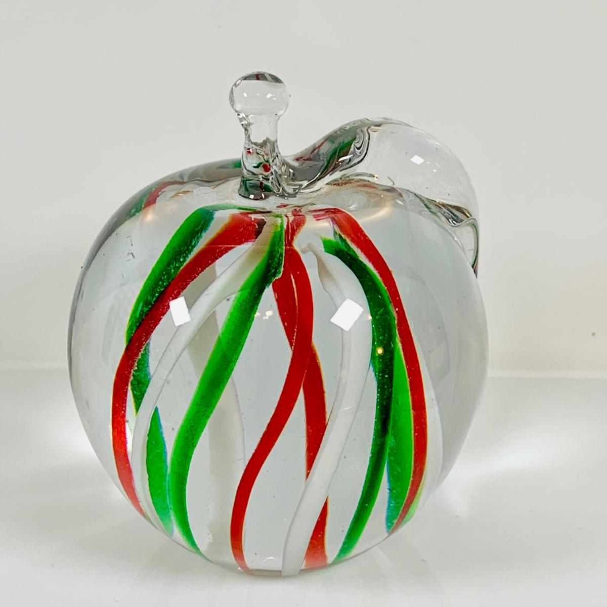 LOT 134: Set of Three (3) Art Glass Paperweights - Red and Green Apple, a Pear and Egg