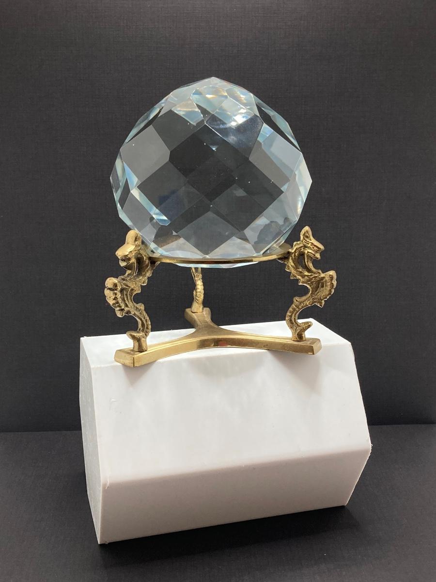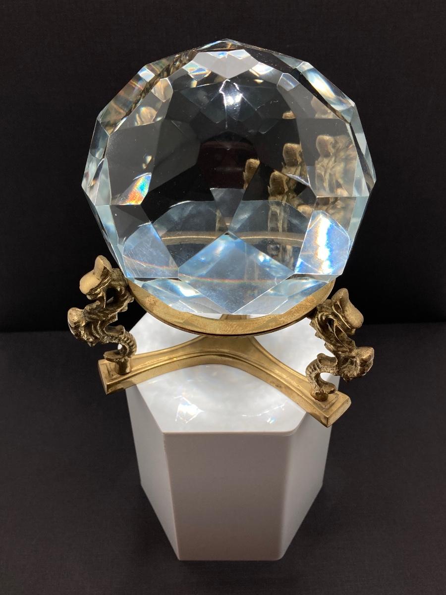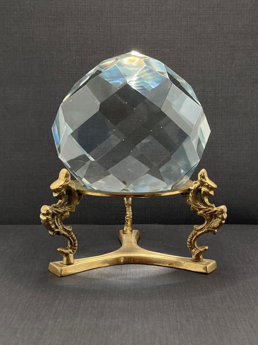 LOT 171: Round Clear Glass Prism Ball on Dragon Stand
