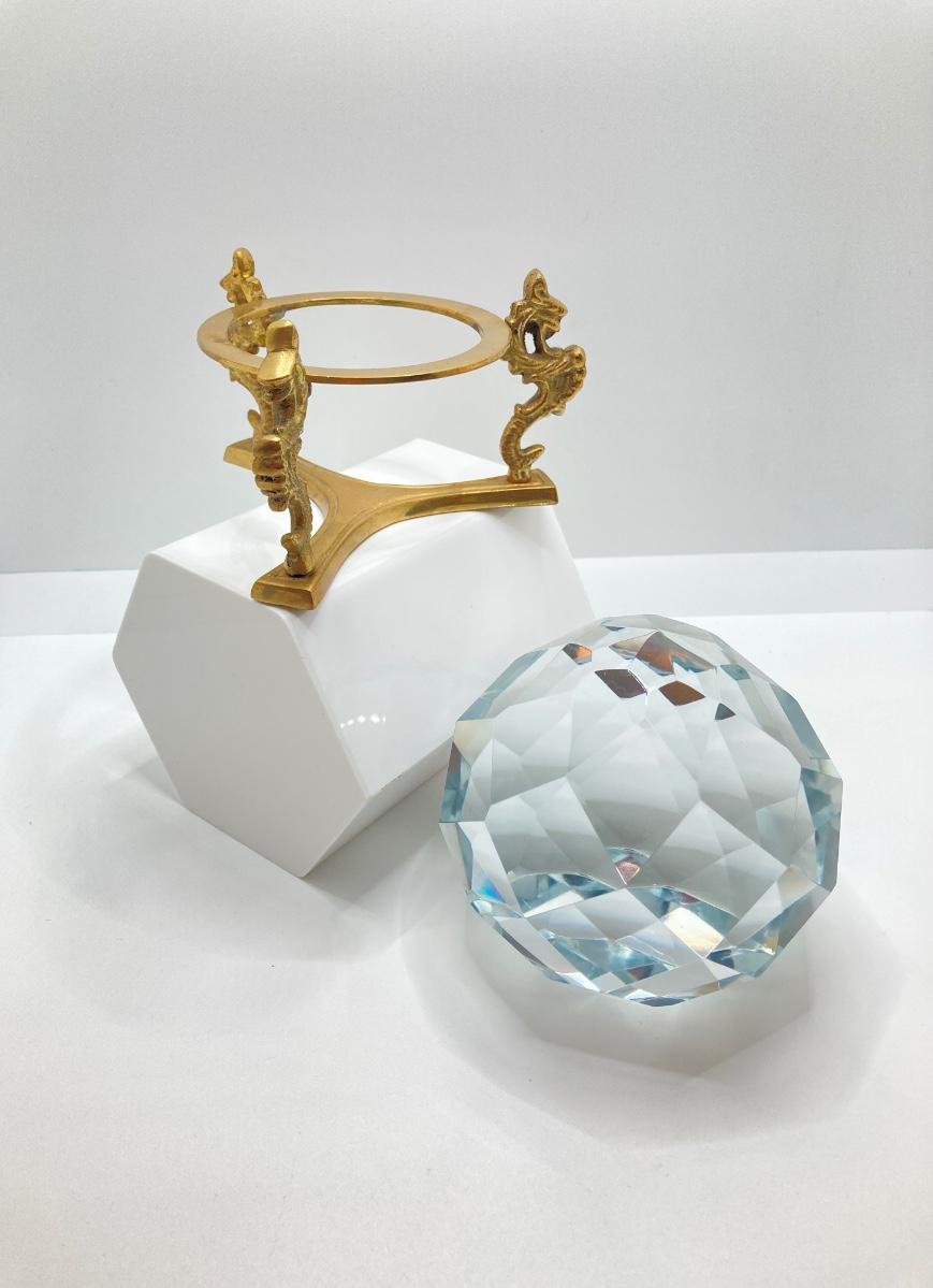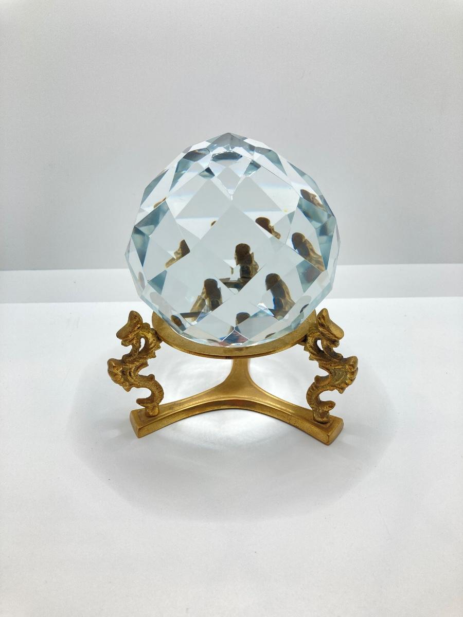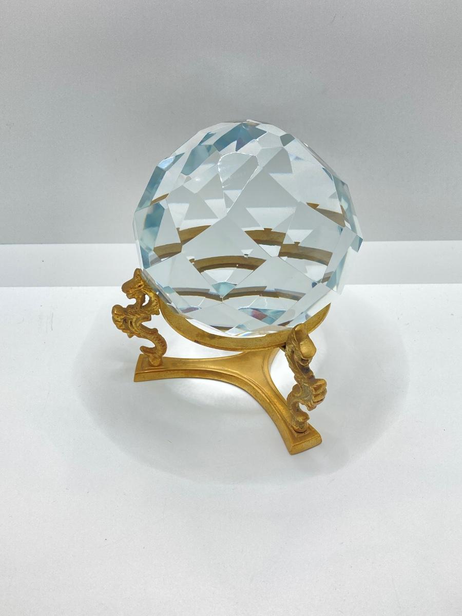 LOT 171: Round Clear Glass Prism Ball on Dragon Stand
