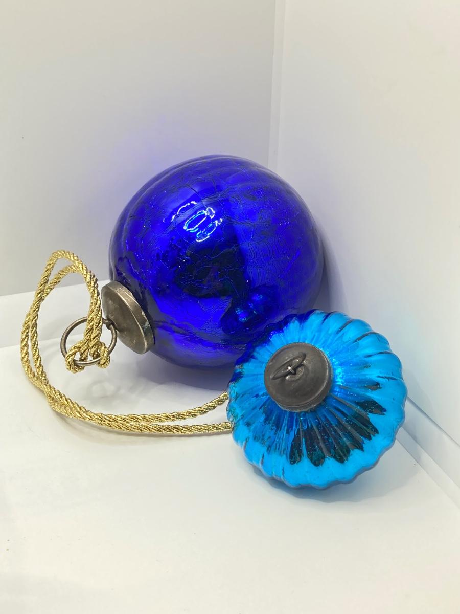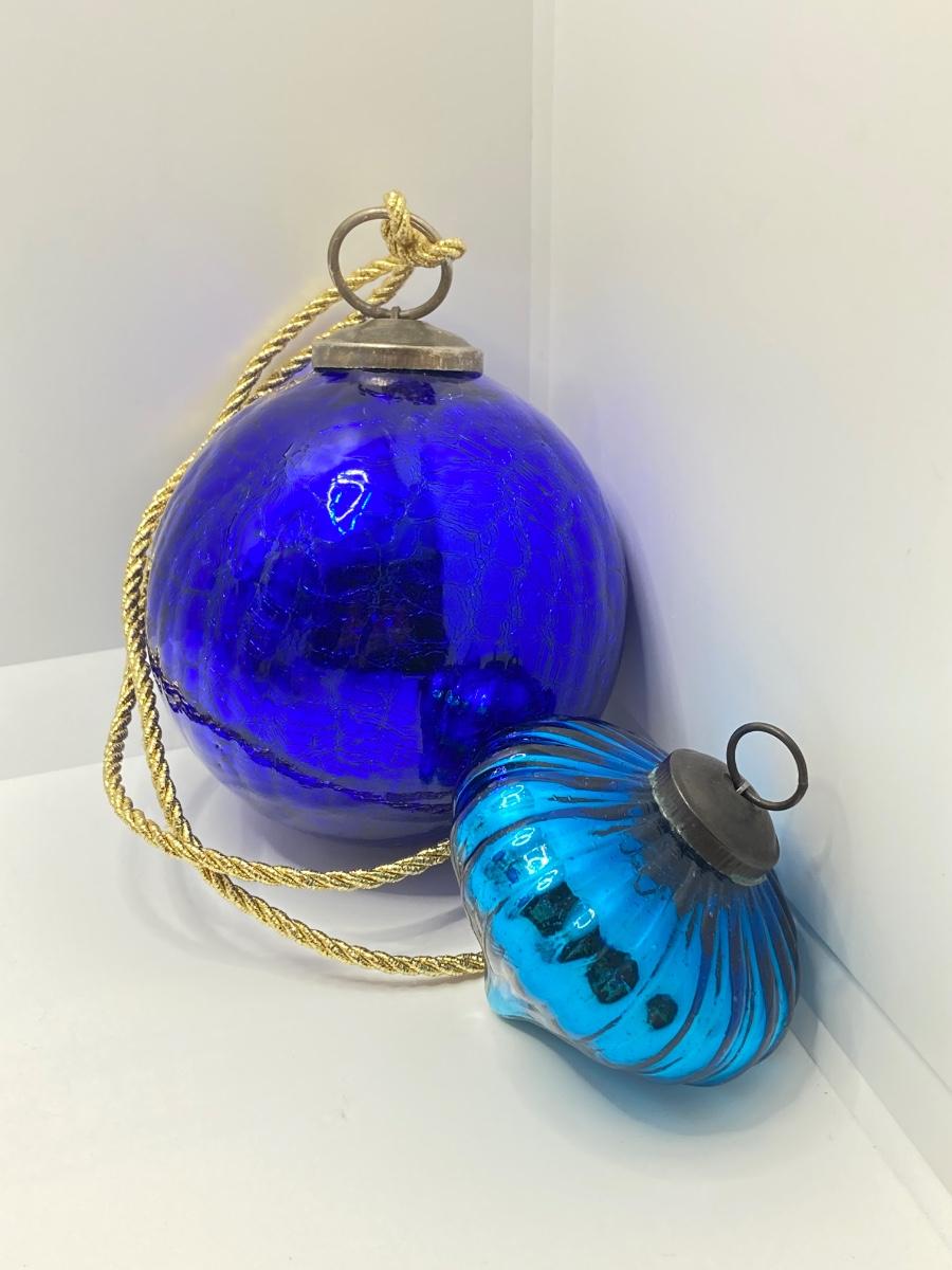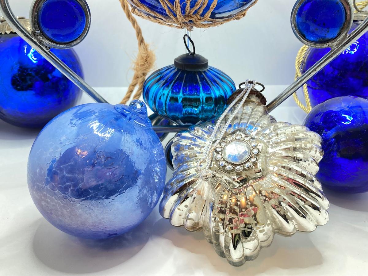 LOT 177: Vintage Blue Themed Art Glass Ornaments and More