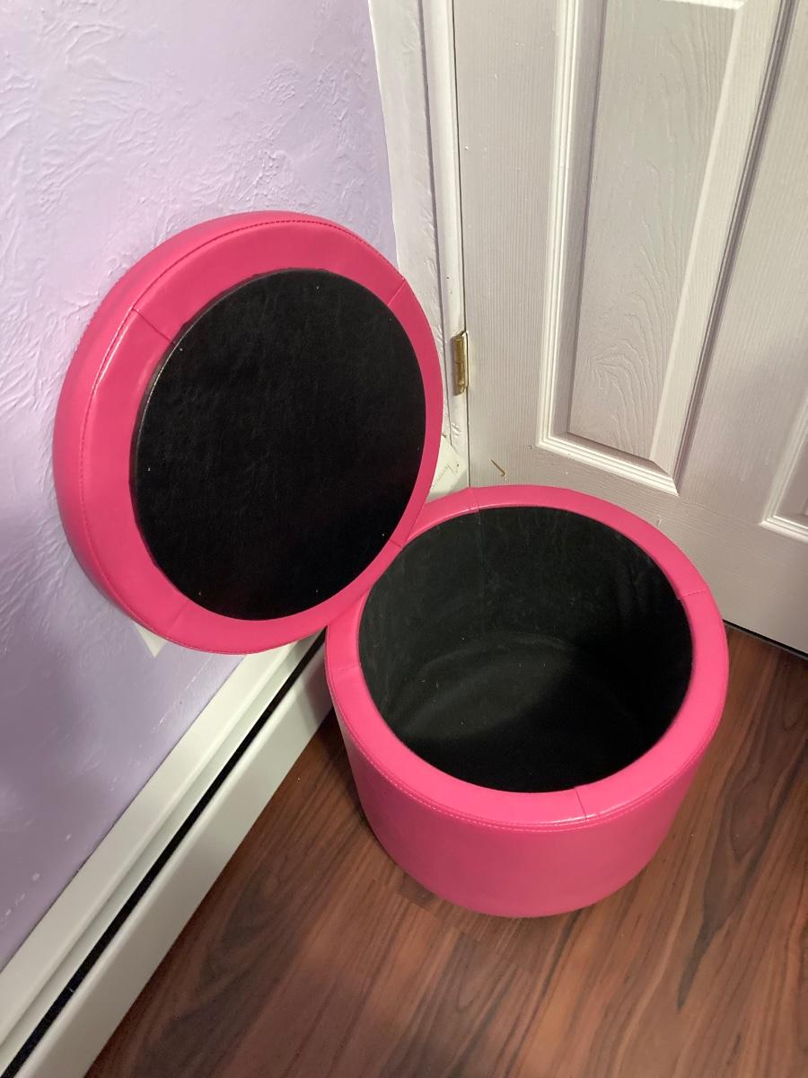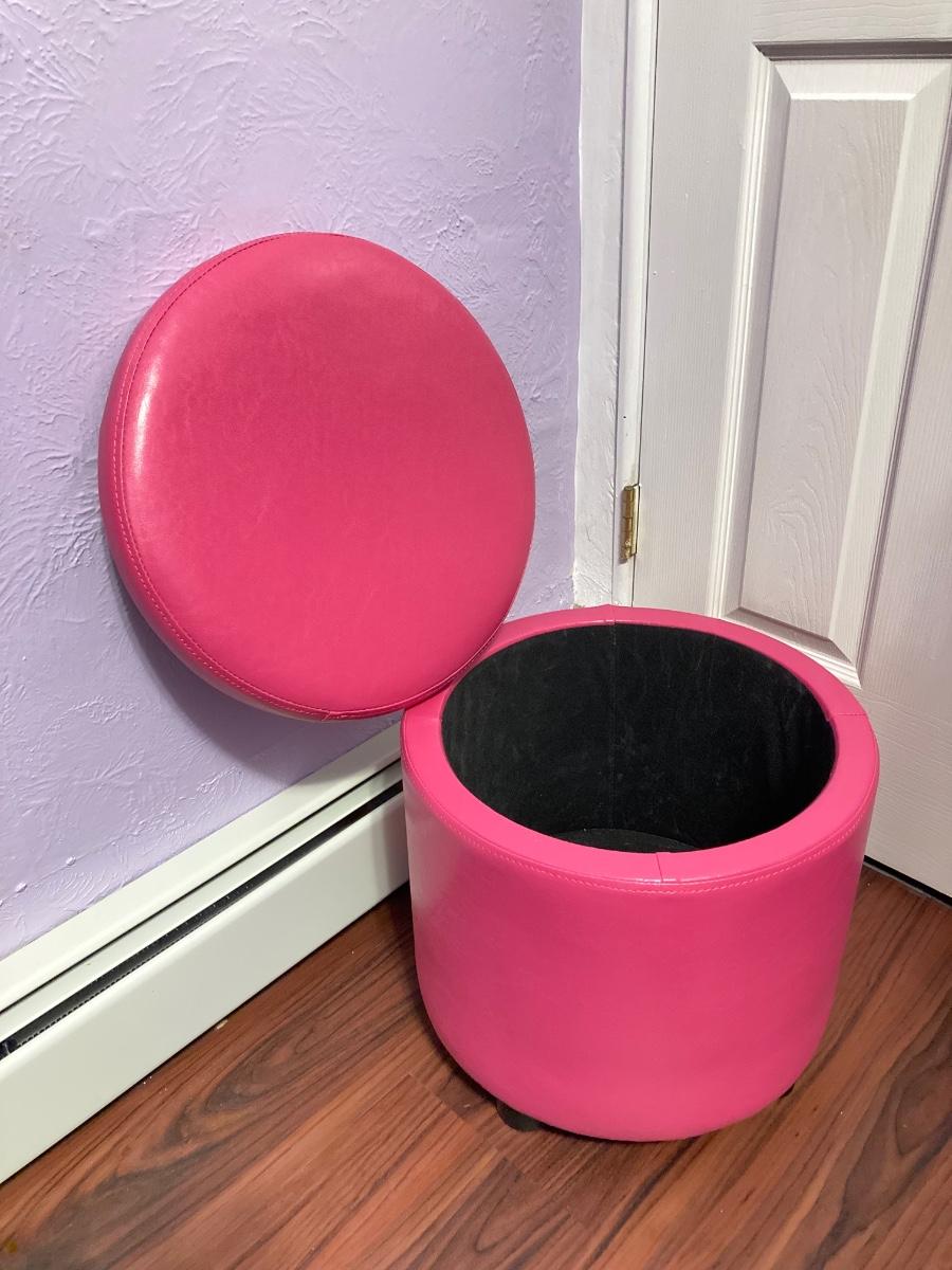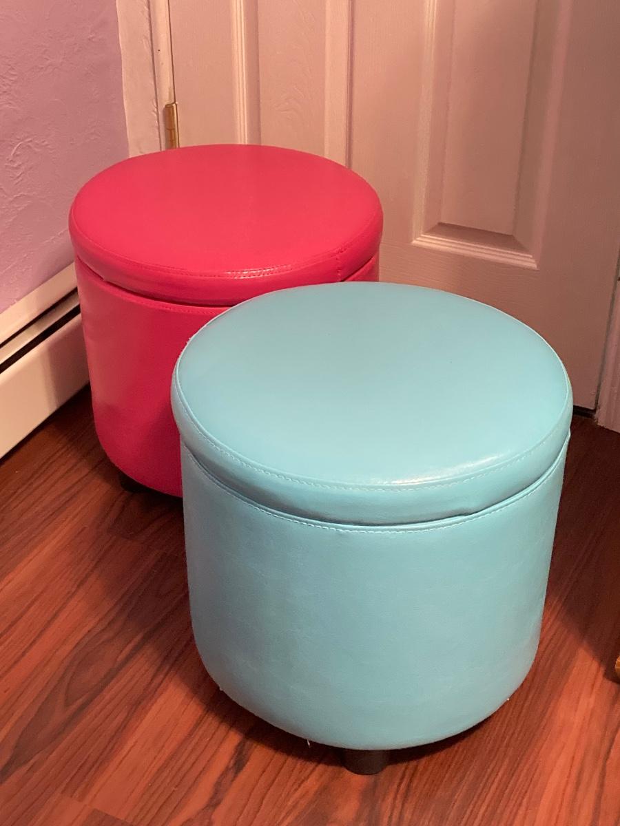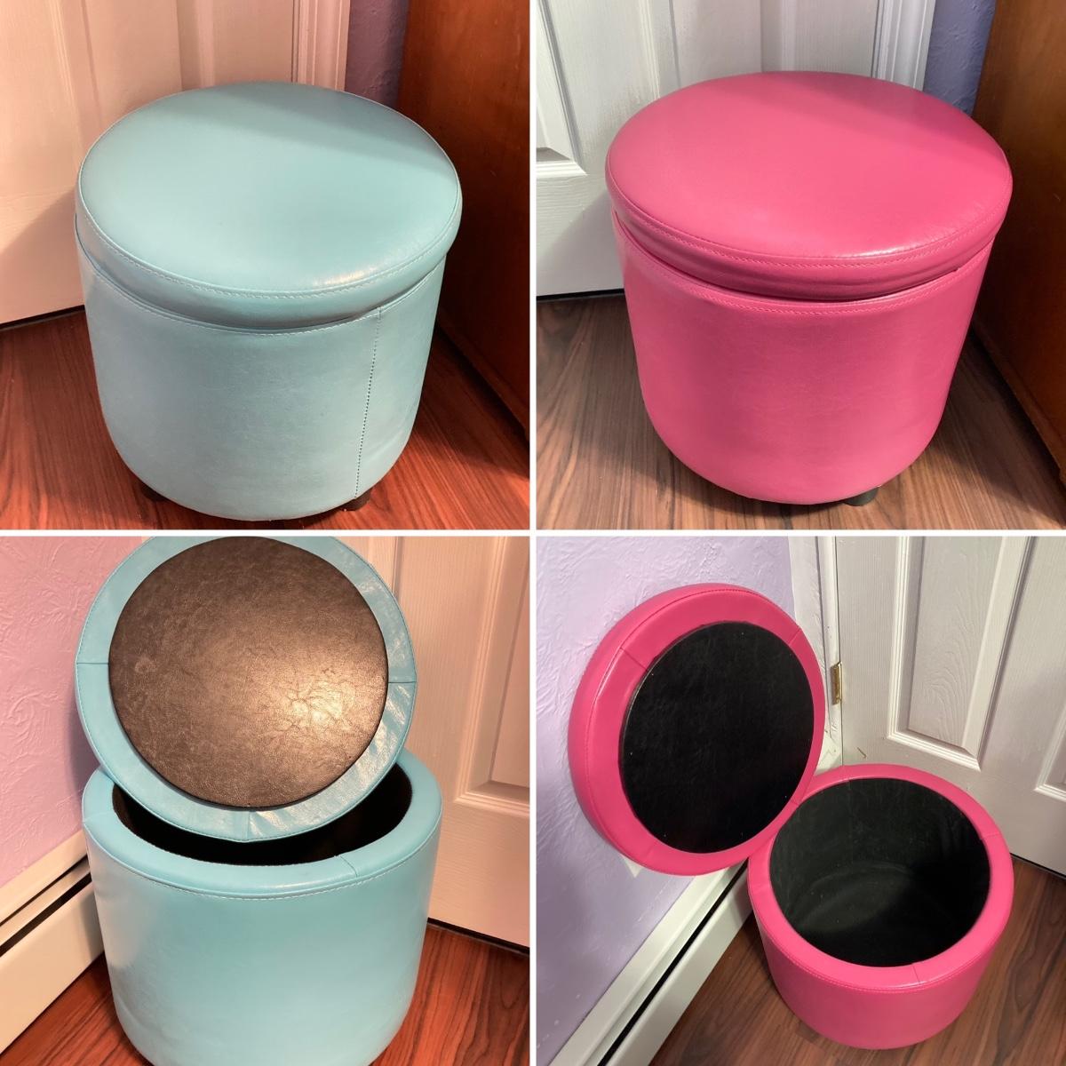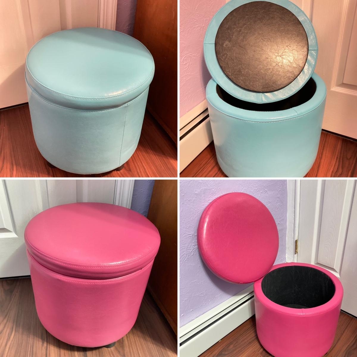 LOT 179: Pair of Pink and Blue Circular Storage Ottomans