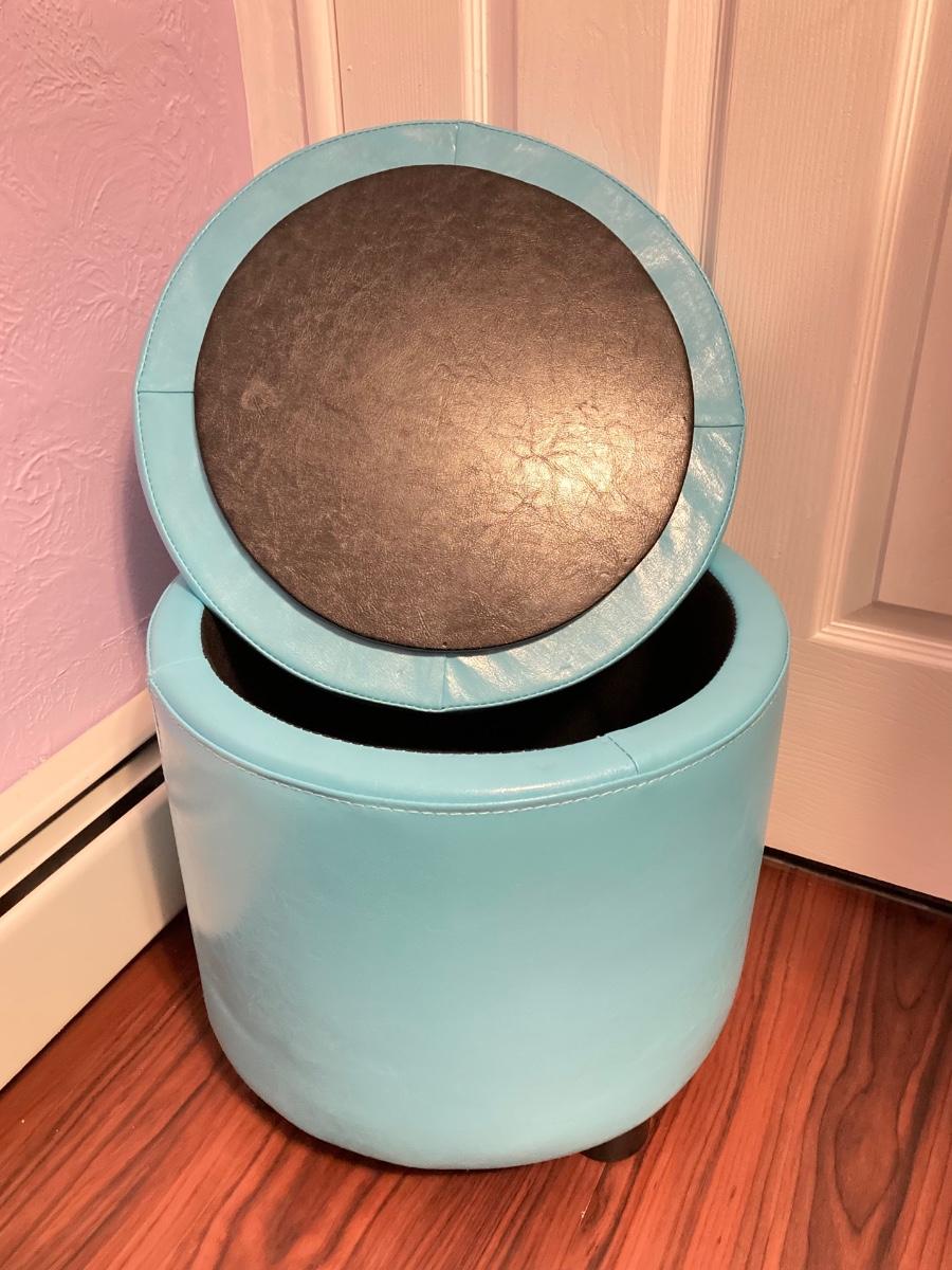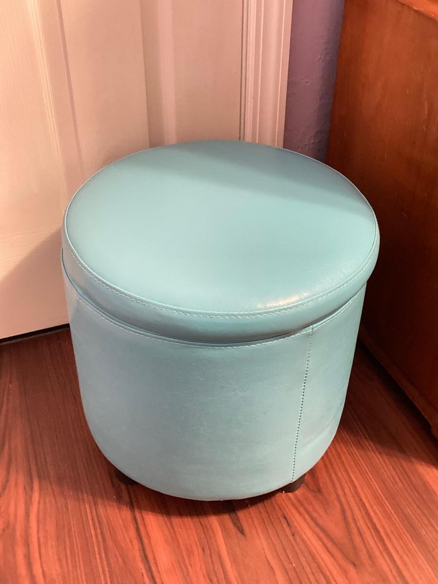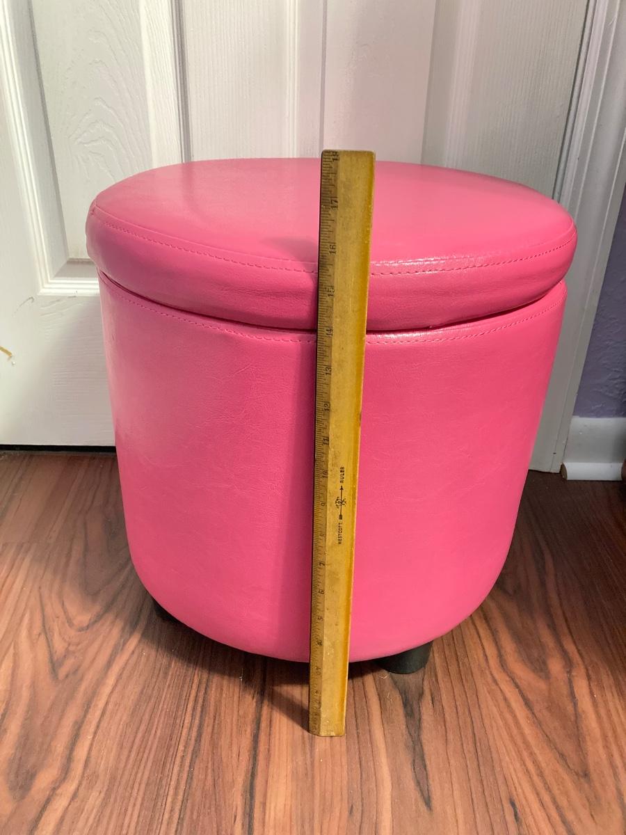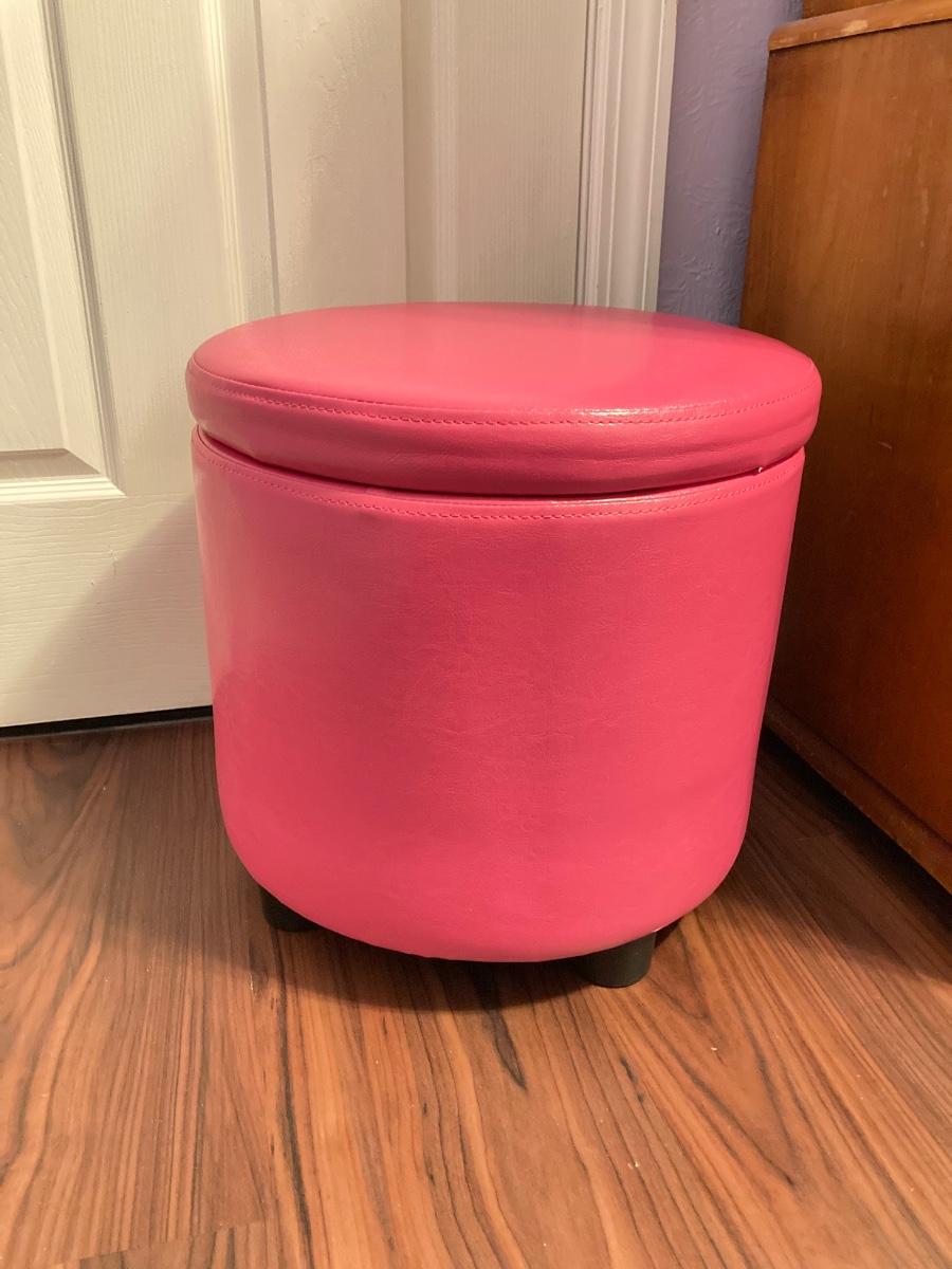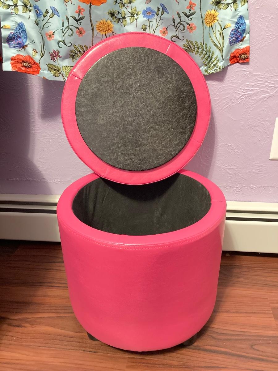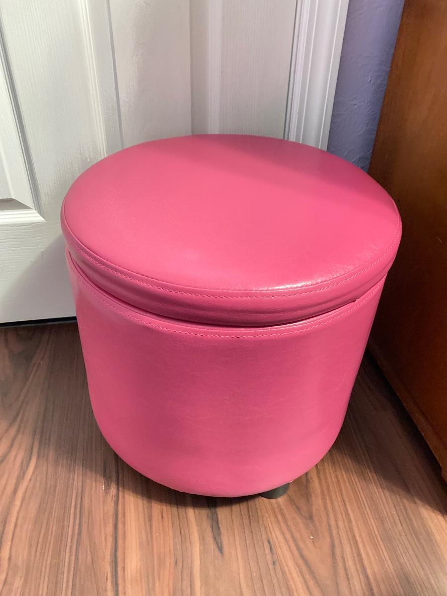 LOT 179: Pair of Pink and Blue Circular Storage Ottomans