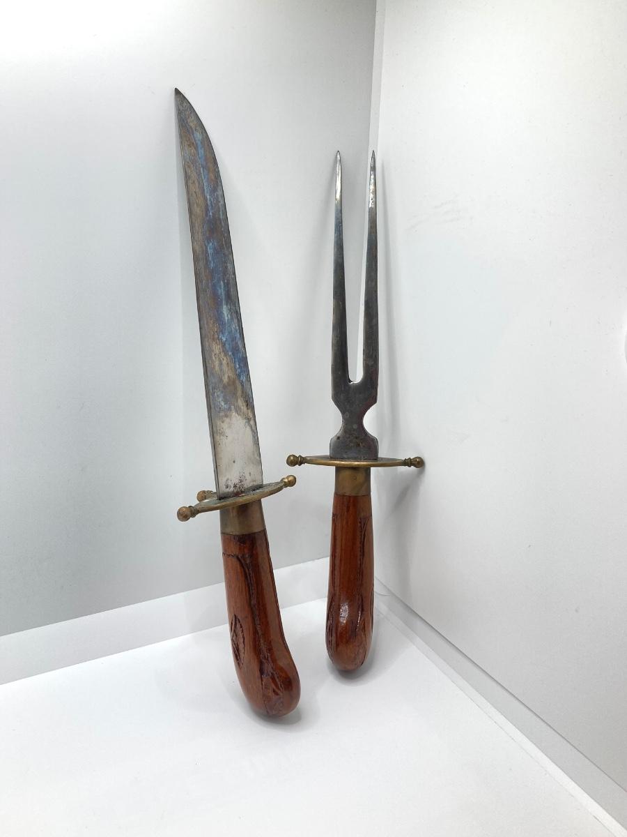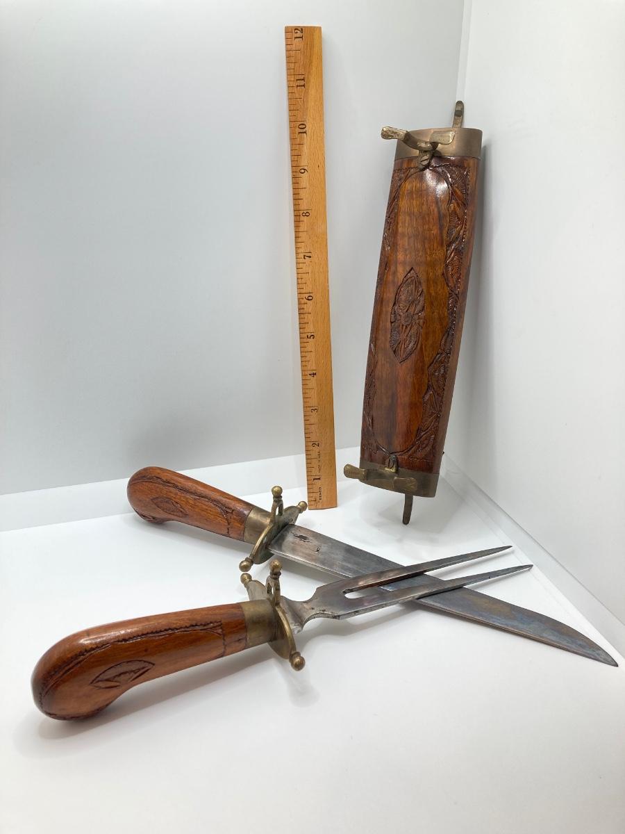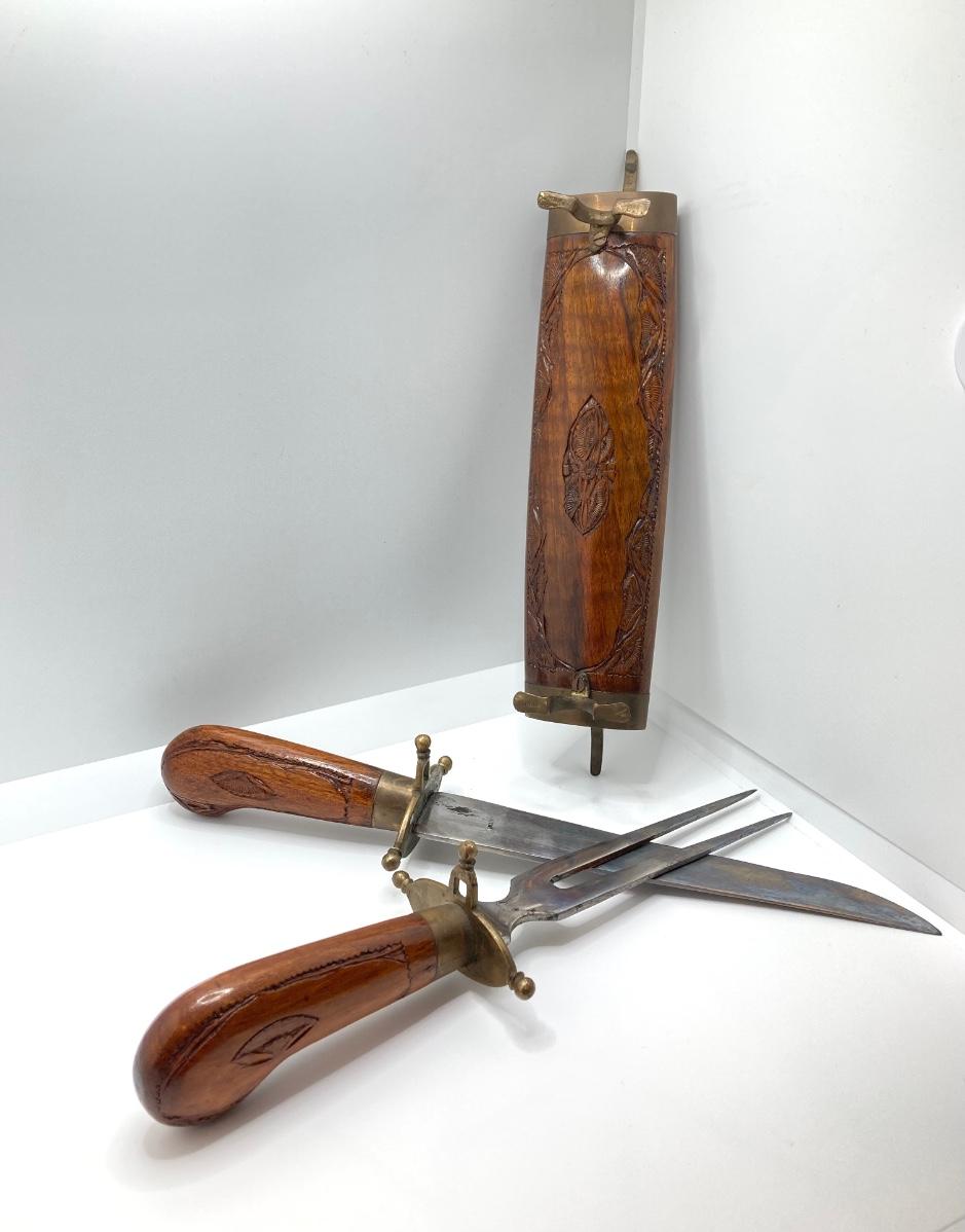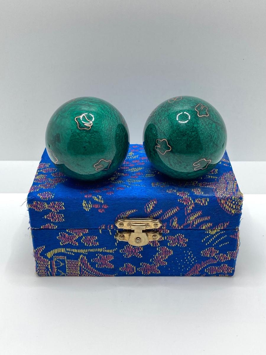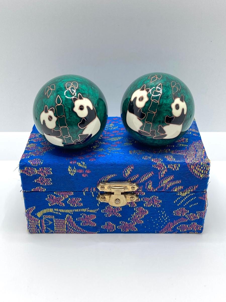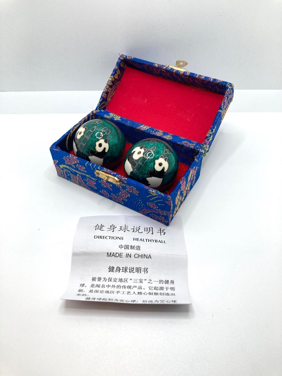 LOT 187: Knife and Fork Carving Set (India), Baoding Health Balls and Decorative Plate