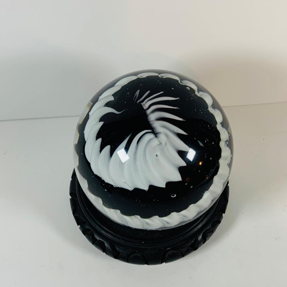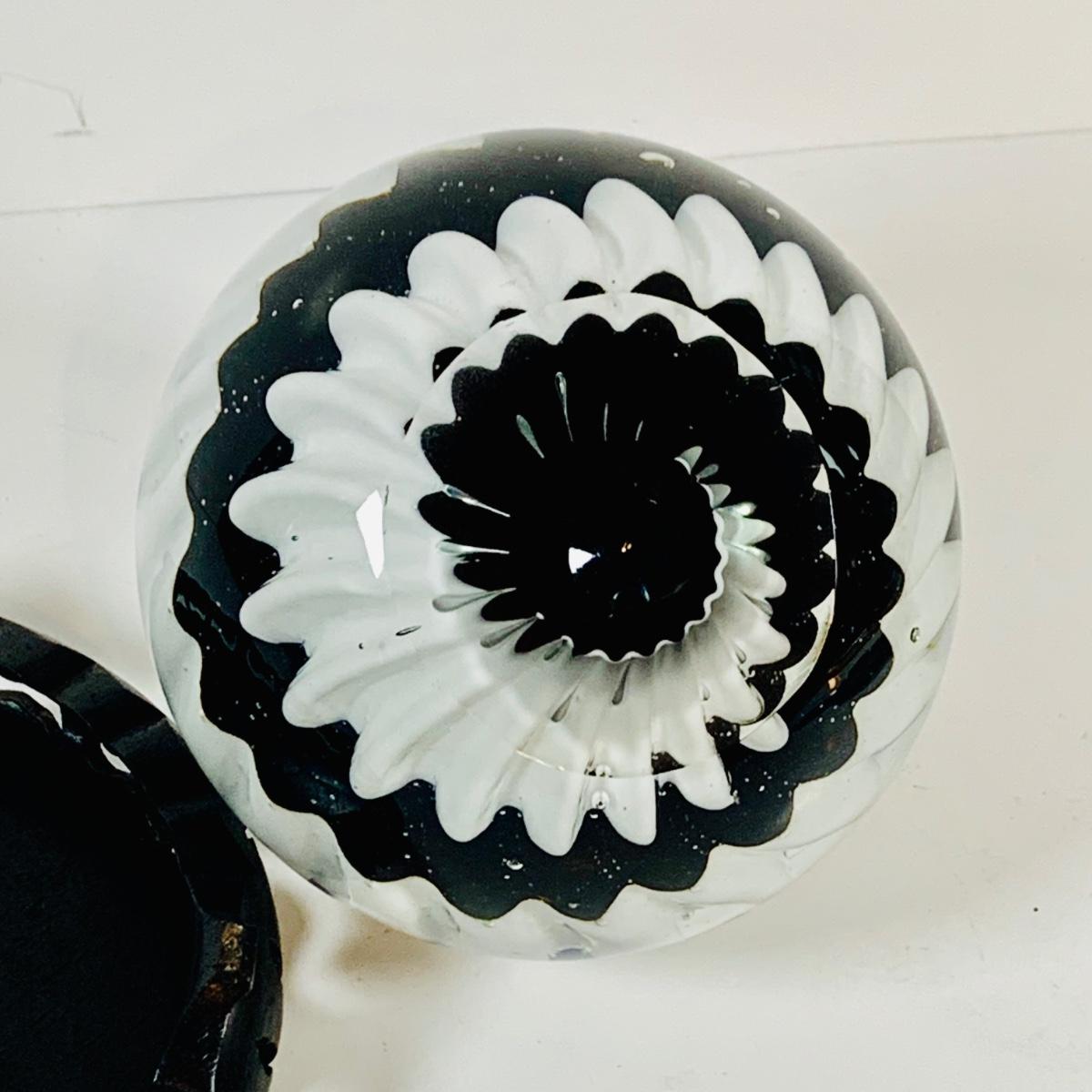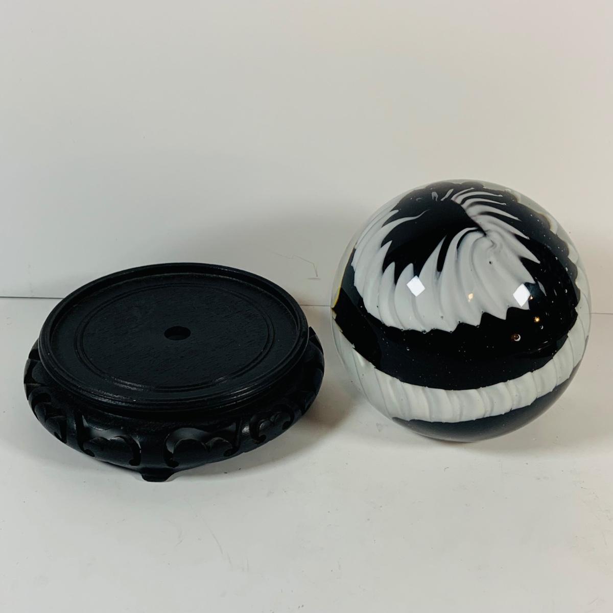 LOT 193: Black and White Paperweight with Wood Base