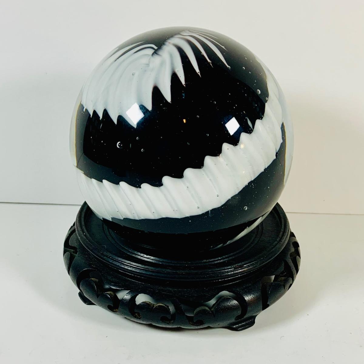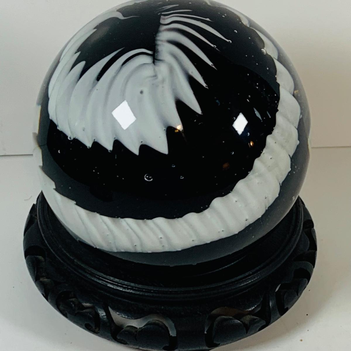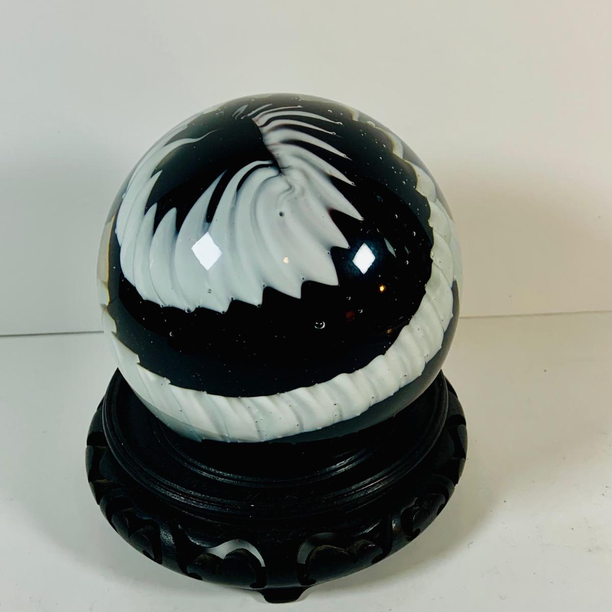 LOT 193: Black and White Paperweight with Wood Base
