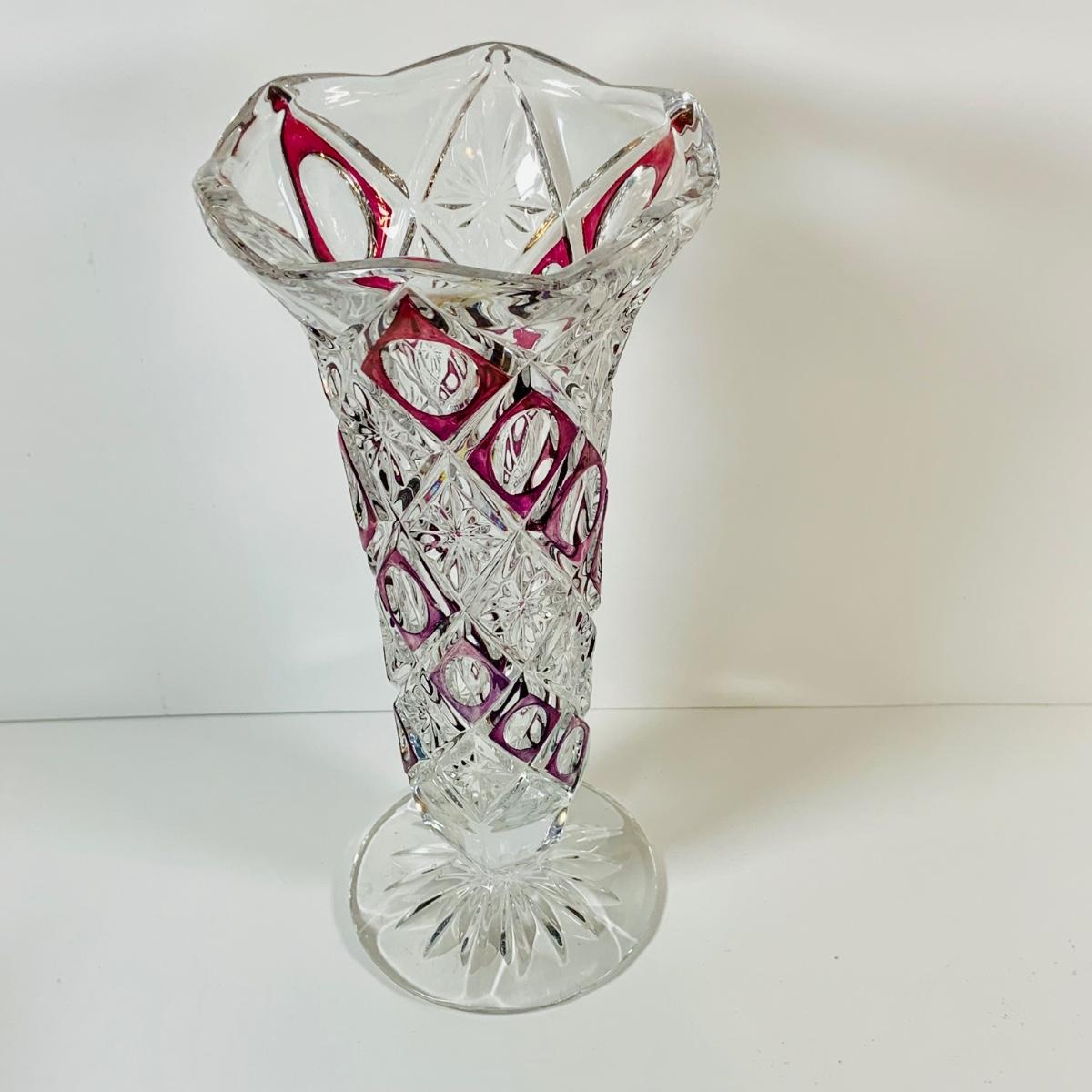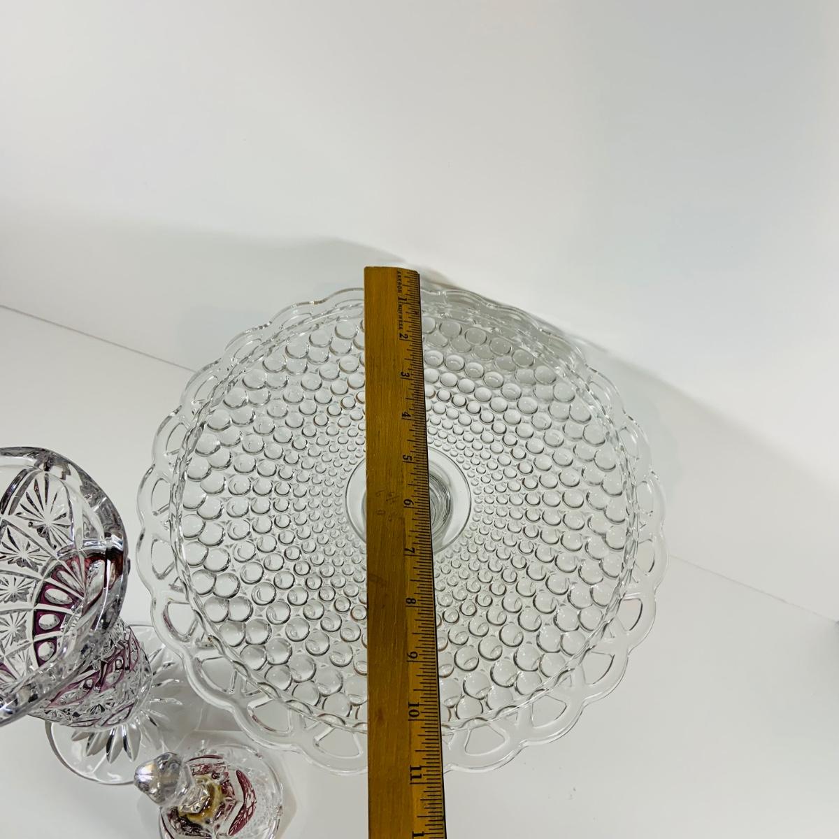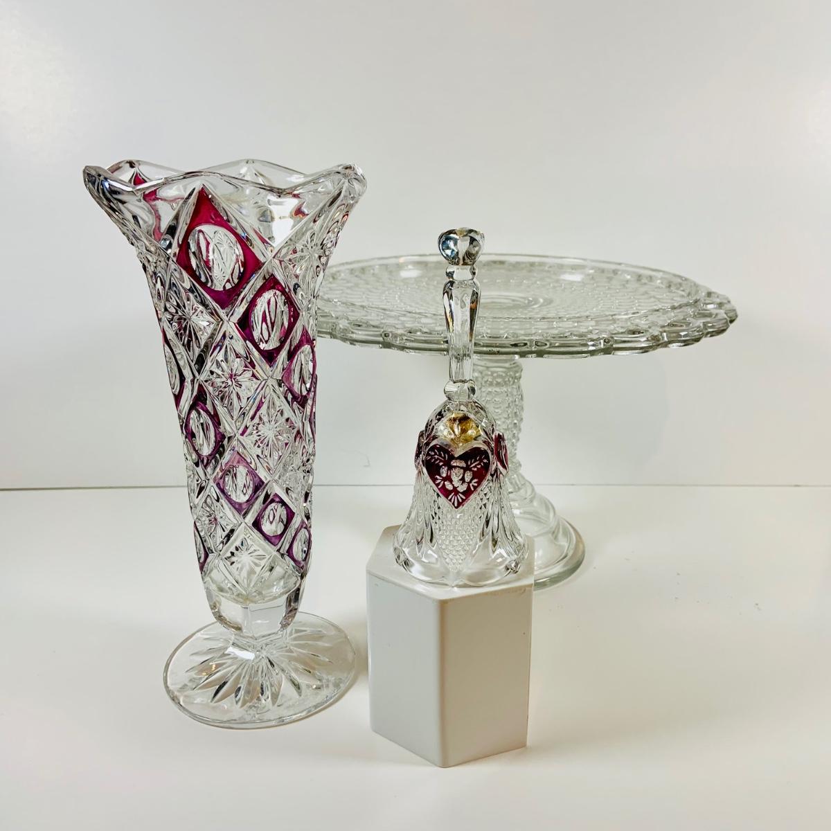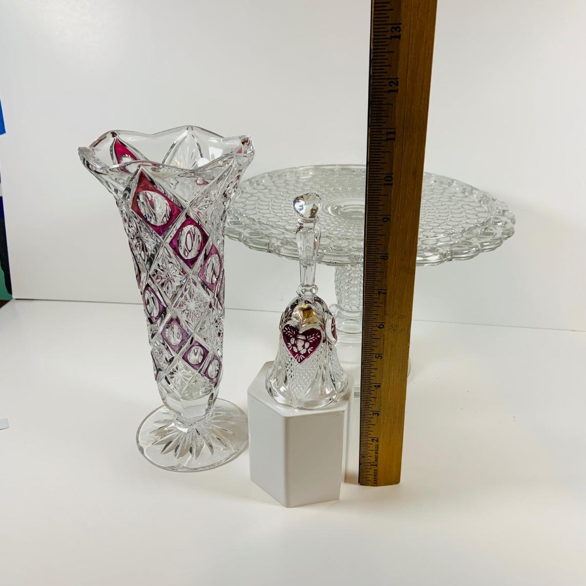 LOT 195: Bleikristal Crystal Vase, Crystal Bell with Cut Glass Heart and a Crystal Cake Dish