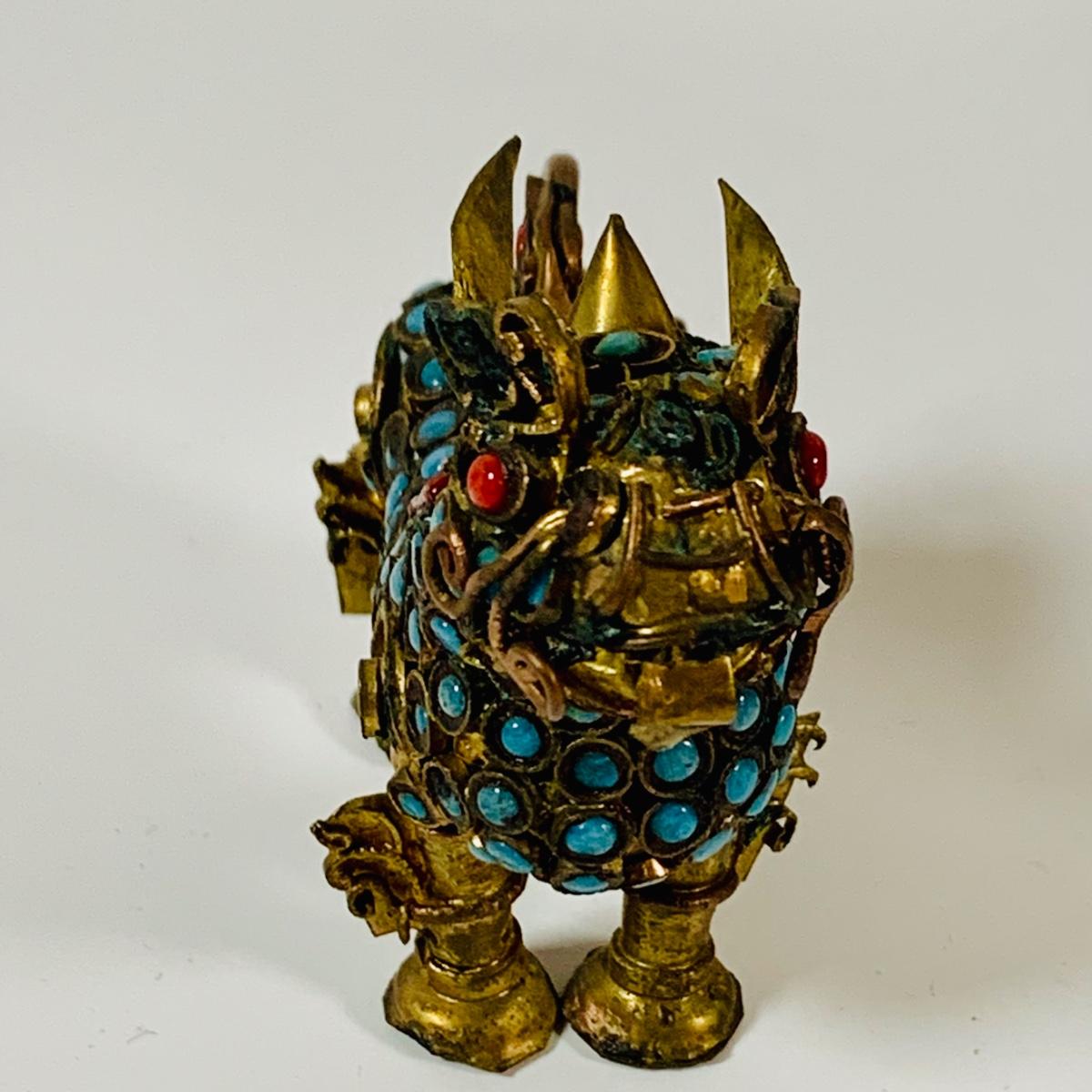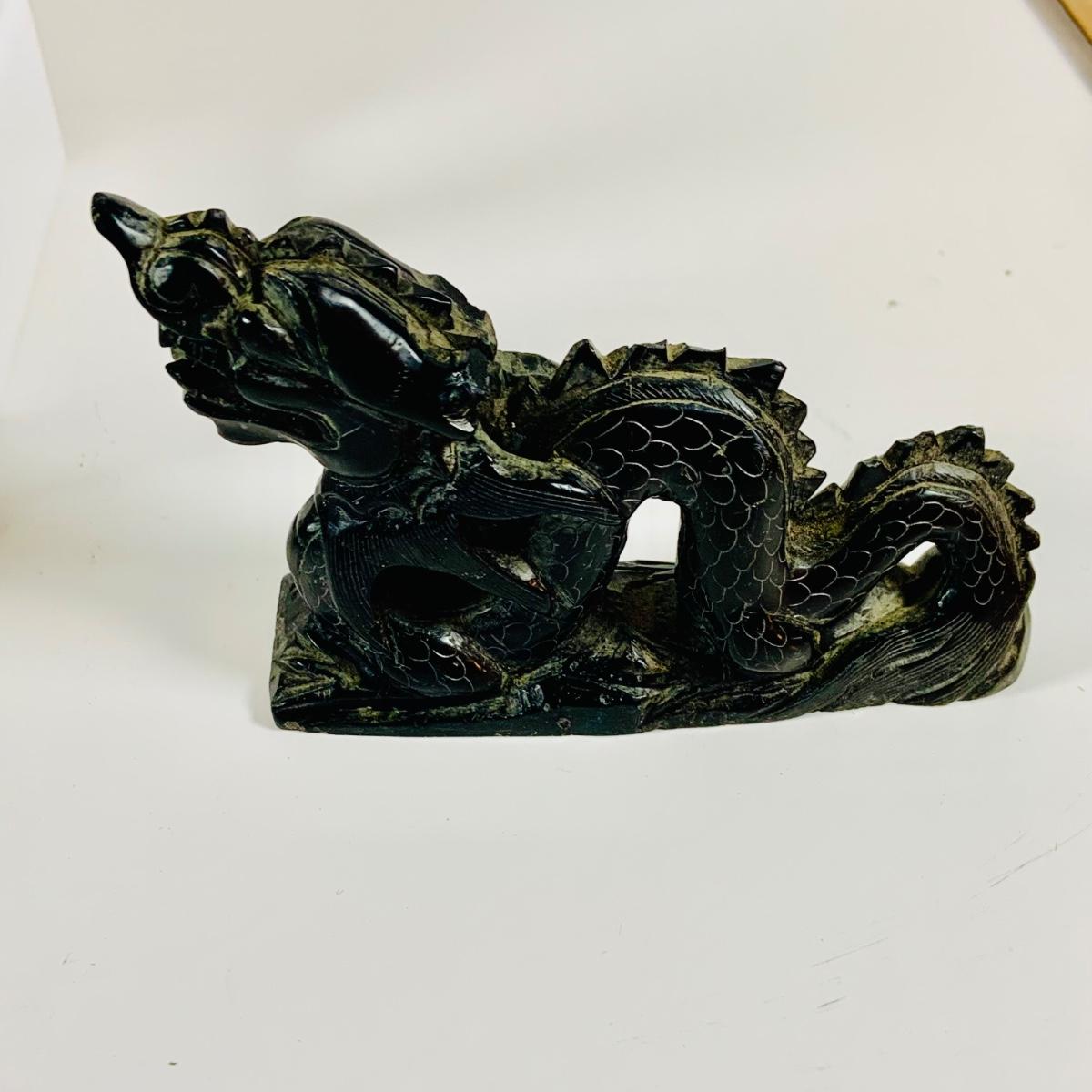 The stone dragon is missing its horns and the standing buddha is chipped on its base.