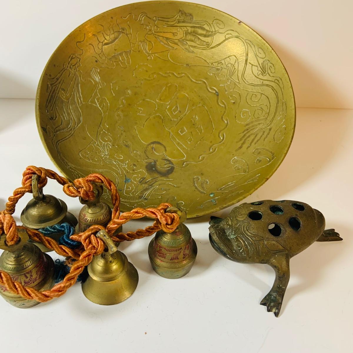 LOT 198: Vintage Brass Bells, Bowl and Frog