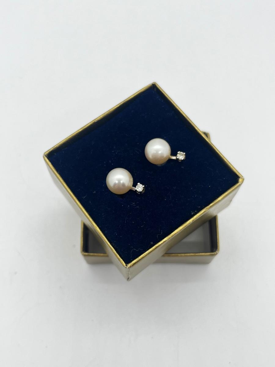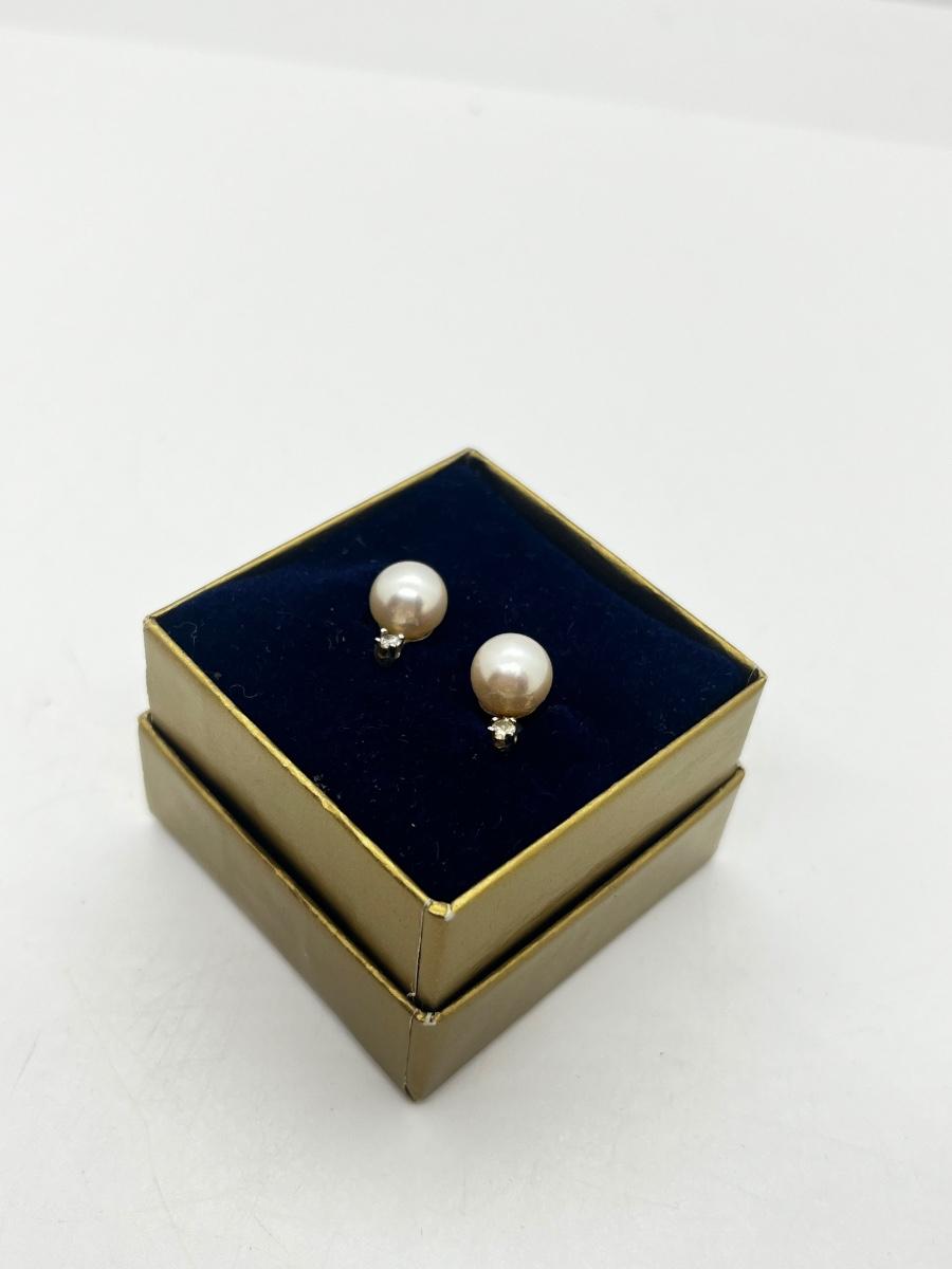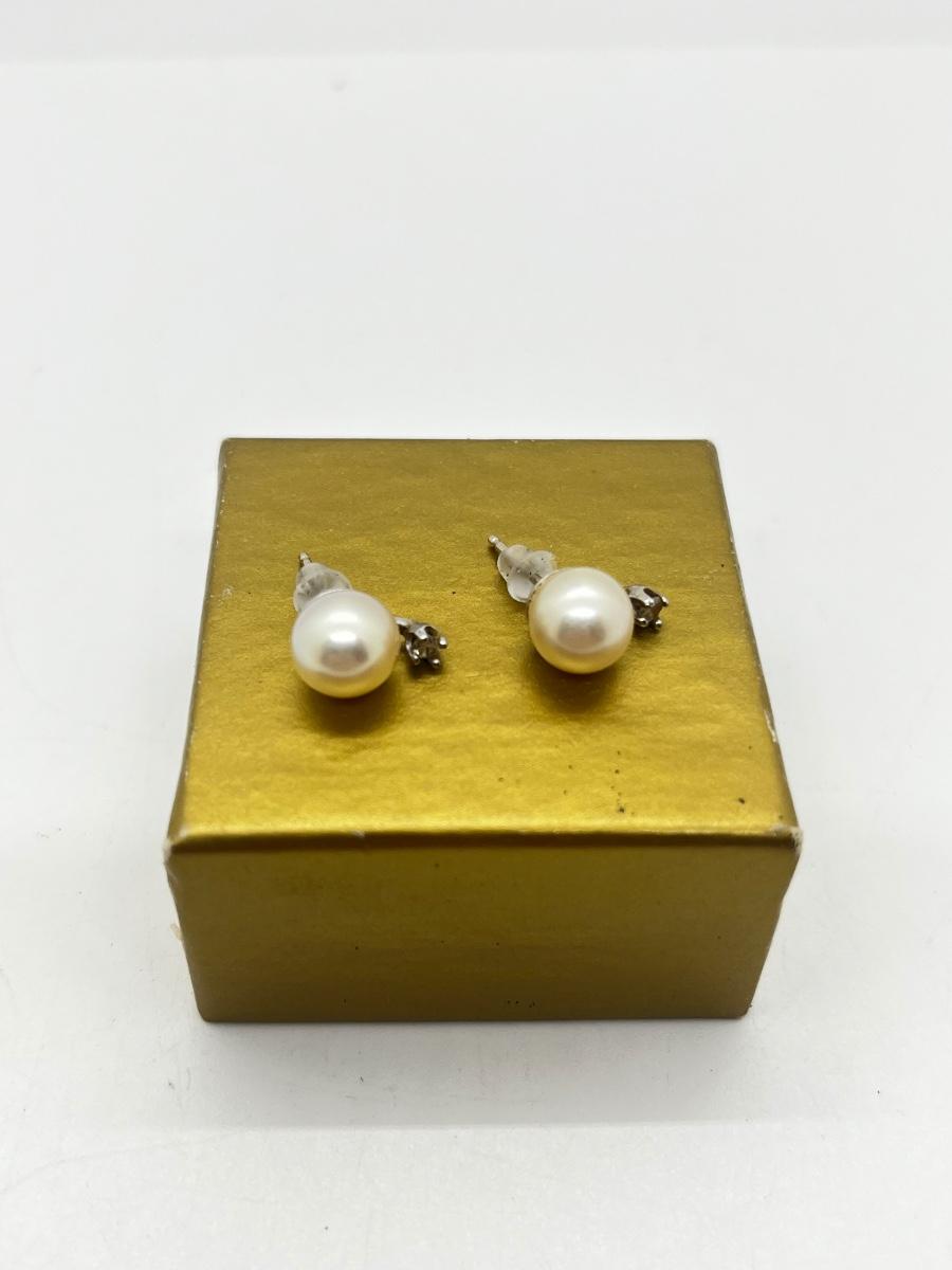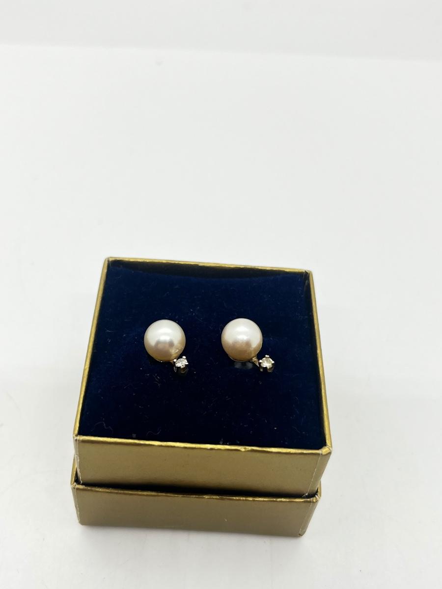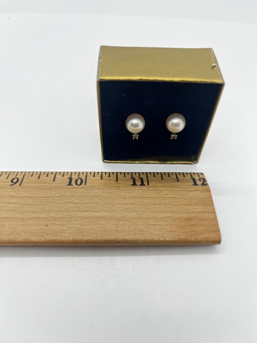 LOT 203J: Cultured Pearl and Diamond Chip Pierced Earrings with 14K Gold Posts