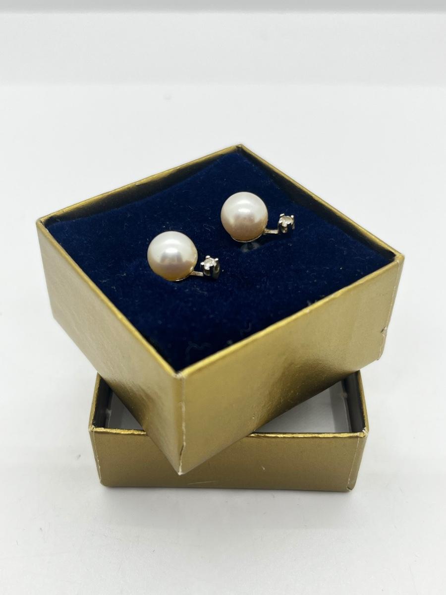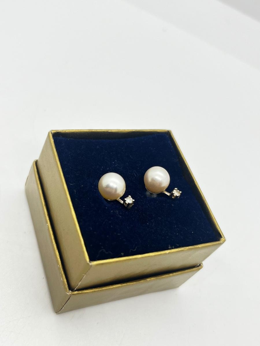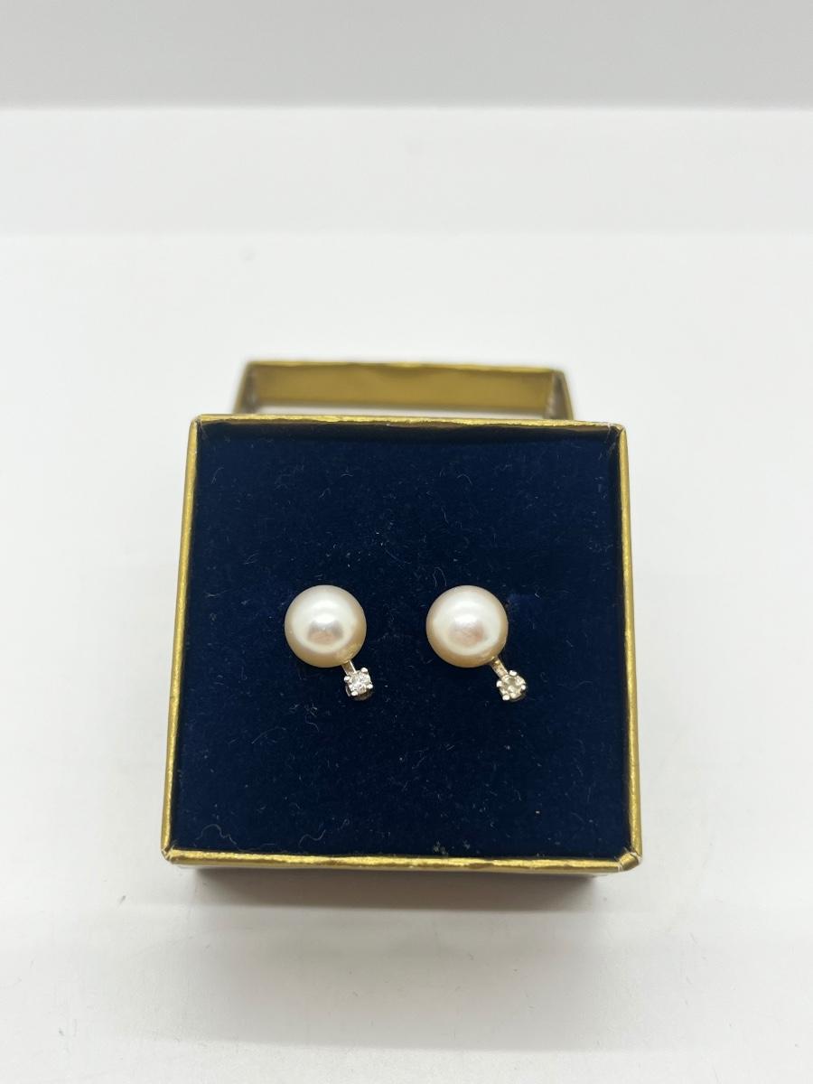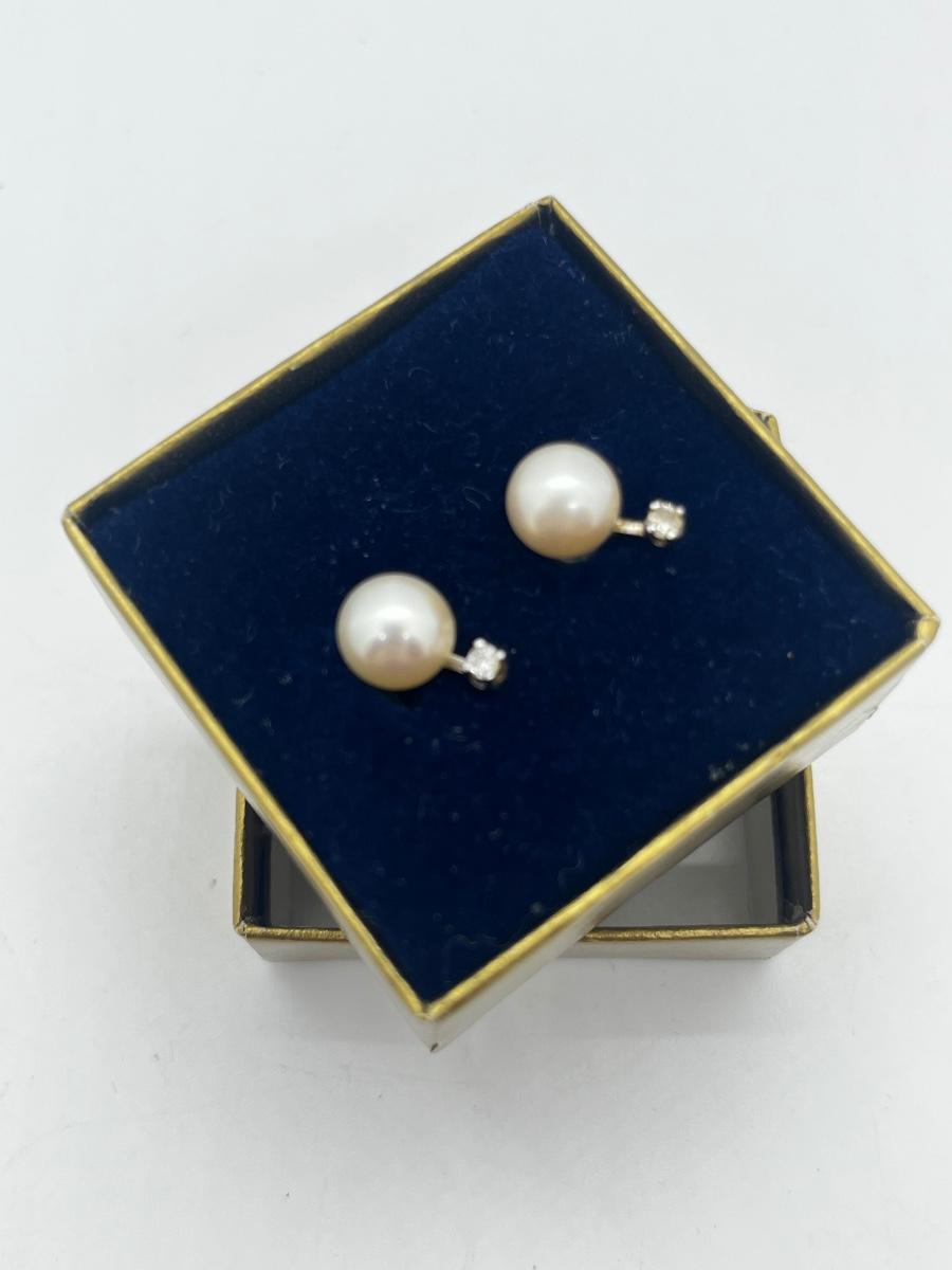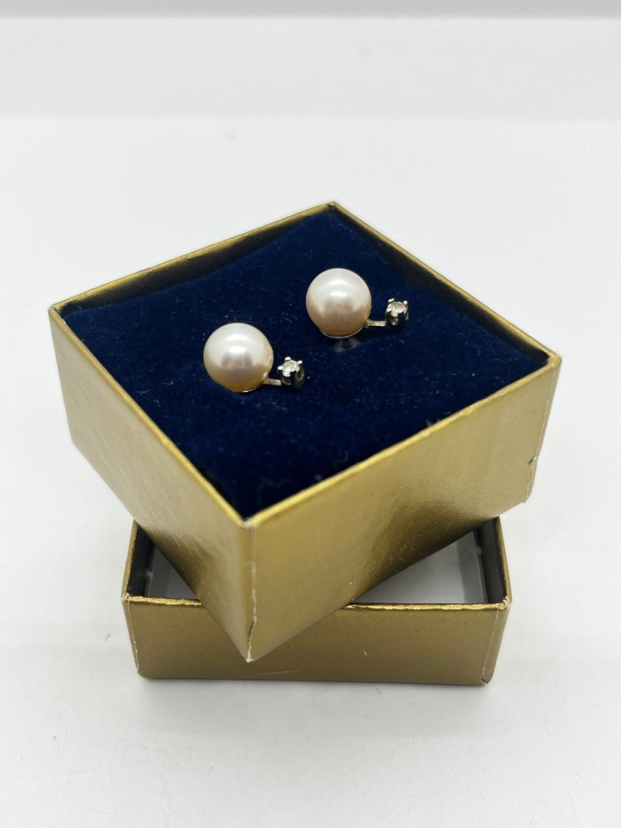 LOT 203J: Cultured Pearl and Diamond Chip Pierced Earrings with 14K Gold Posts