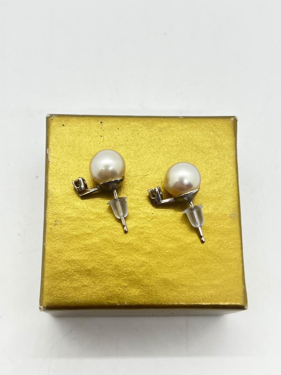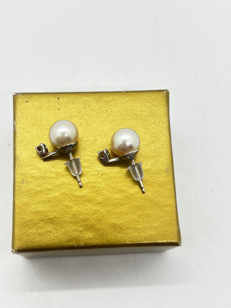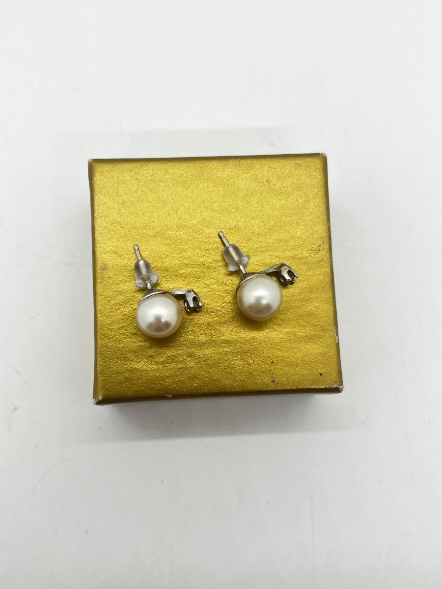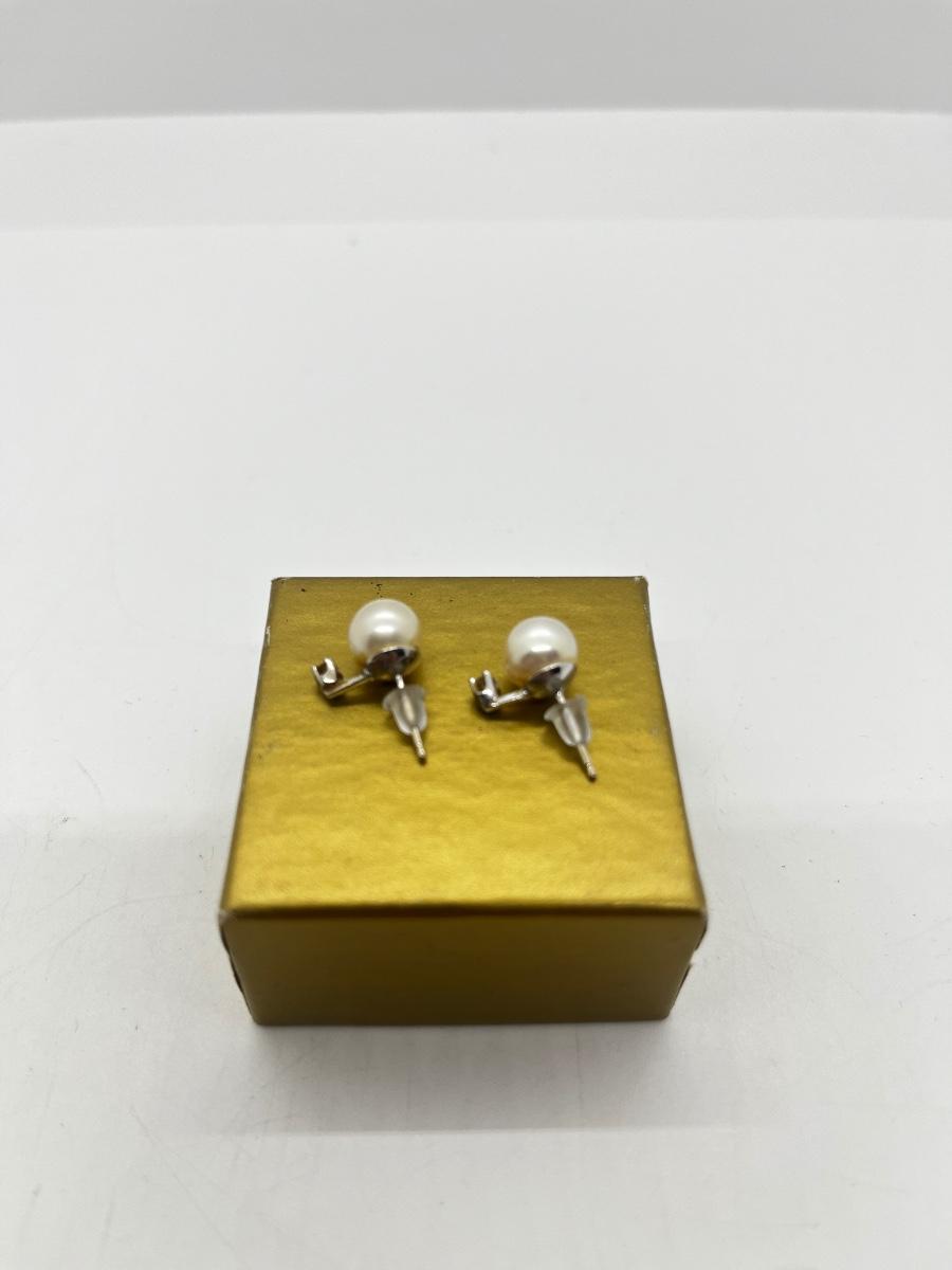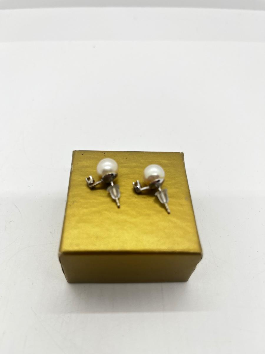 LOT 203J: Cultured Pearl and Diamond Chip Pierced Earrings with 14K Gold Posts