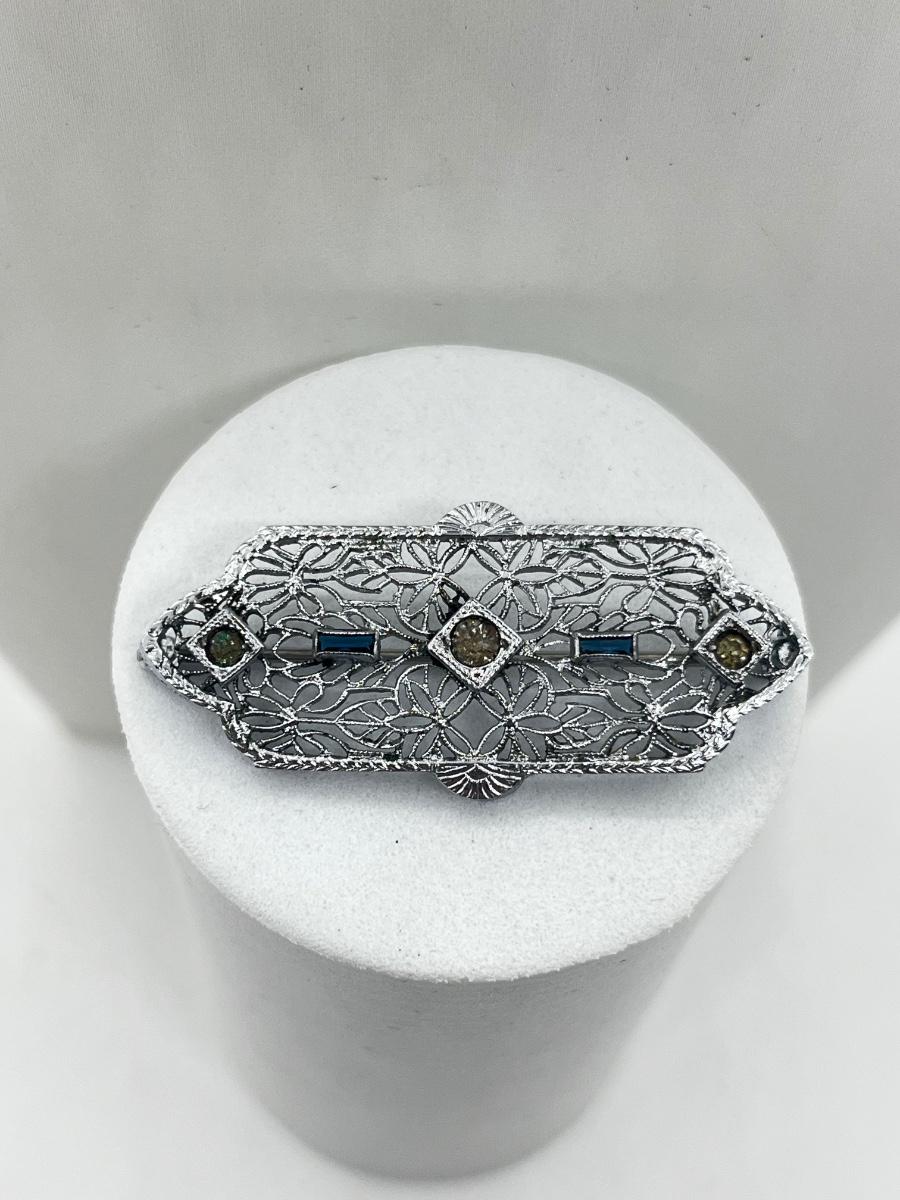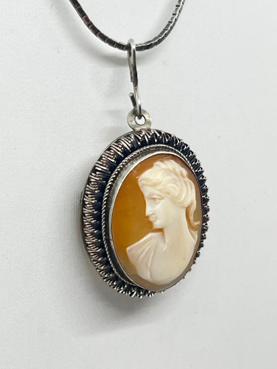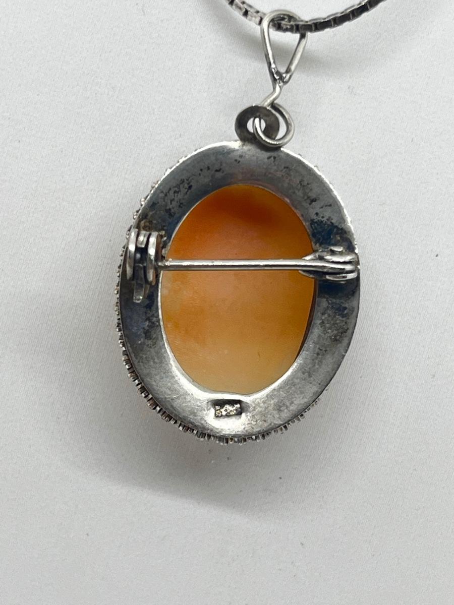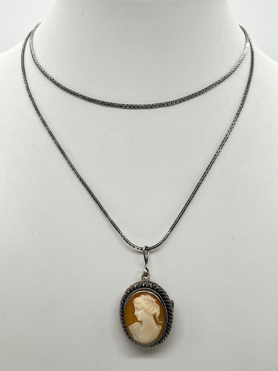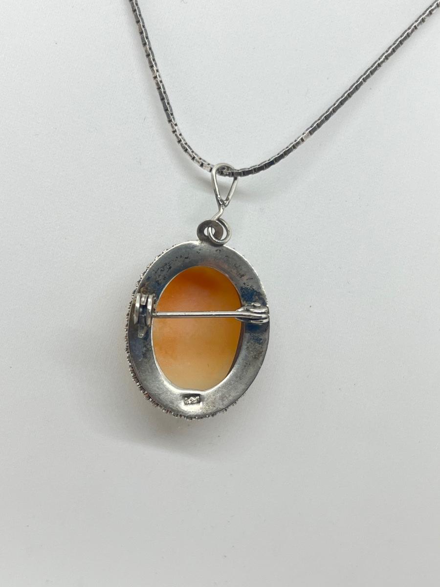 LOT 206J: Vintage Victorian Rhinestone Brooch and Vintage Left Facing Cameo Pin/Pendant on 925 Chain