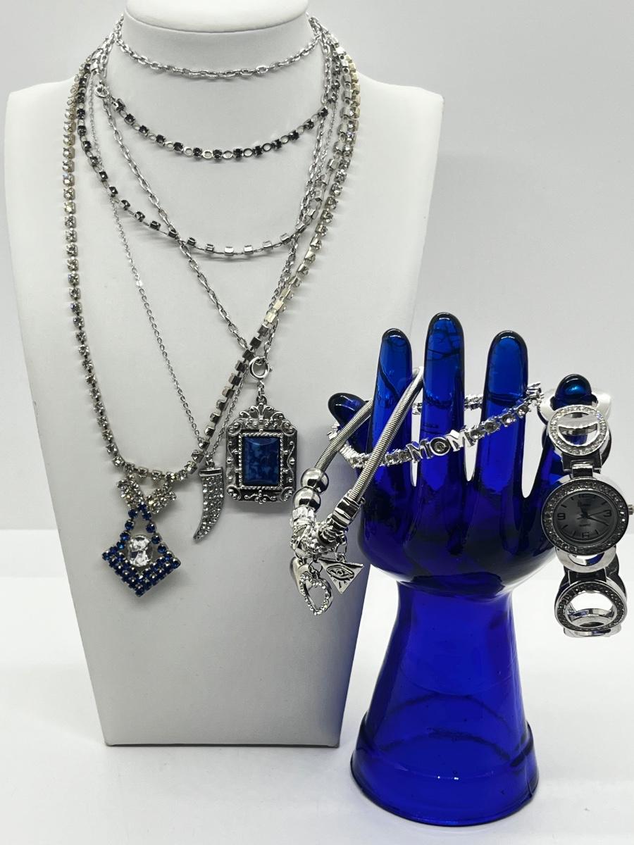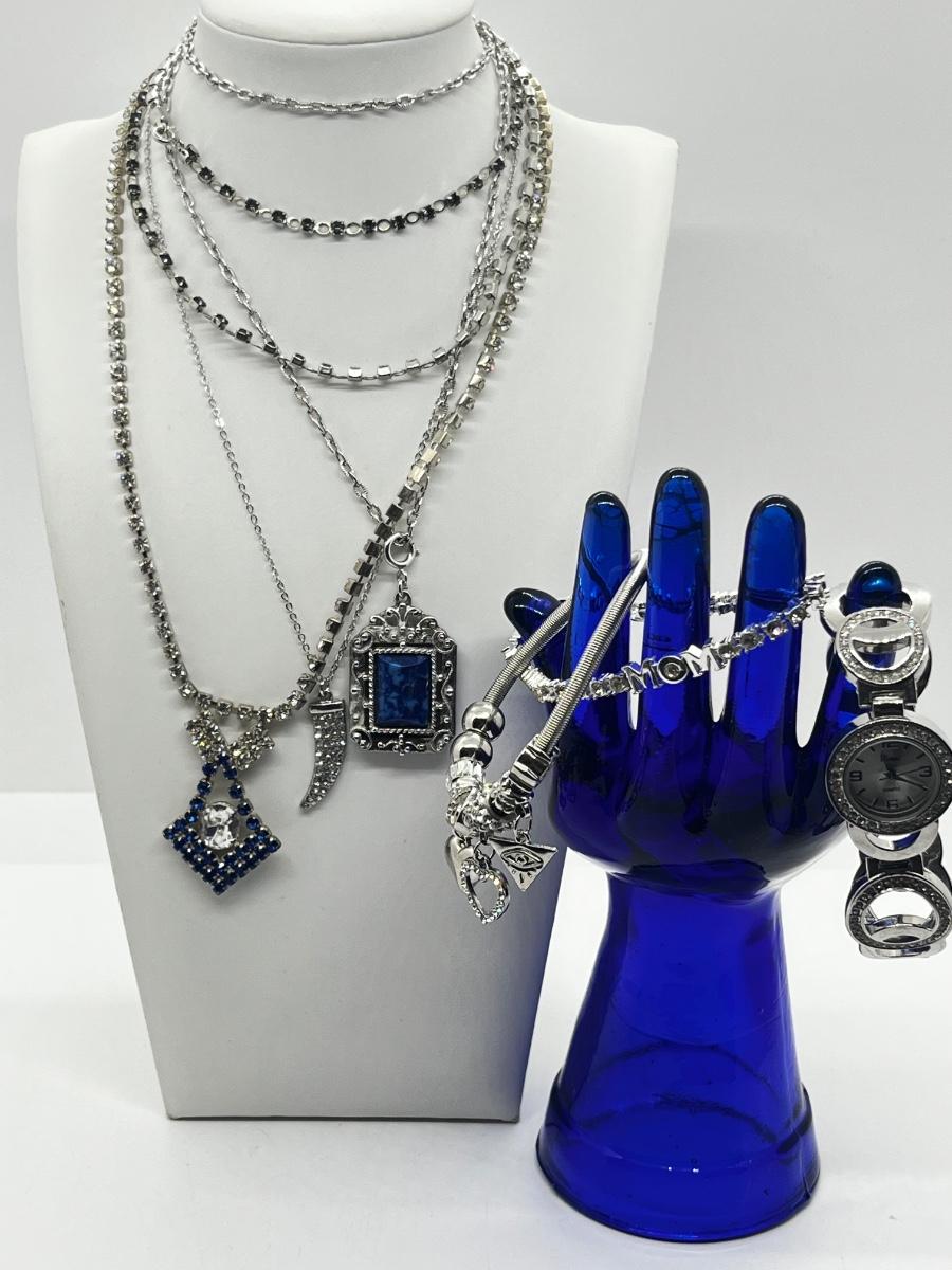 LOT 208J: Silvertone, Rhinestone and Crystal Costume Jewelry Collection