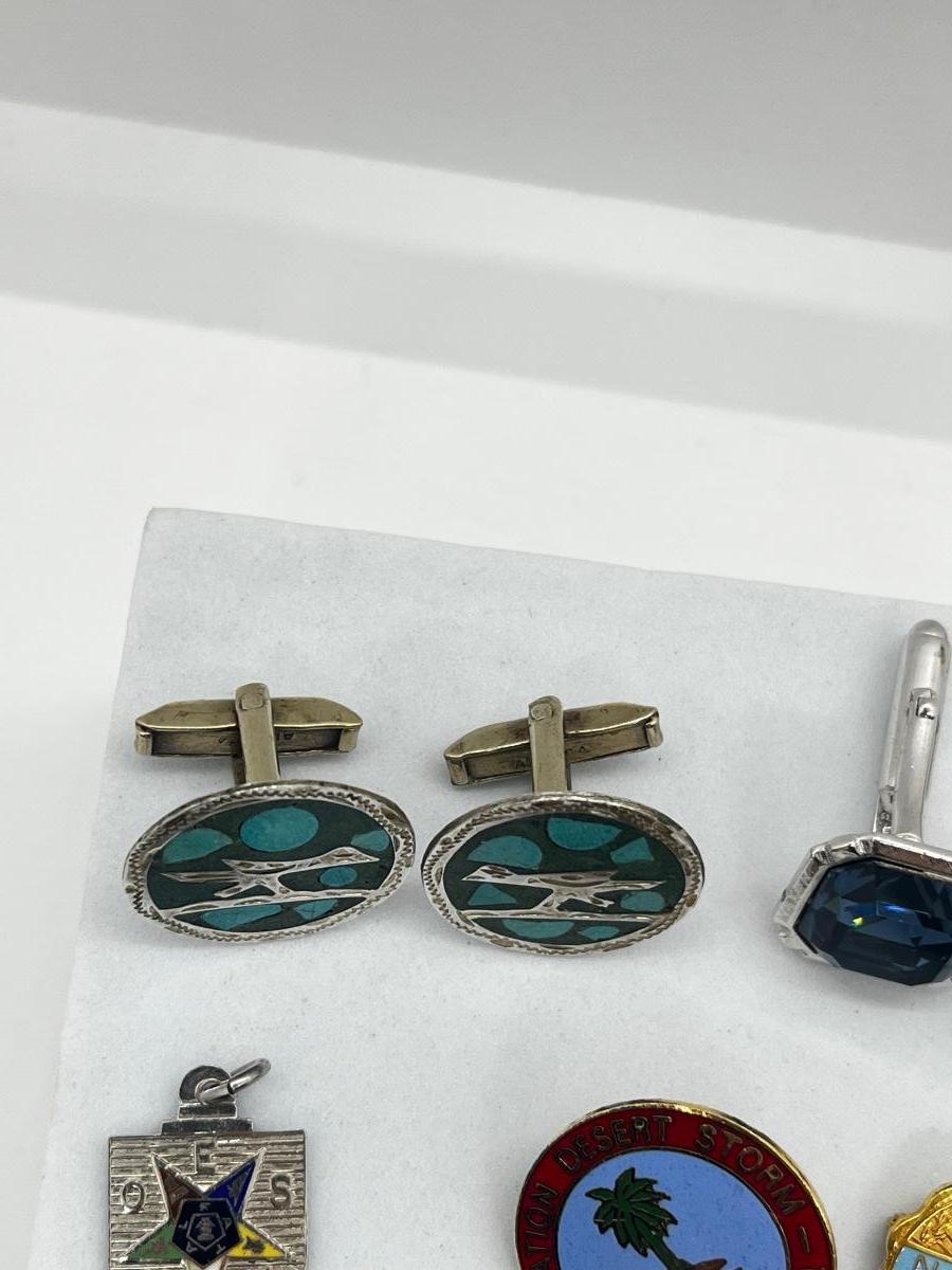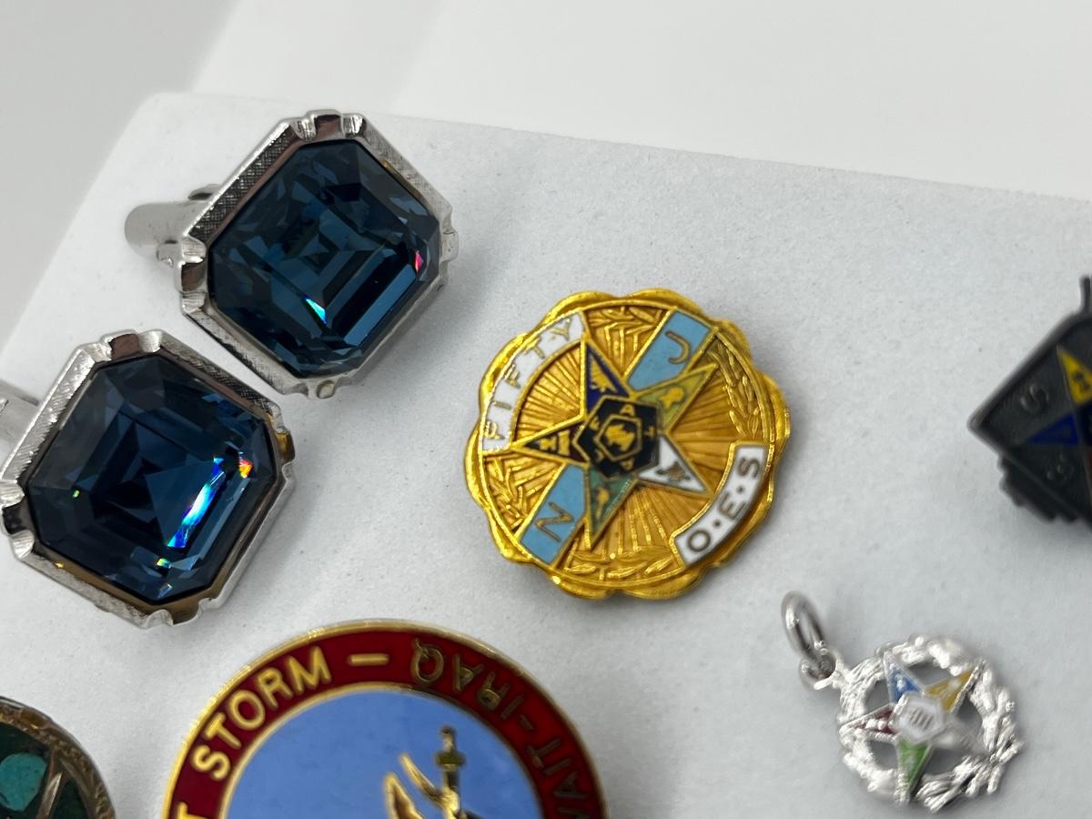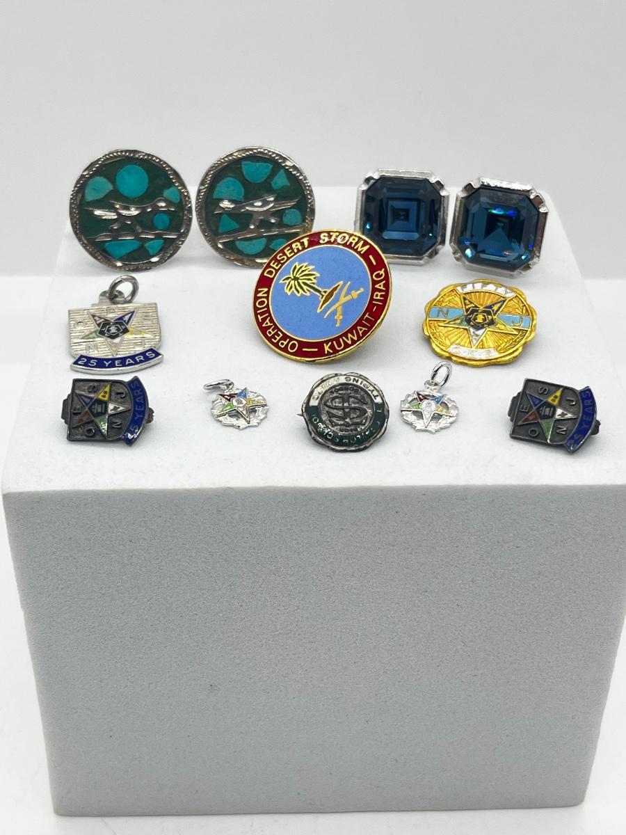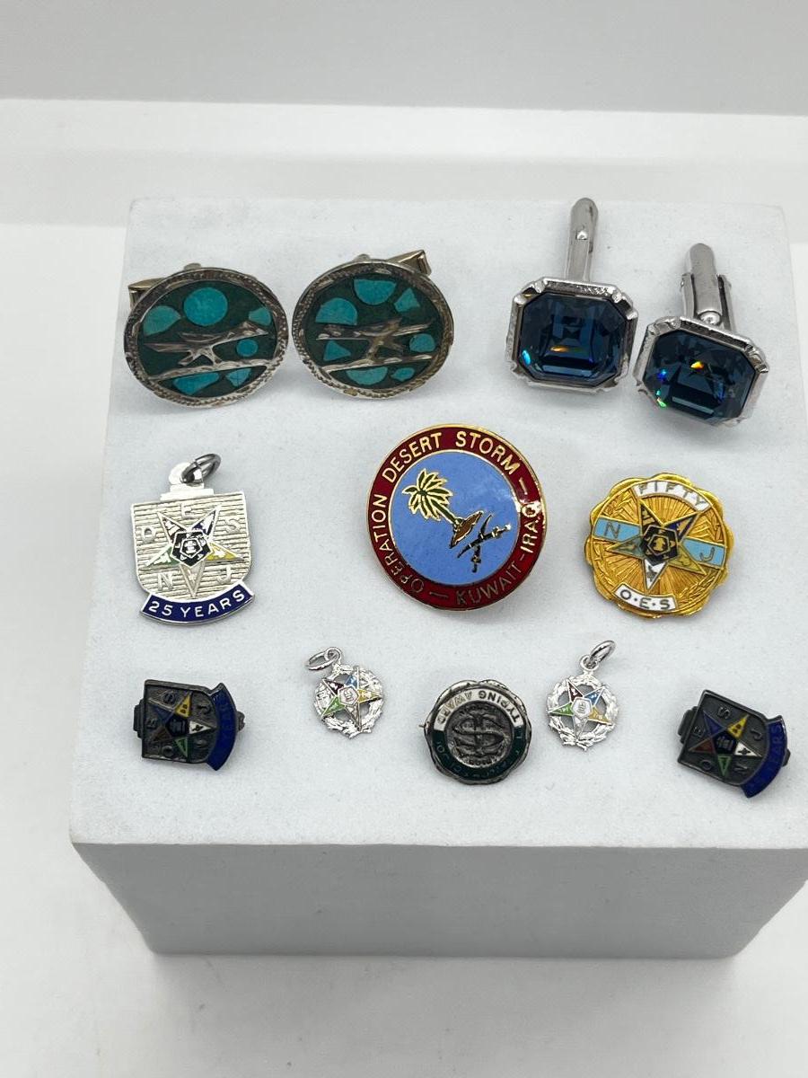 LOT 213J: Miscellaneous Mason Pins with Two Unique Sets of Cufflinks - Some Marked 925