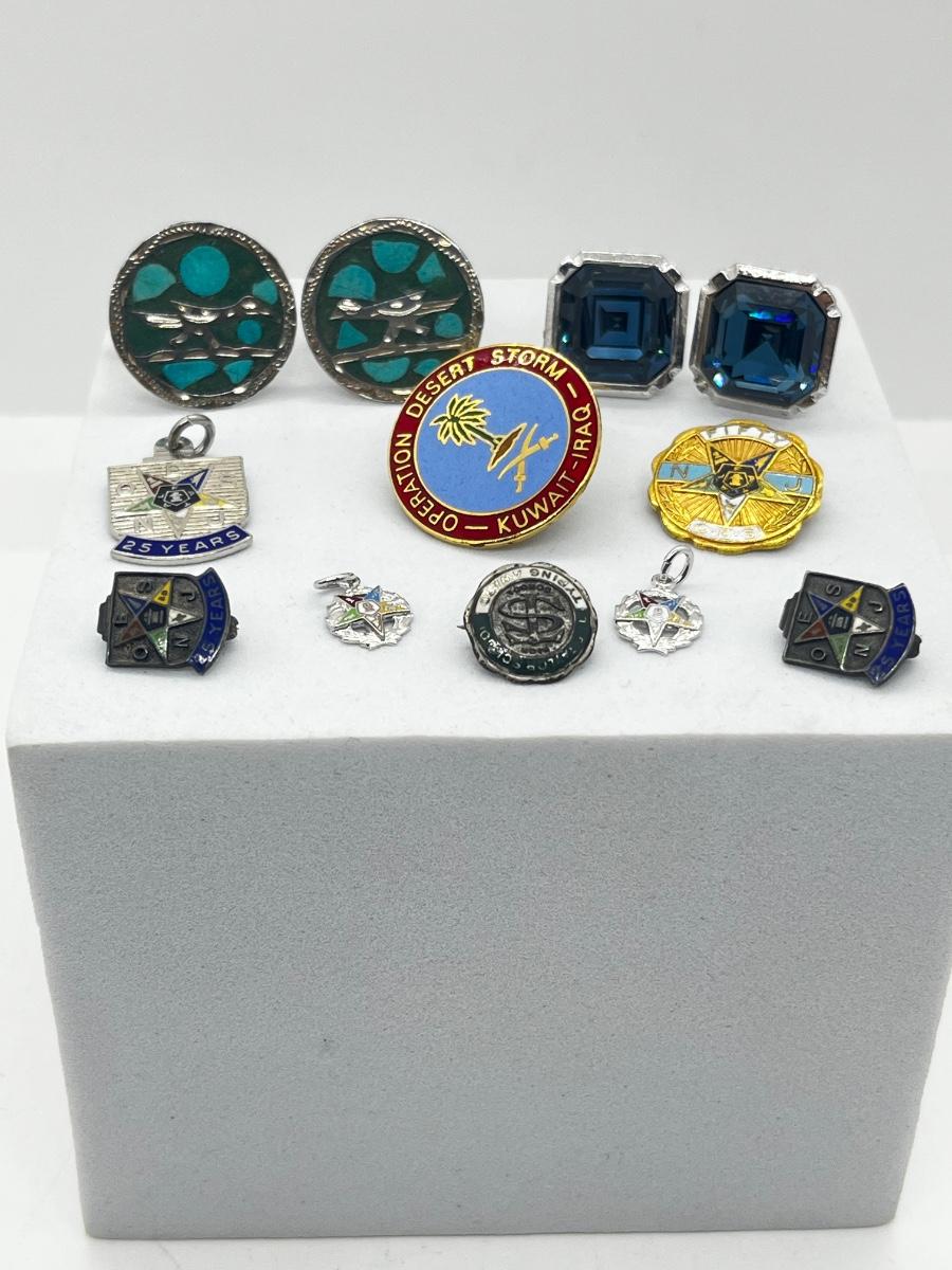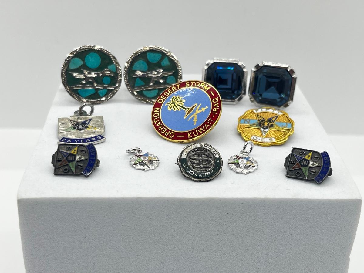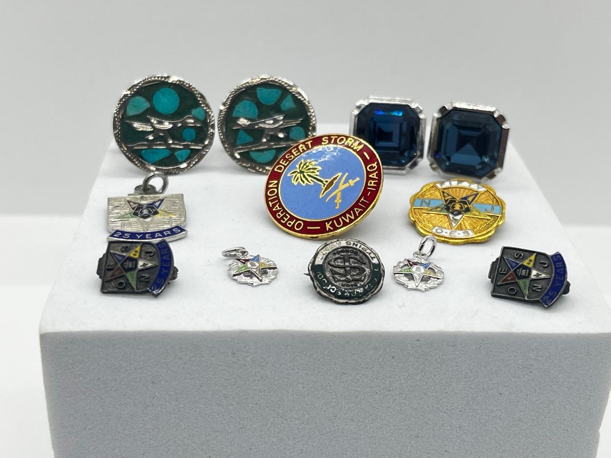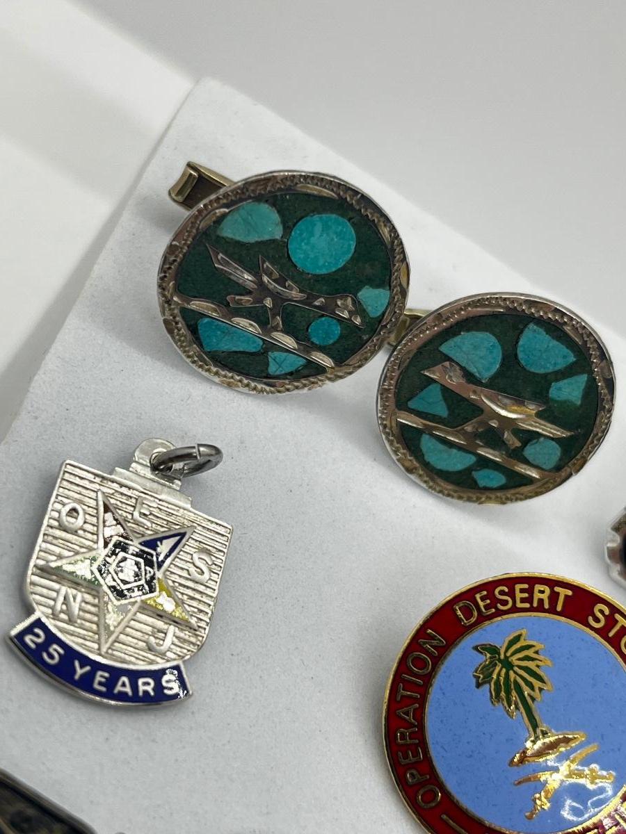 LOT 213J: Miscellaneous Mason Pins with Two Unique Sets of Cufflinks - Some Marked 925