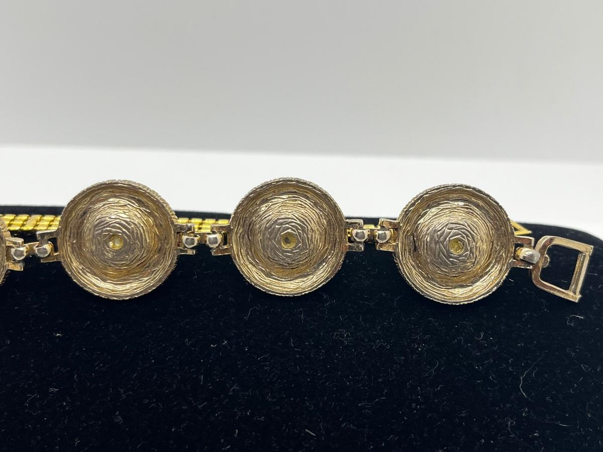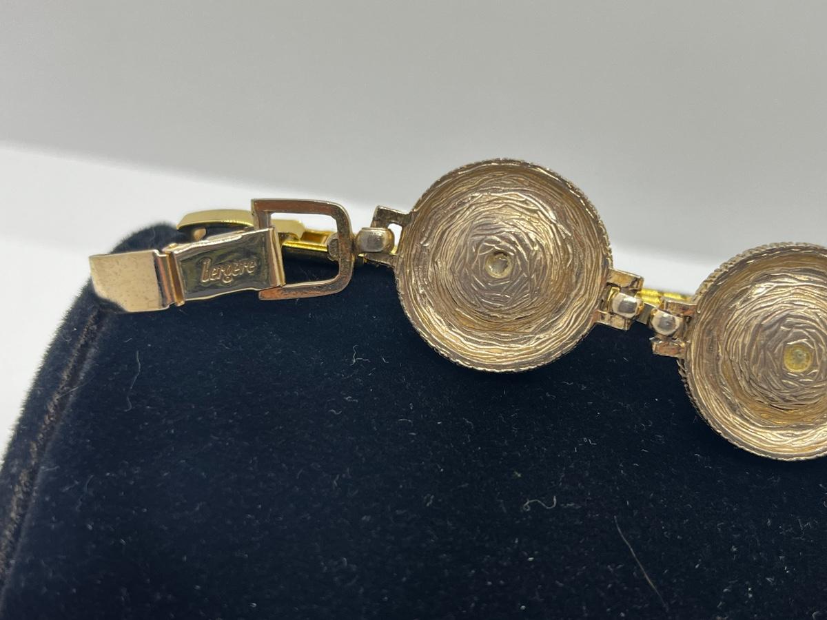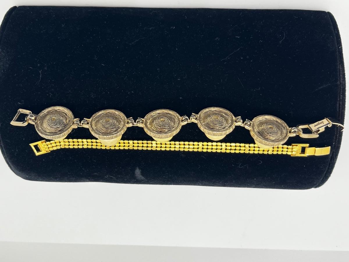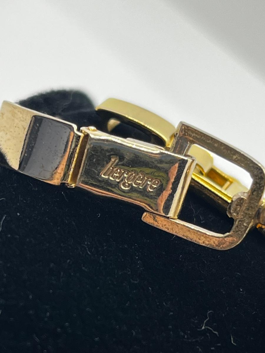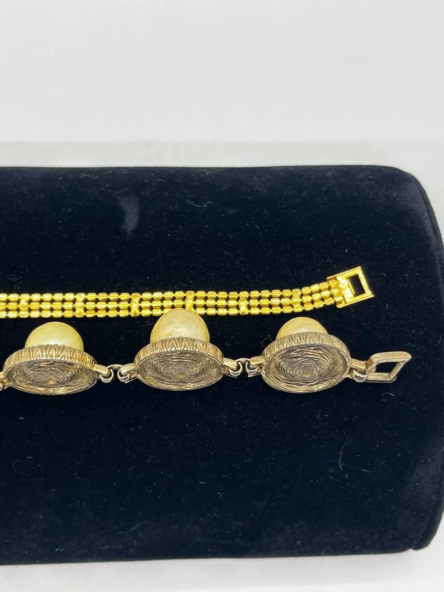 LOT 221J: Vintage Bergere Goldtone Faux Pearl and Rhinestone Link Bracelet (7.5") and Triple Row Goldtone and Rhinestone Bracelet (7")