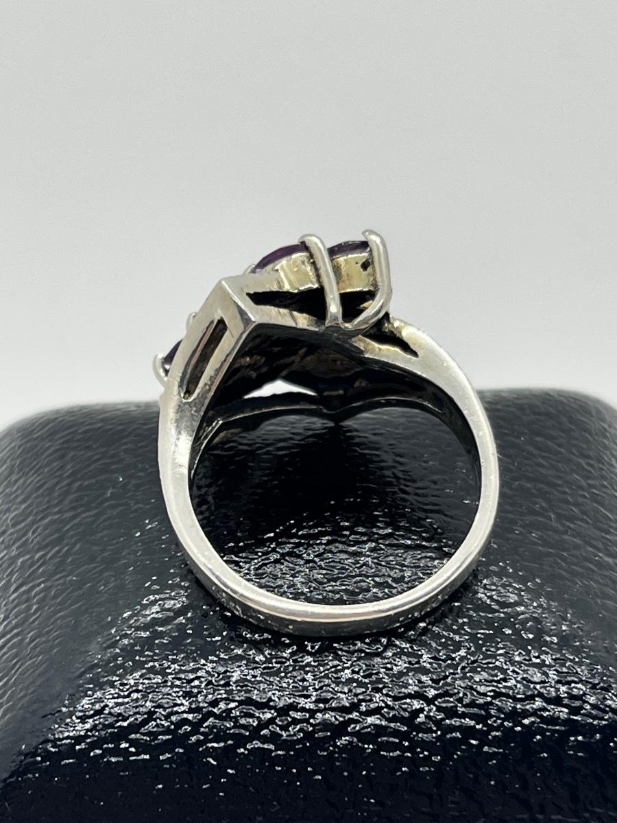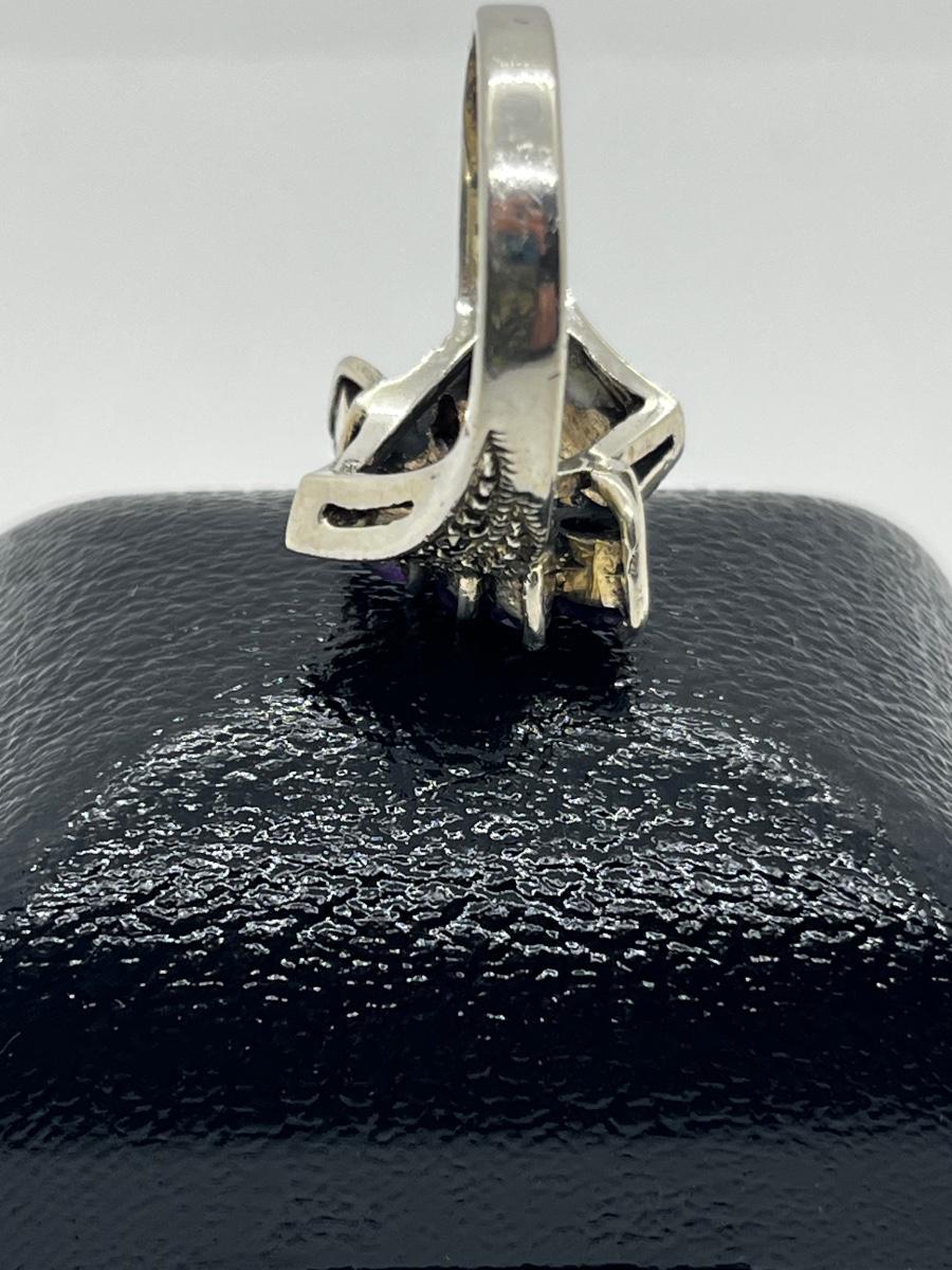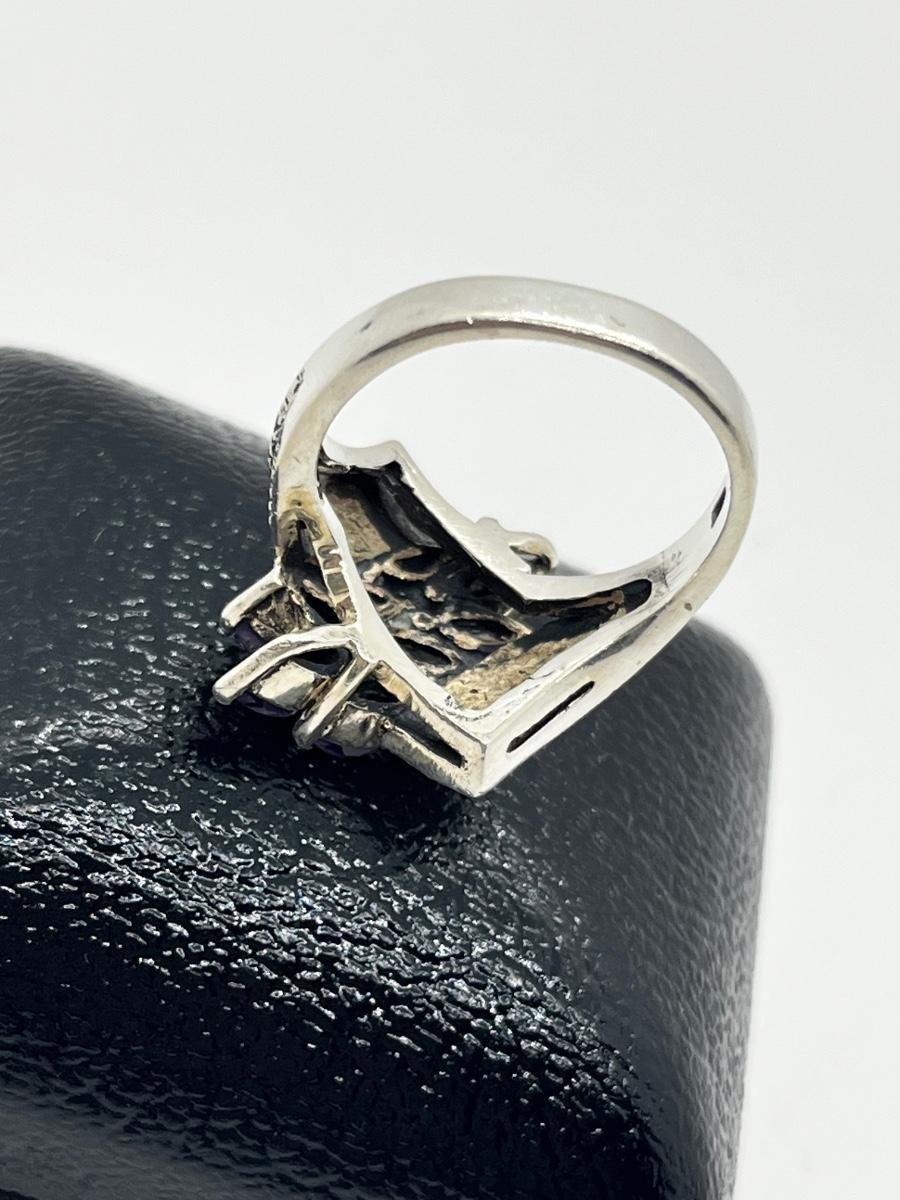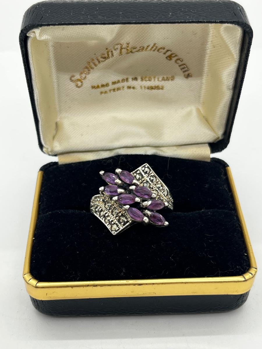 LOT 228J: Stunning Vintage Sterling and Marcasite Amethyst Cluster Ring - Size 8 - 7.4 GTW
