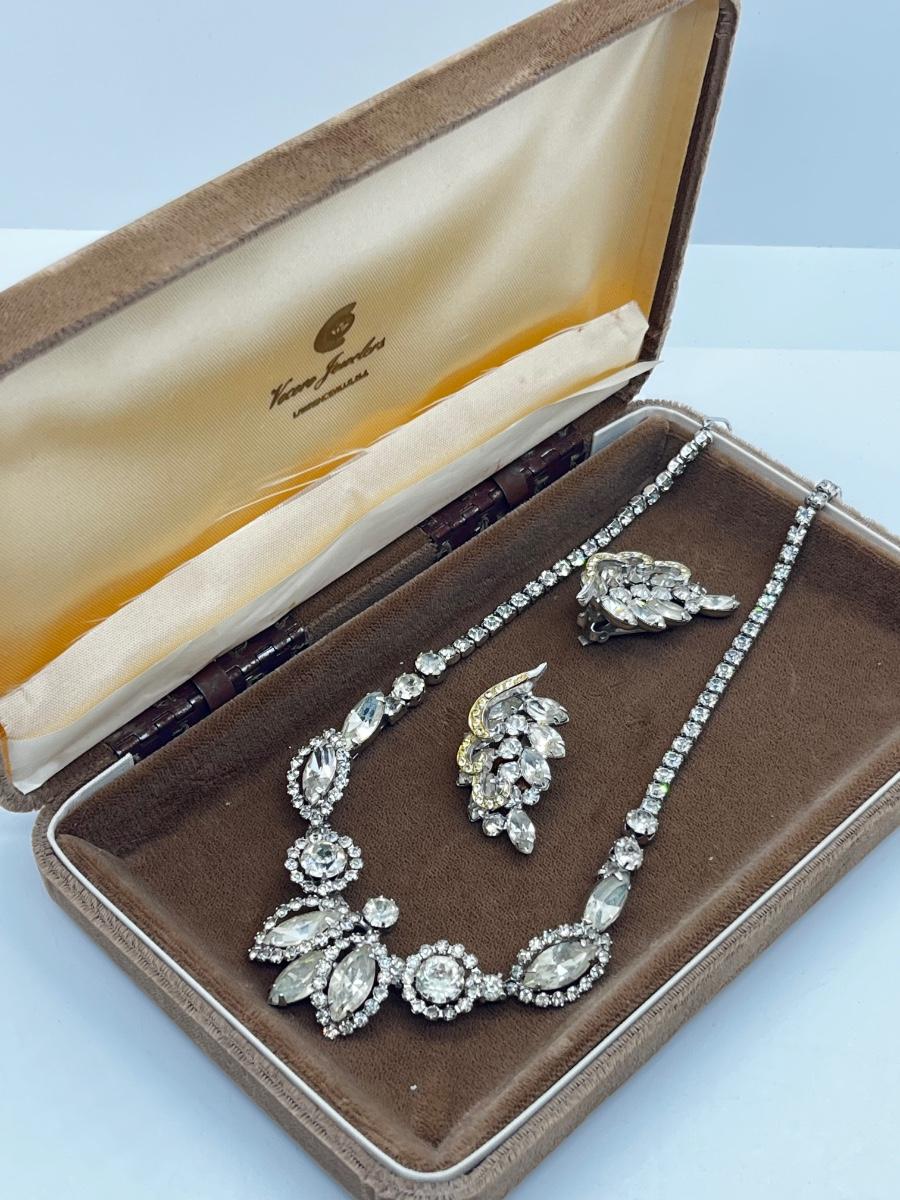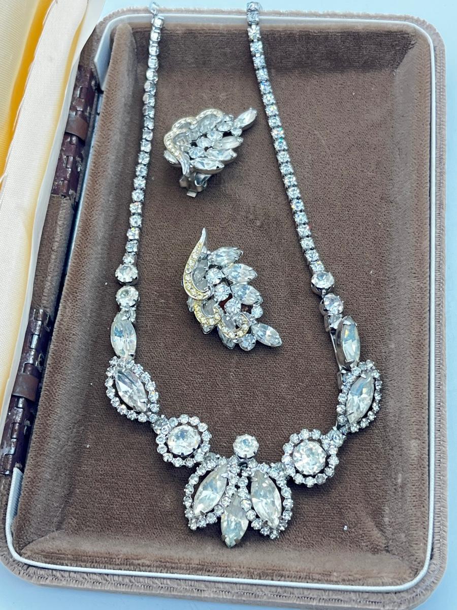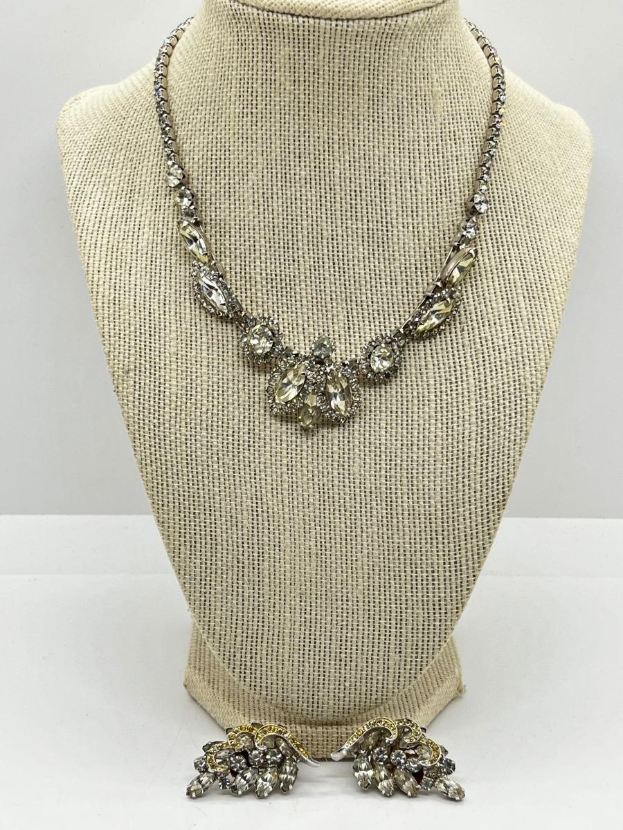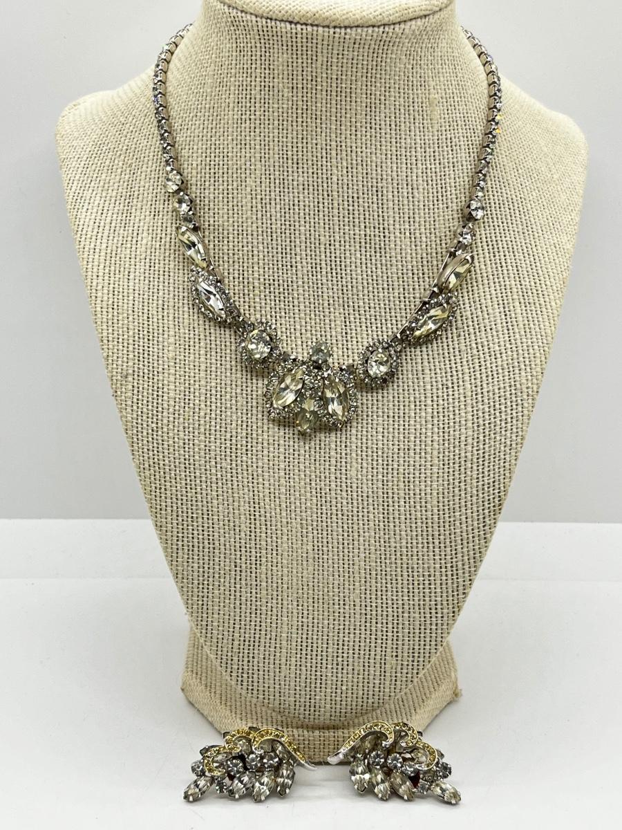 LOT 238J: Vintage 16" Rhinestone Necklace and Weiss Clip On Earrings