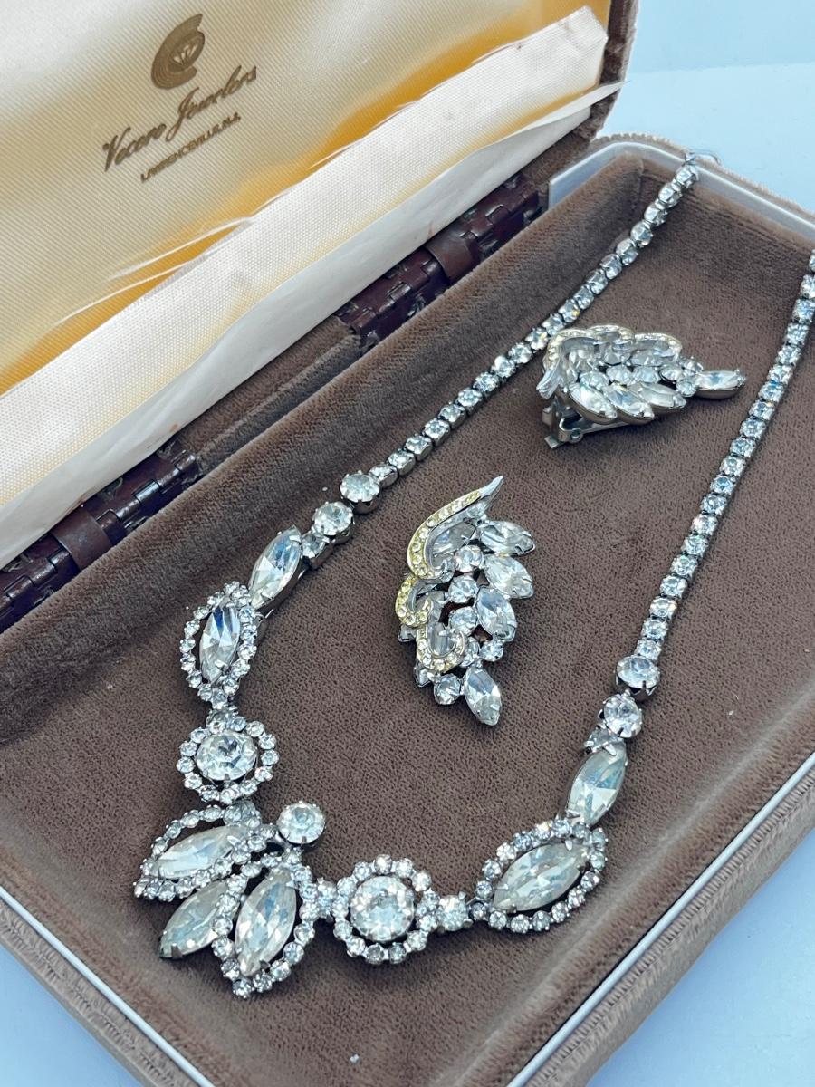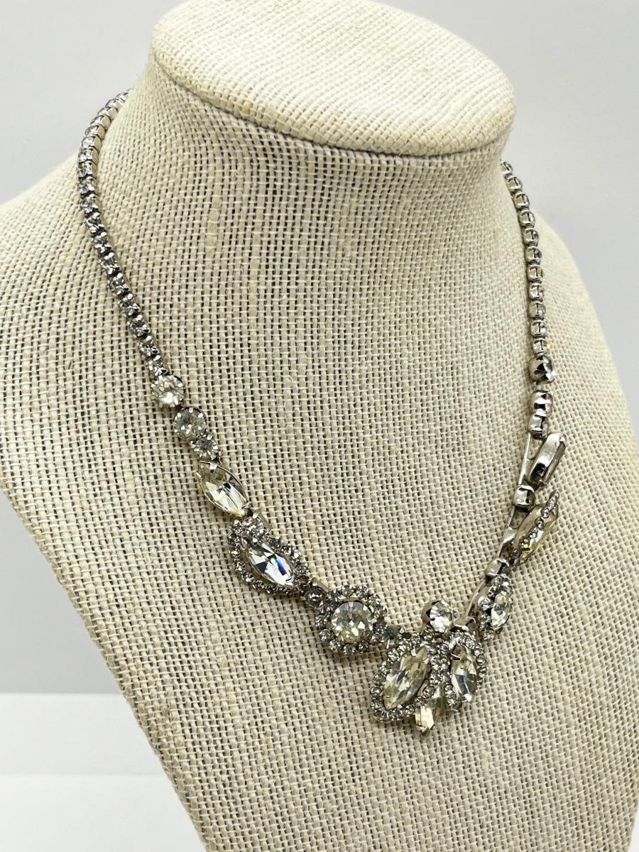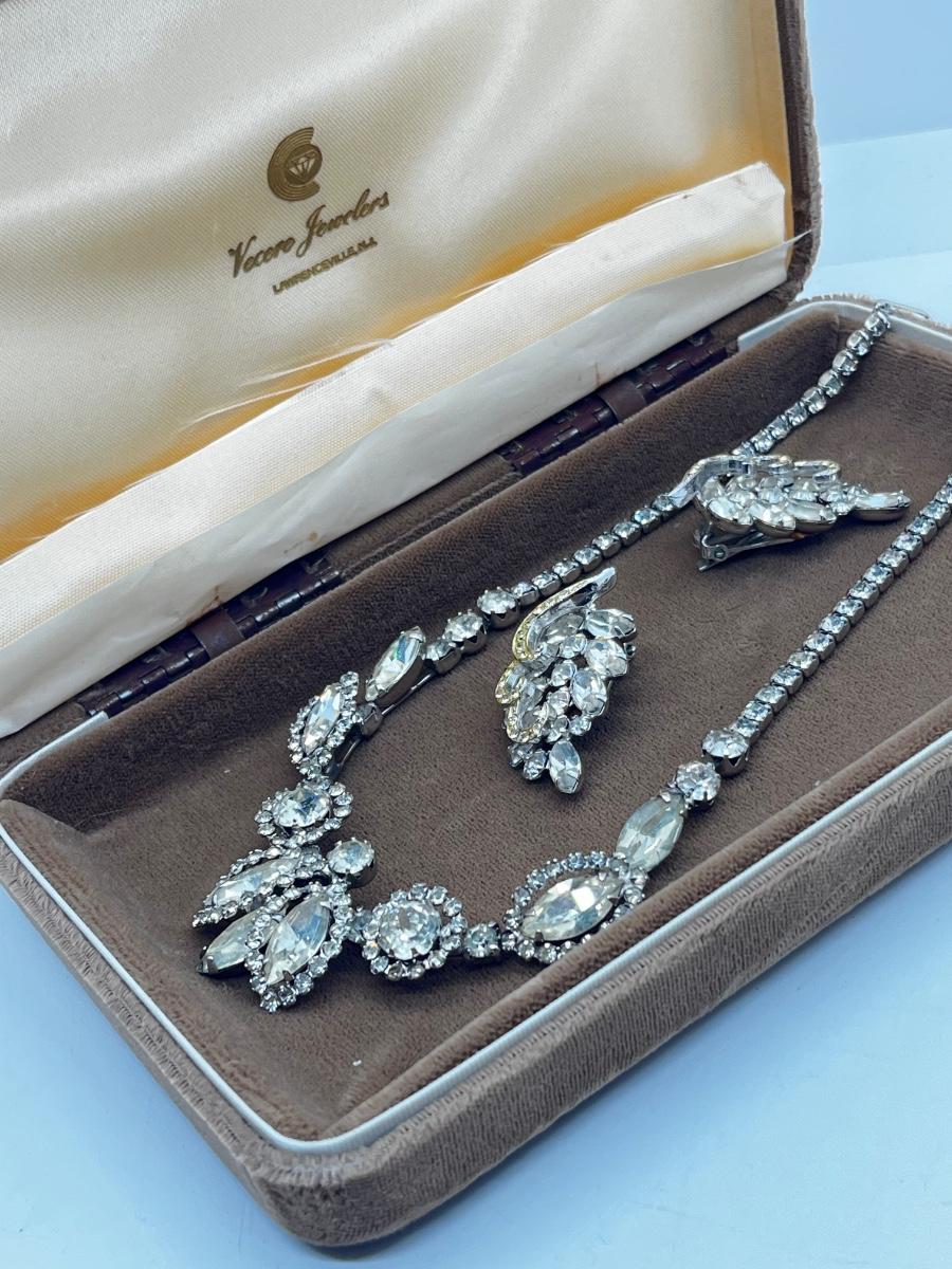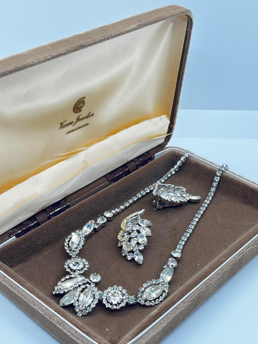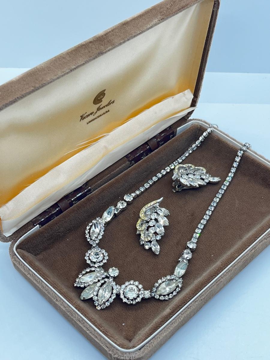 LOT 238J: Vintage 16" Rhinestone Necklace and Weiss Clip On Earrings