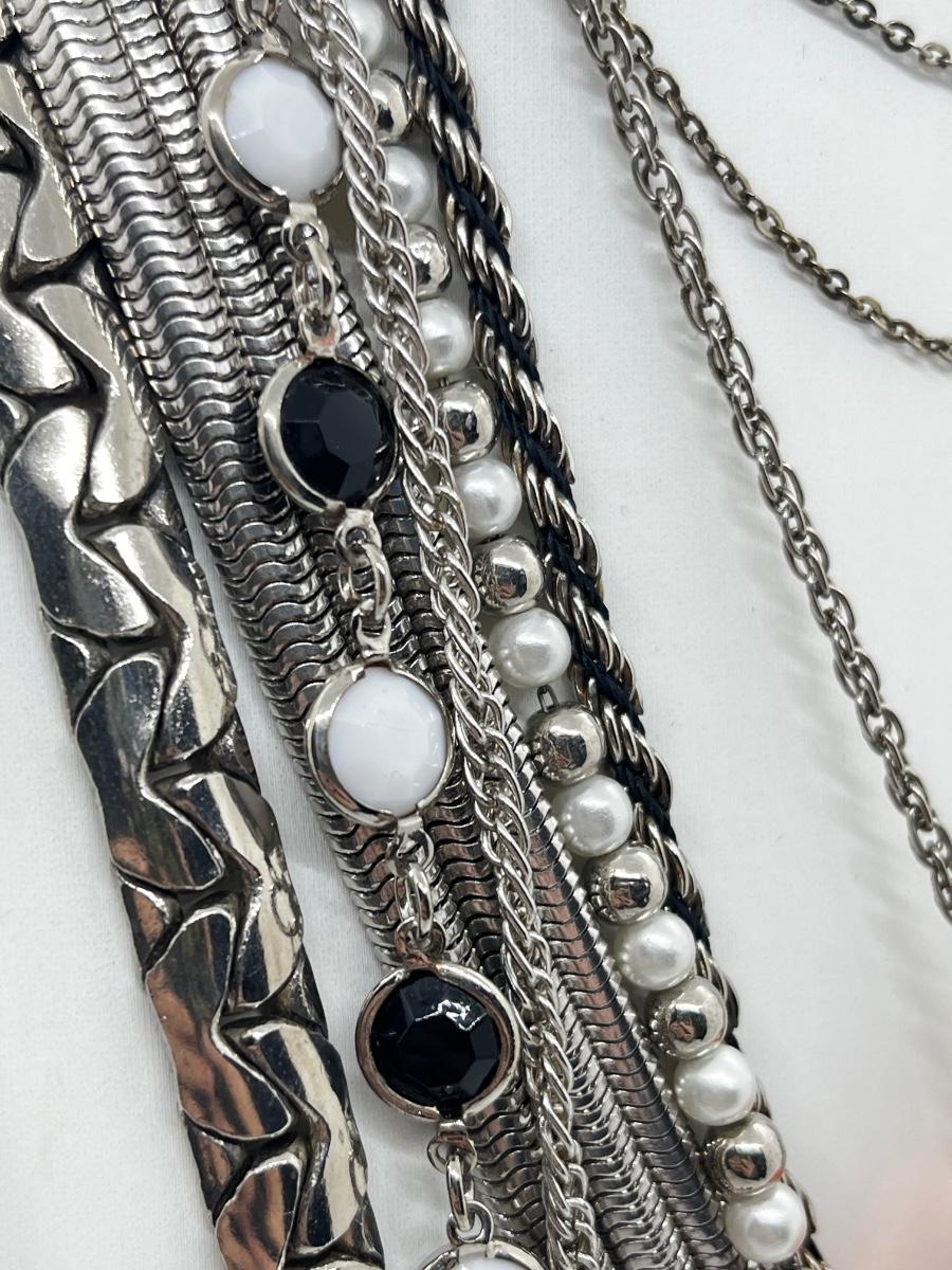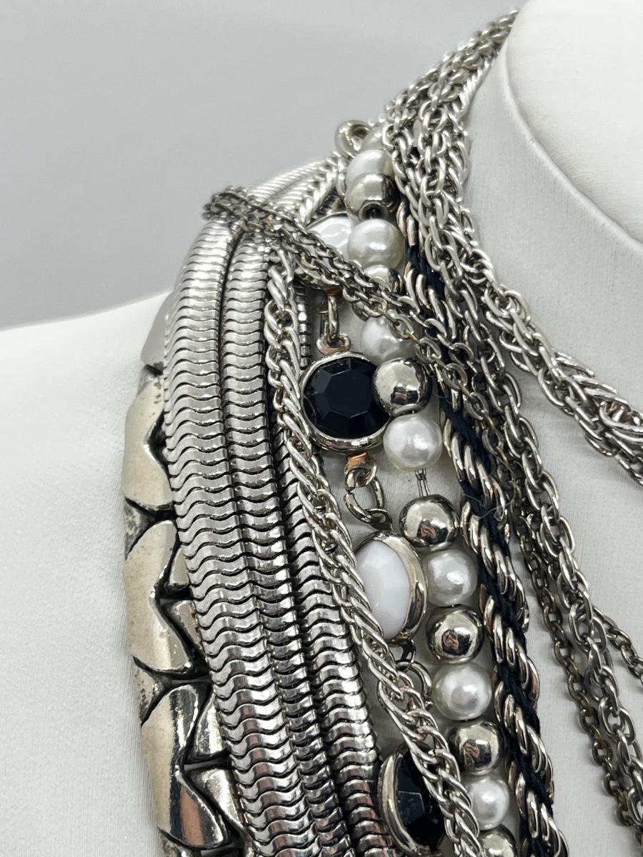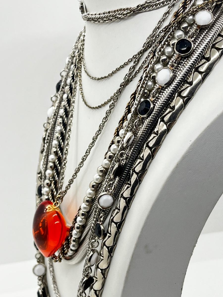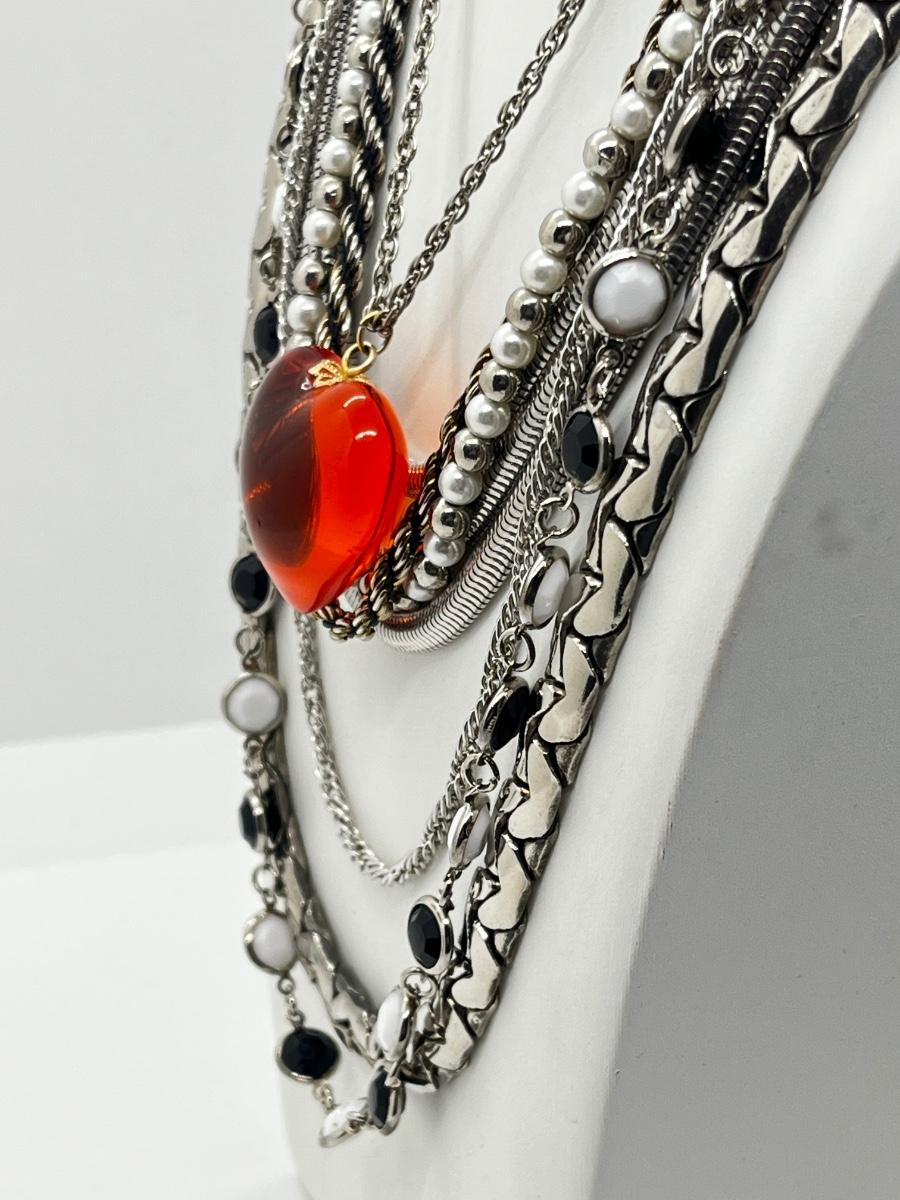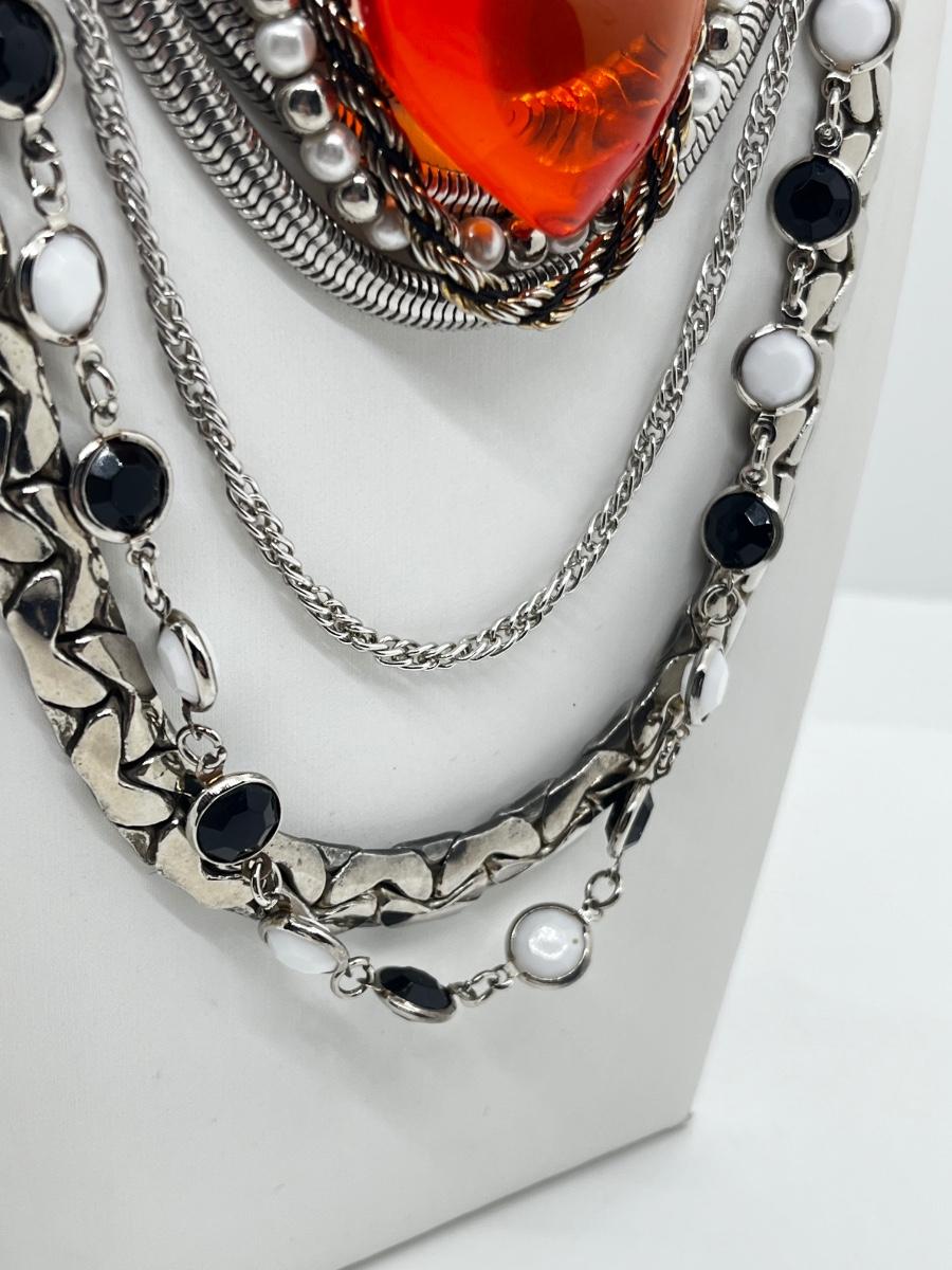 LOT 239: Silvertone and Black Necklace Collection with Showstopper Giant Red Glass Heart Shaped Pendant