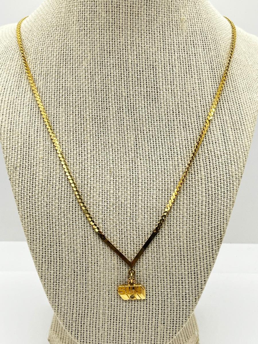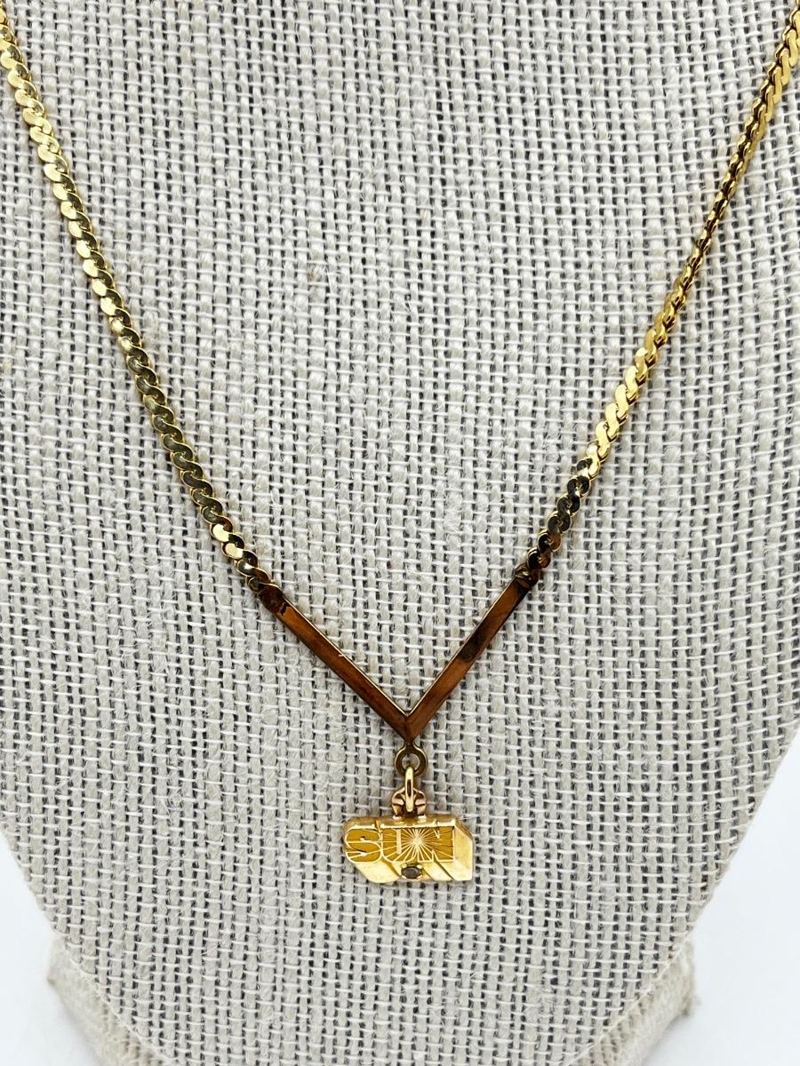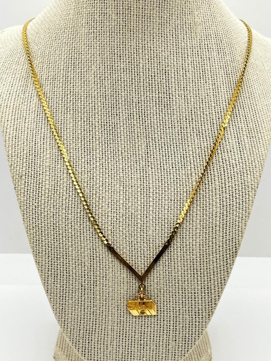 LOT 240J: 14K Yellow Gold Sun Oil Logo Charm Necklace with Diamond Chip