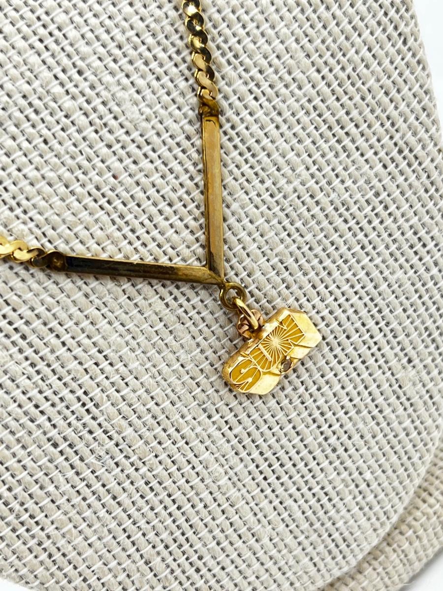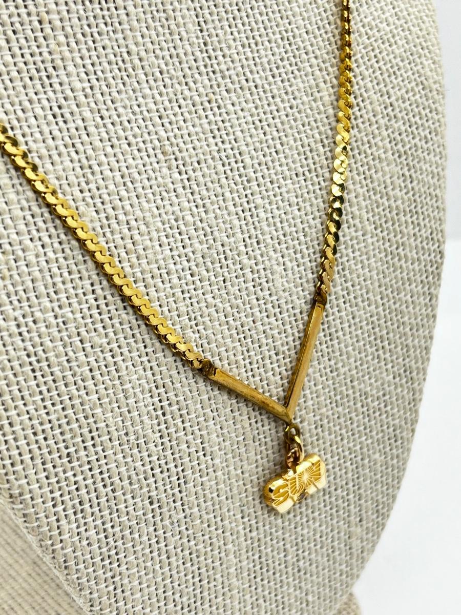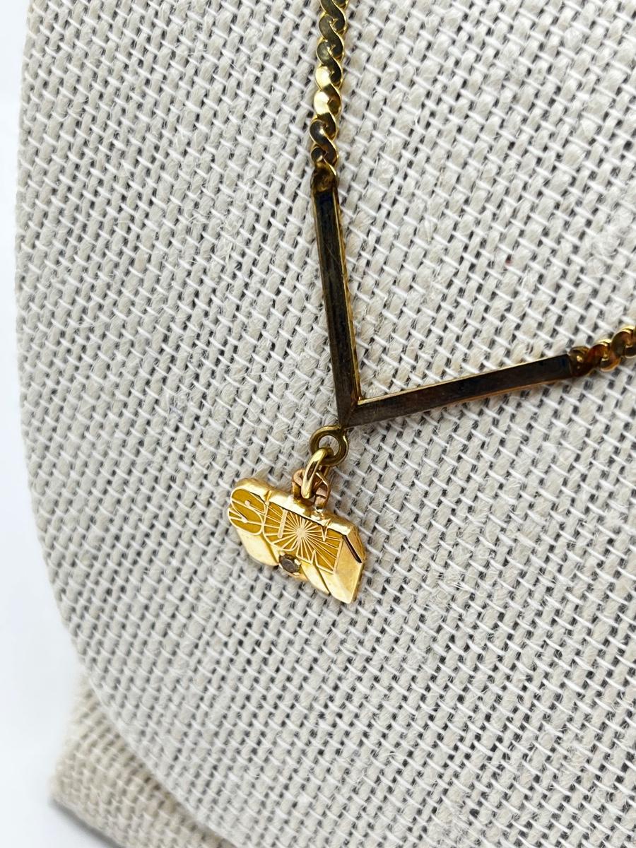 LOT 240J: 14K Yellow Gold Sun Oil Logo Charm Necklace with Diamond Chip