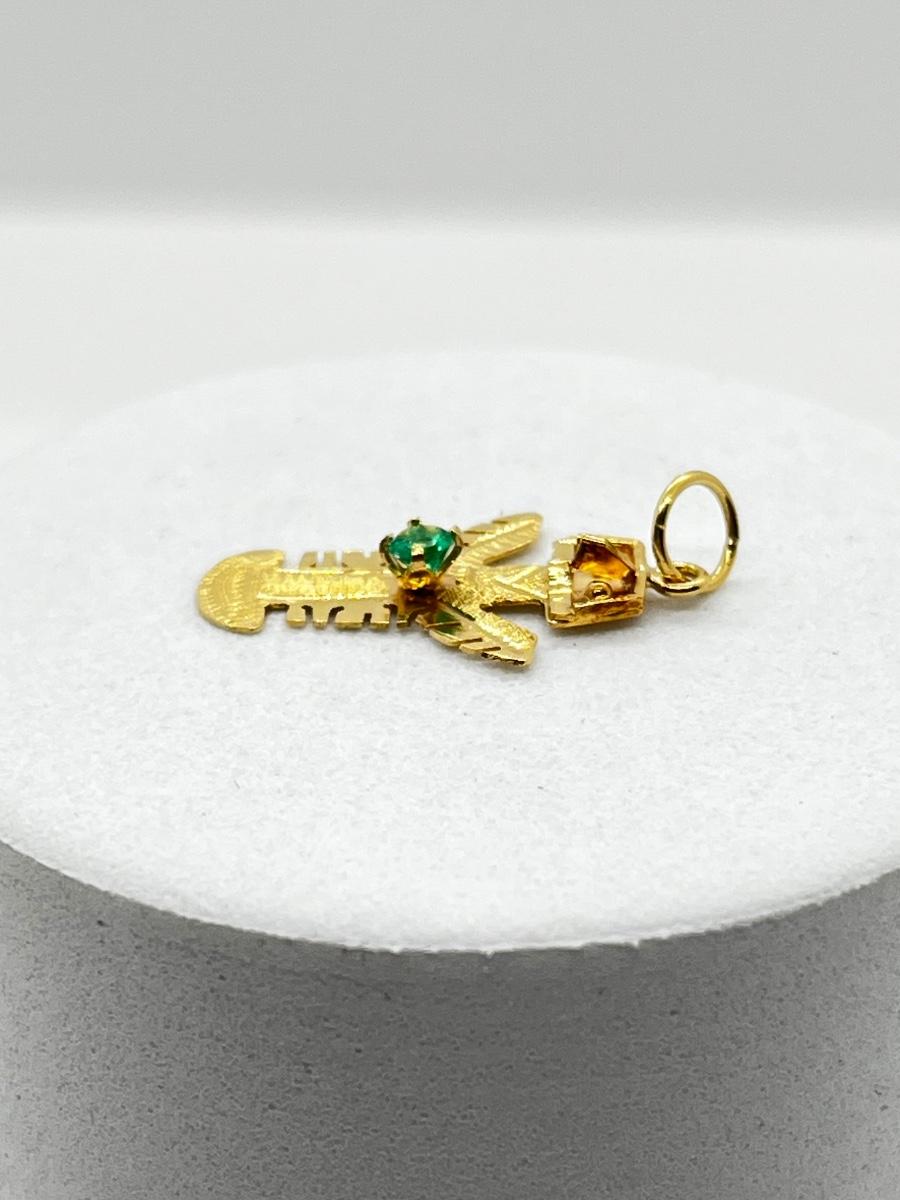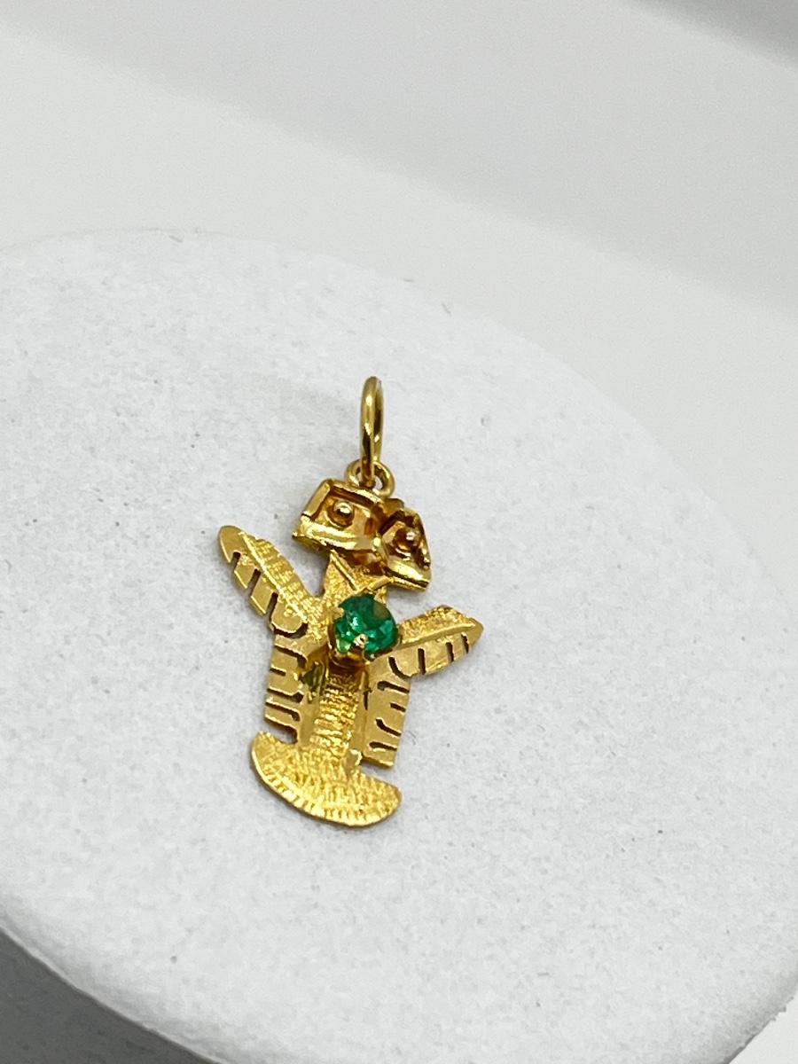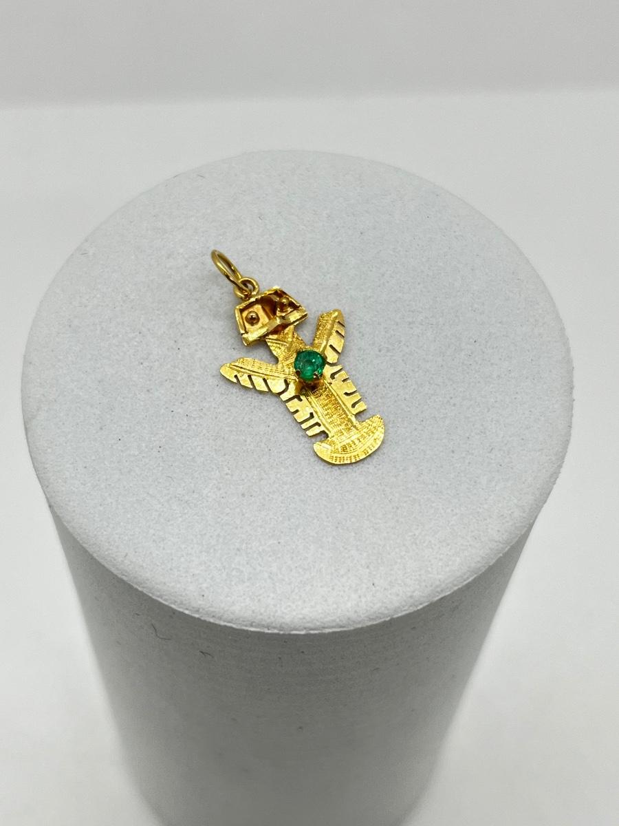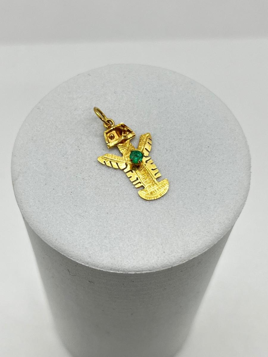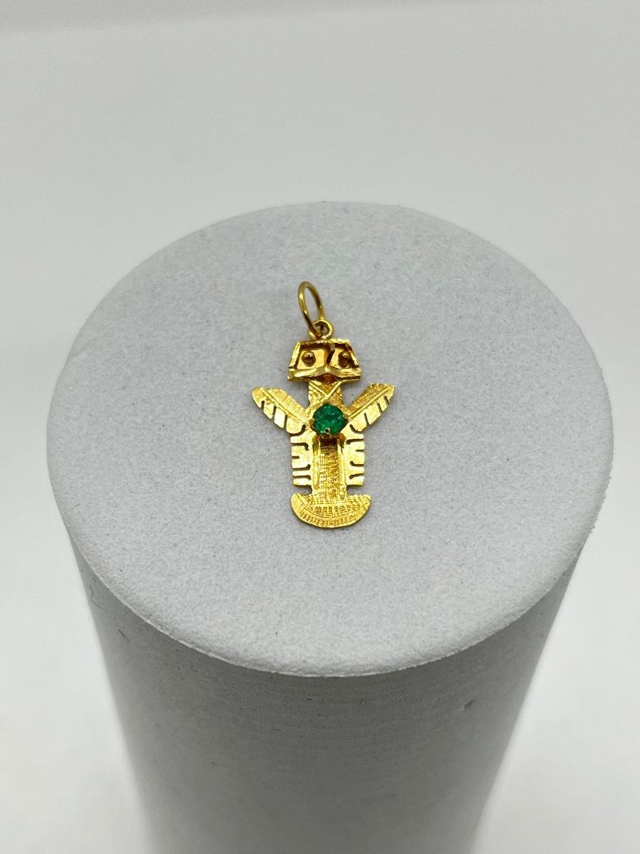 LOT 248J: 18K Yellow Gold and Emerald Chip Mayan Indian Sky God Charm - 0.7 GTW
