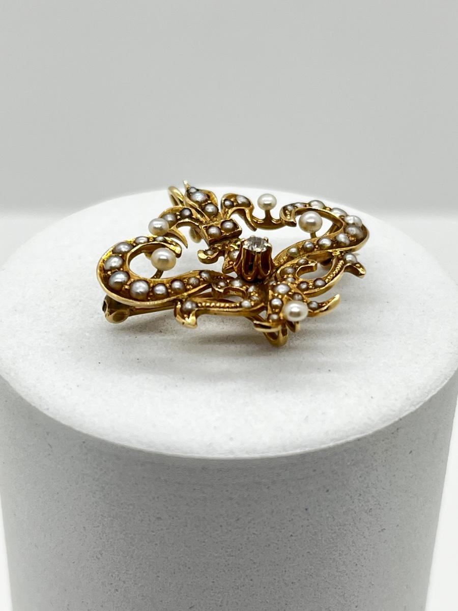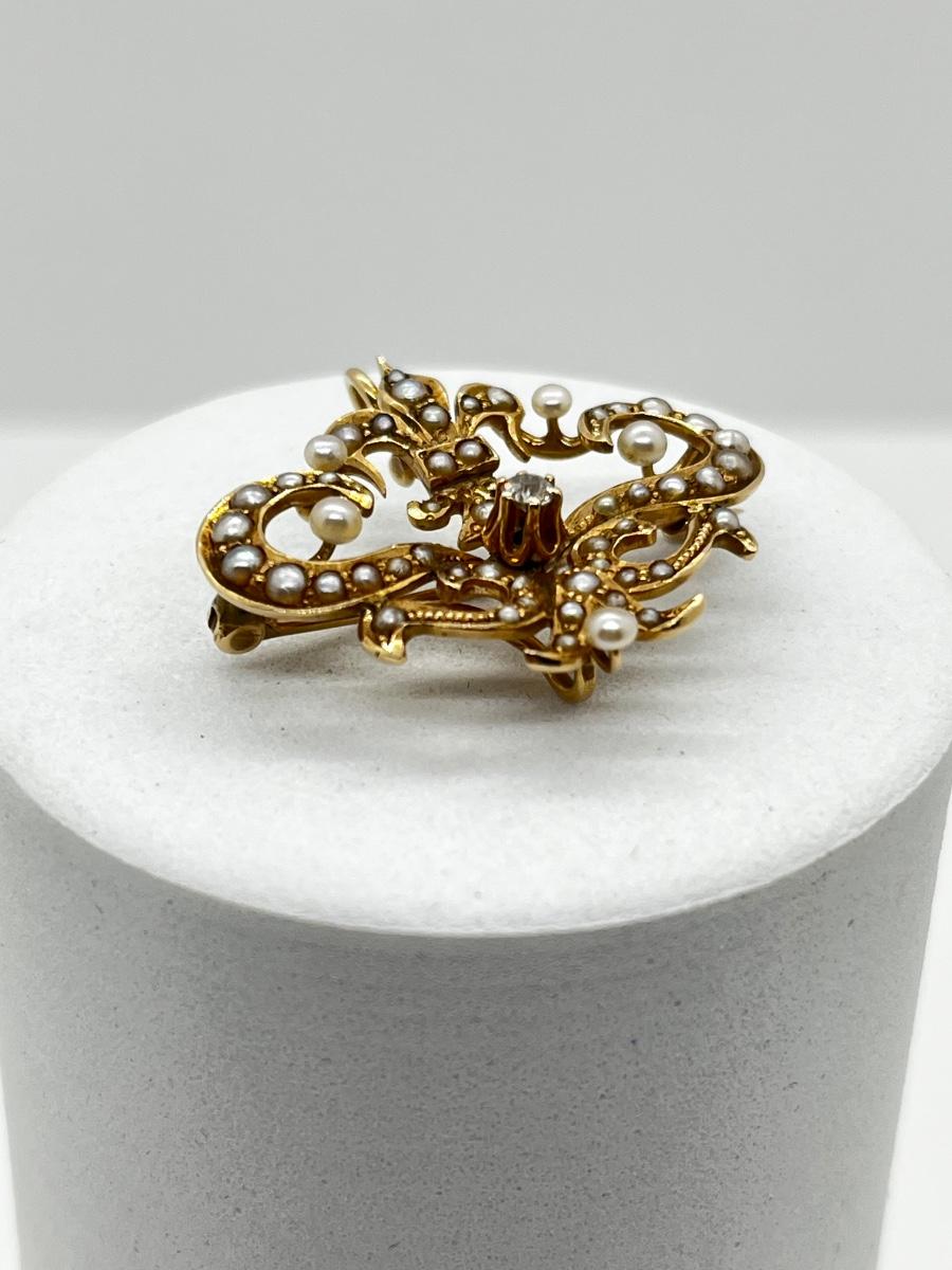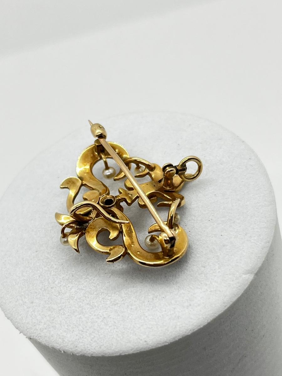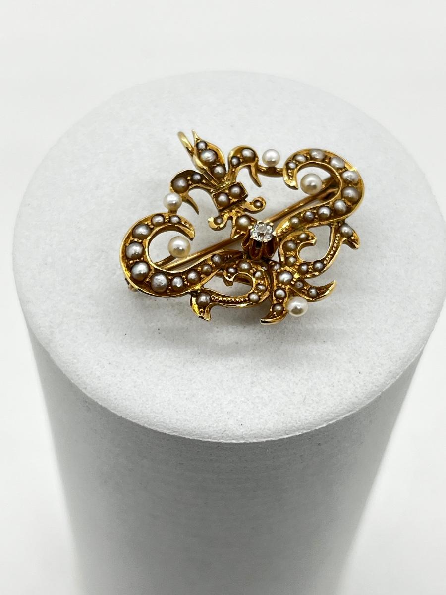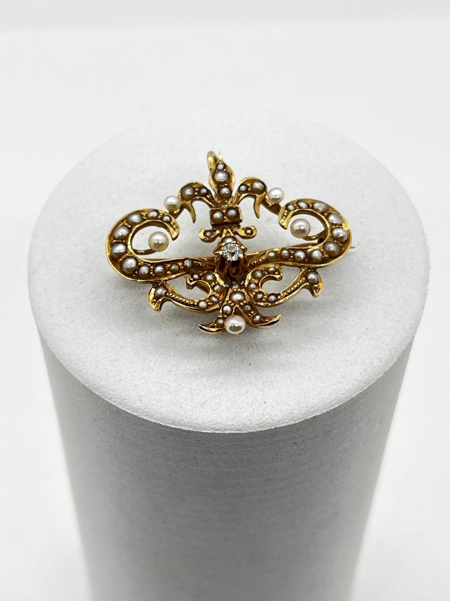 LOT 249J: 14K Yellow Gold Antique Seed Pearl Pendant/Brooch - 3.9 GTW