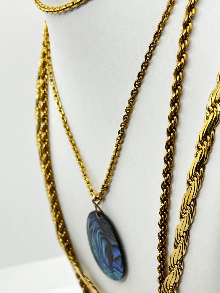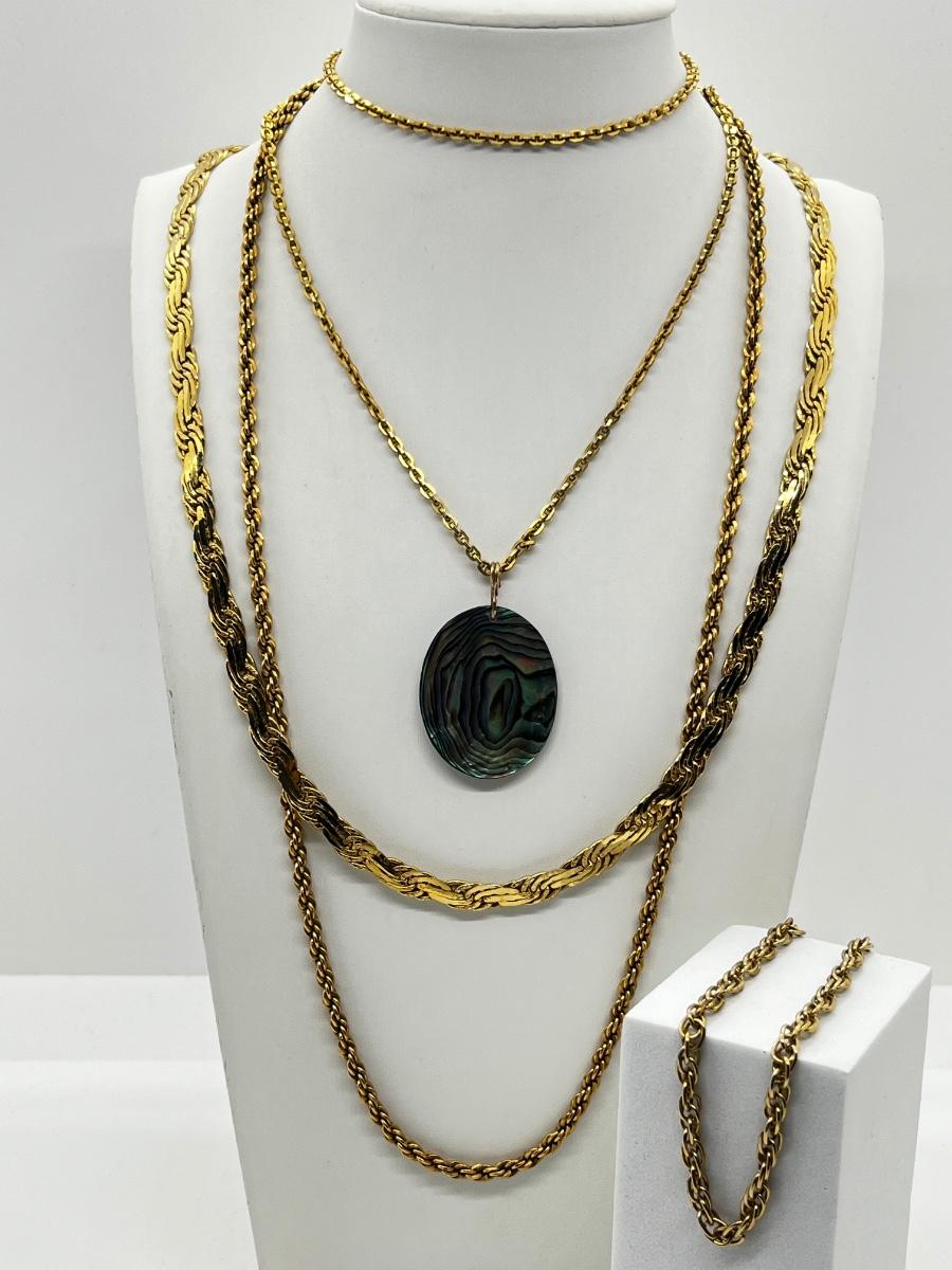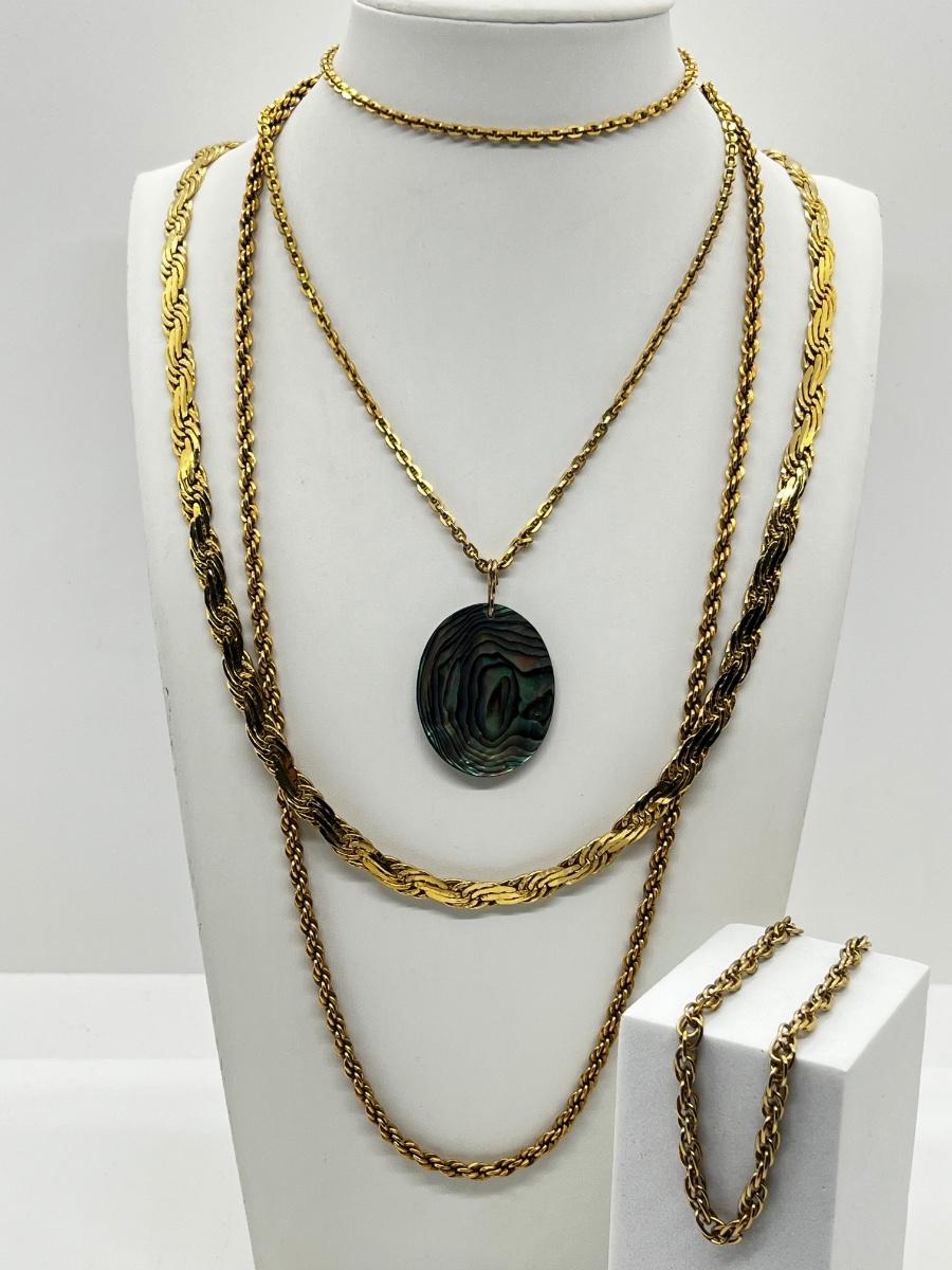 LOT 267J: Abolone Pendant Necklace with other Goldtone Necklaces Plus an 8.5" Sarah Coventry Chain Bracelet