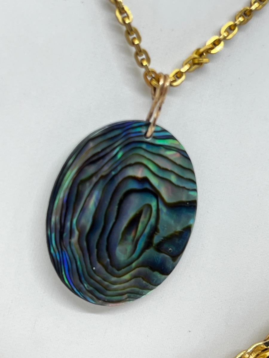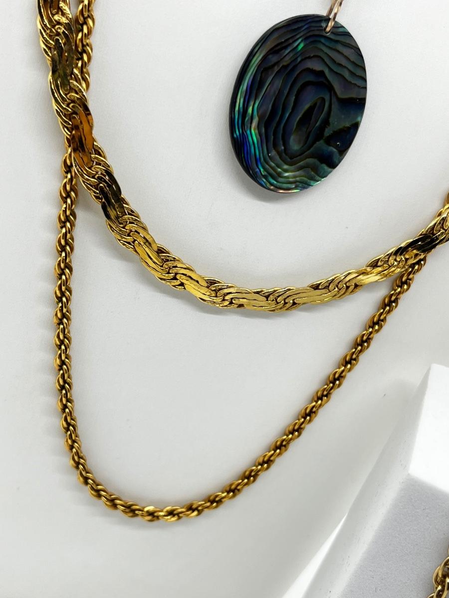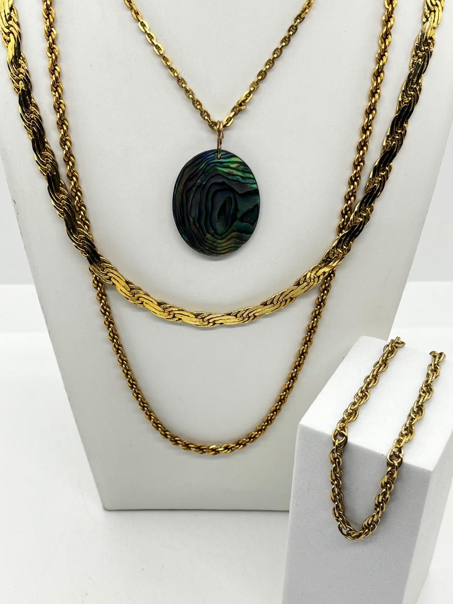 LOT 267J: Abolone Pendant Necklace with other Goldtone Necklaces Plus an 8.5" Sarah Coventry Chain Bracelet
