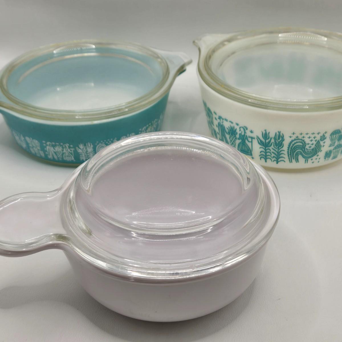 LOT 16K: Vintage Pyrex Butterprint Casserole Dishes and Other Glass Baking Dishes