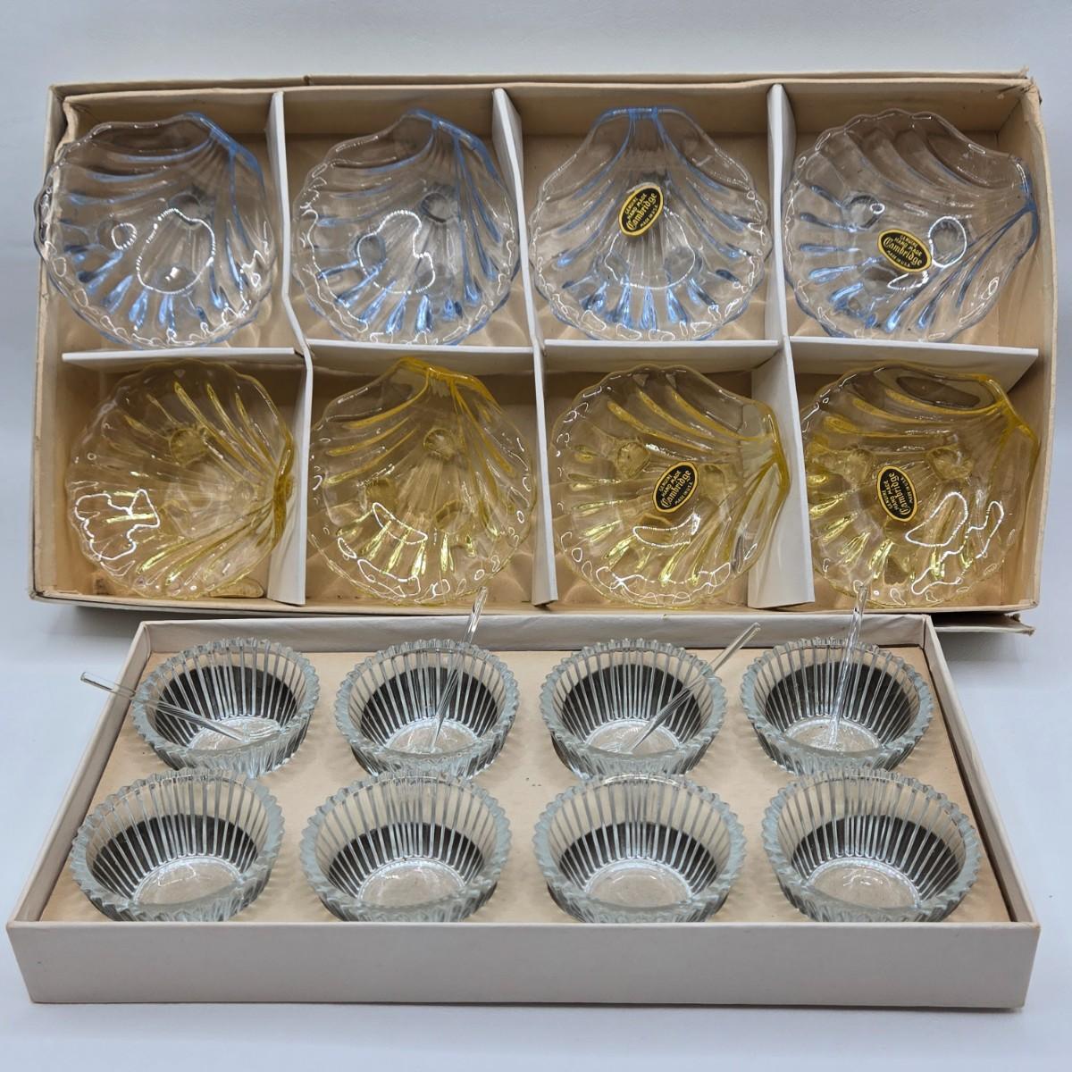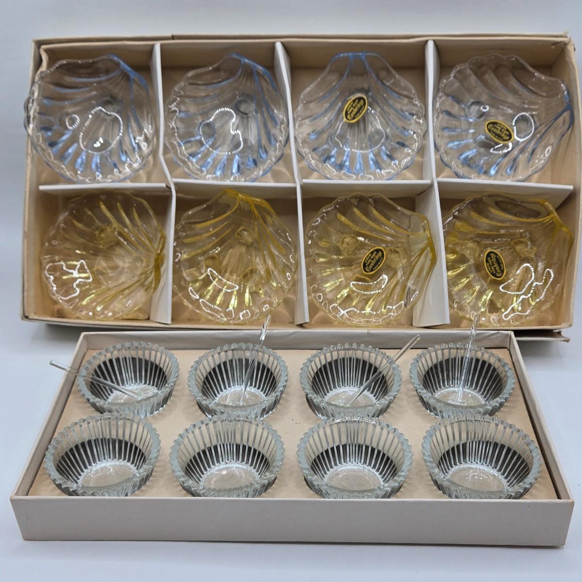 LOT 41D: MCM Vintage Cambridge Footed Shell Trinket Dishes and Salt Cellars with Crystal Shovels