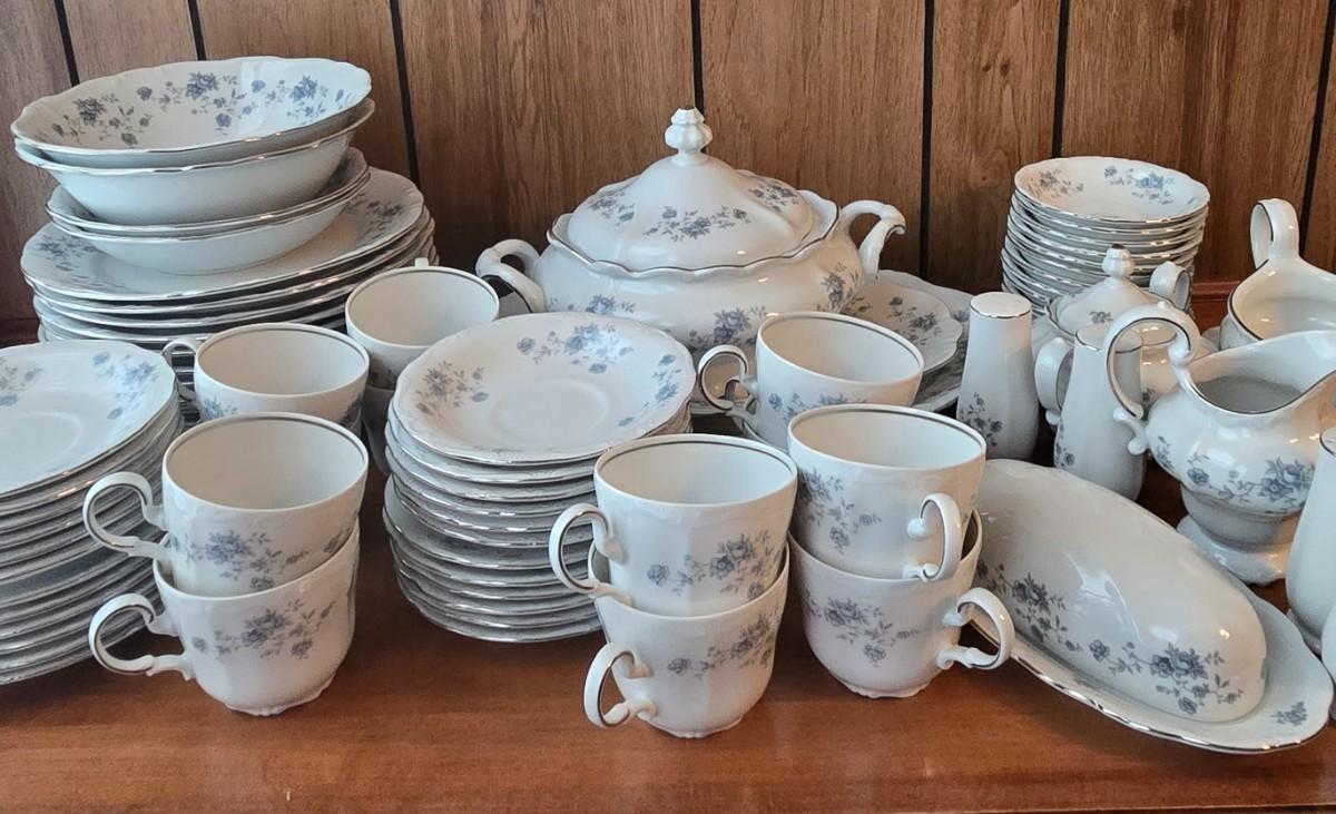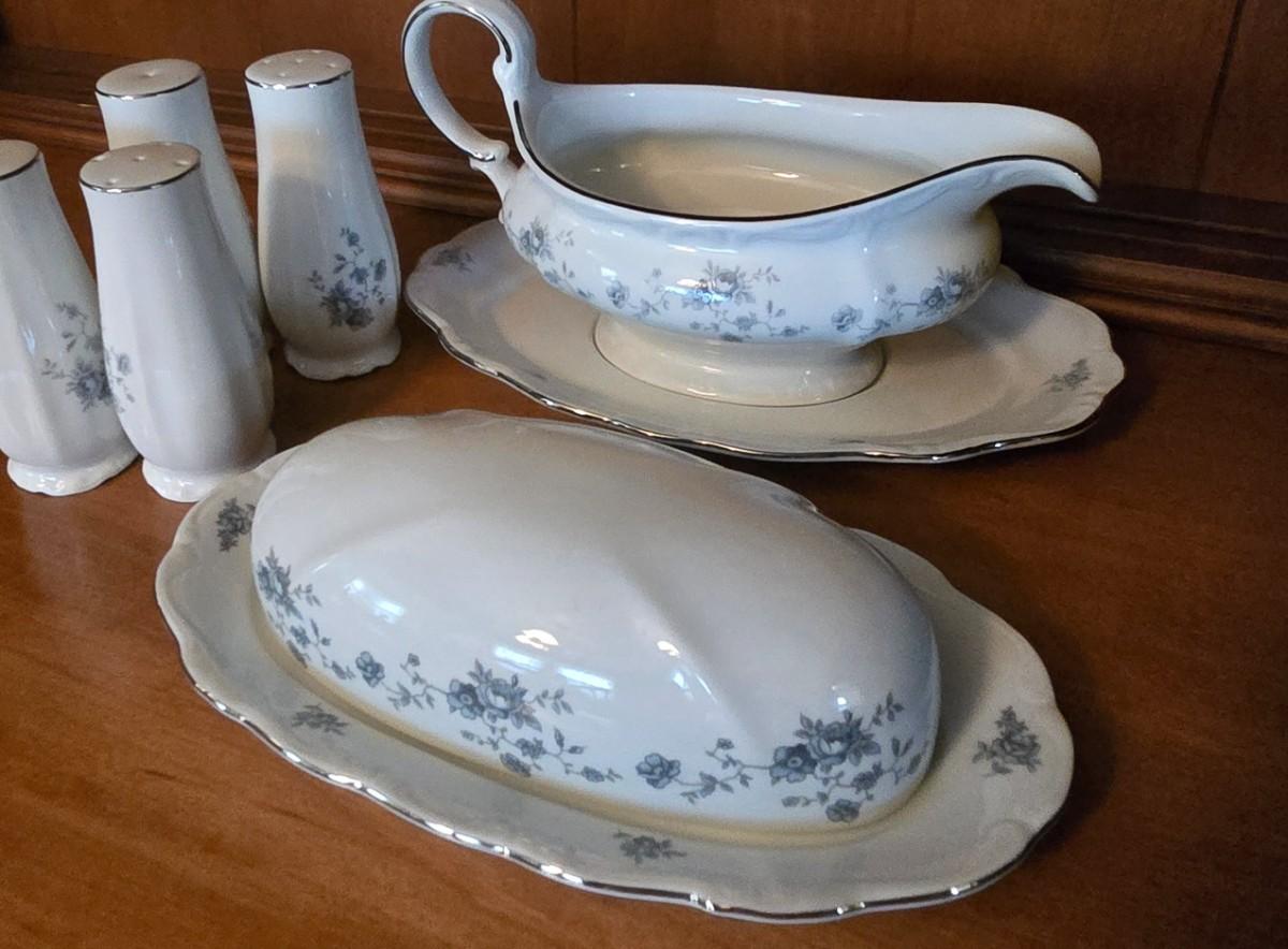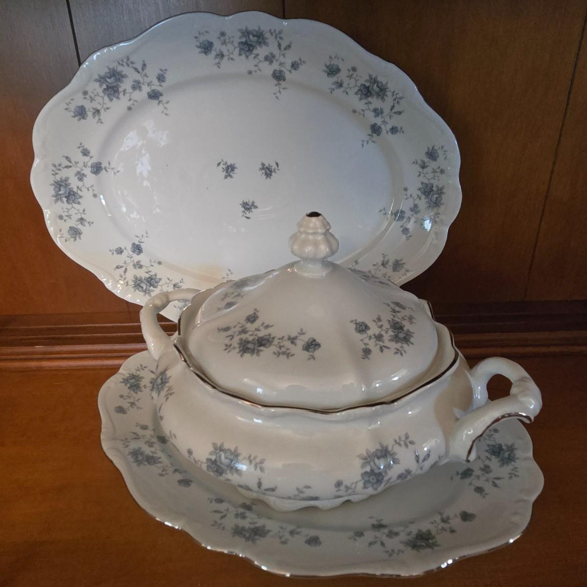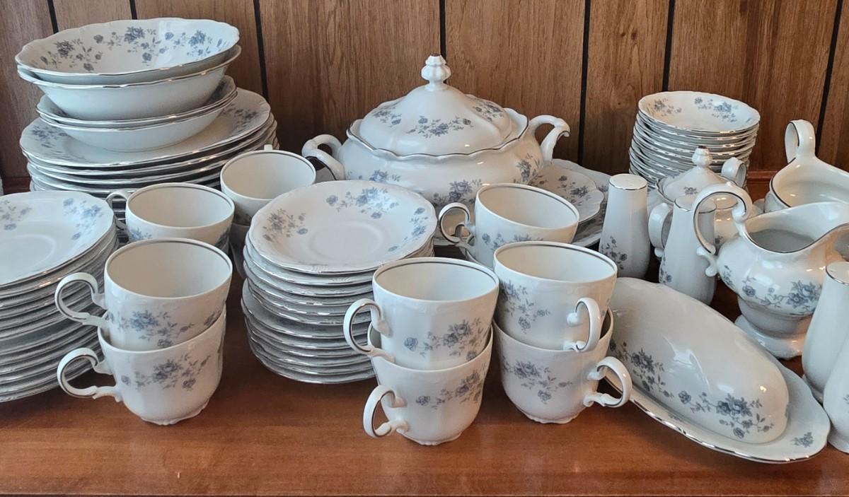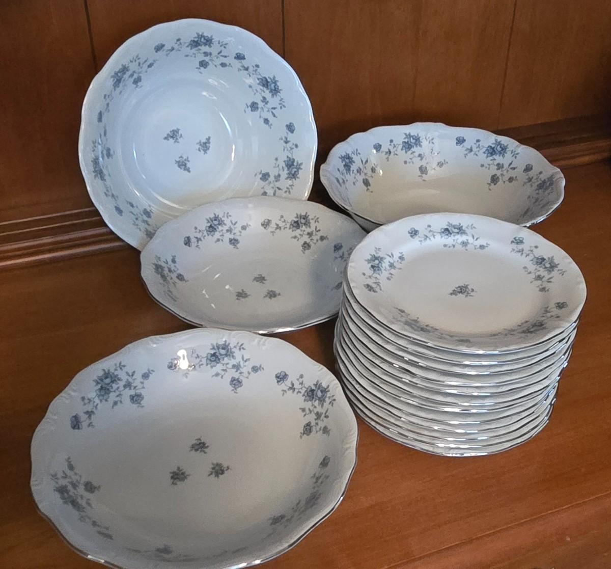 LOT 46D: Complete Set of 12 Johann Haviland Bavaria Germany Blue Garland China Including Service Ware