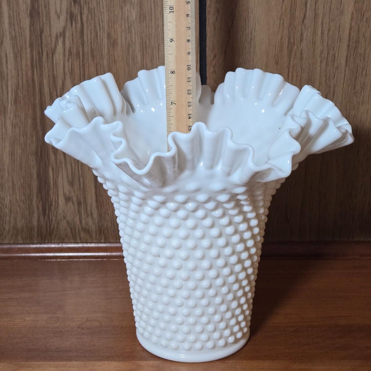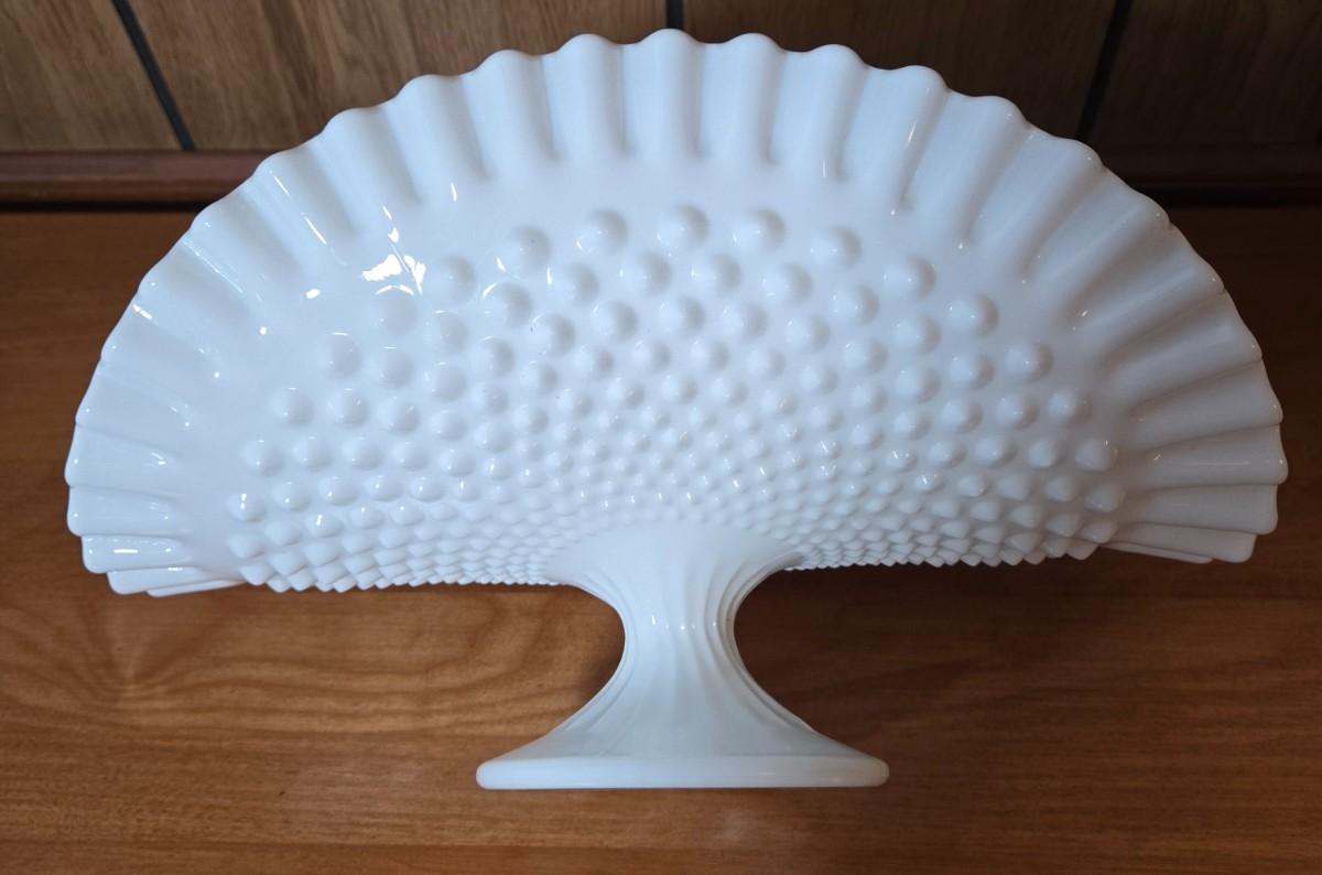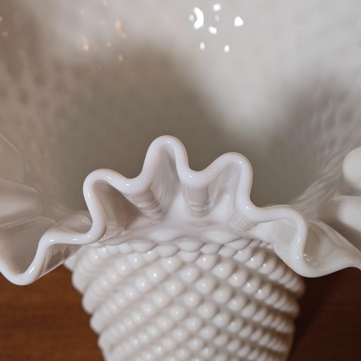 LOT 50M: Vintage Fenton Hobnail Milk Glass Fruit Bowl, Vase, and Candle Holder Bowl