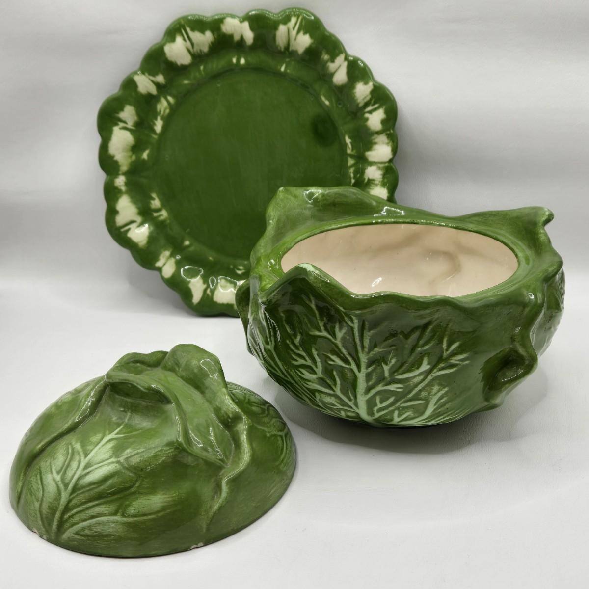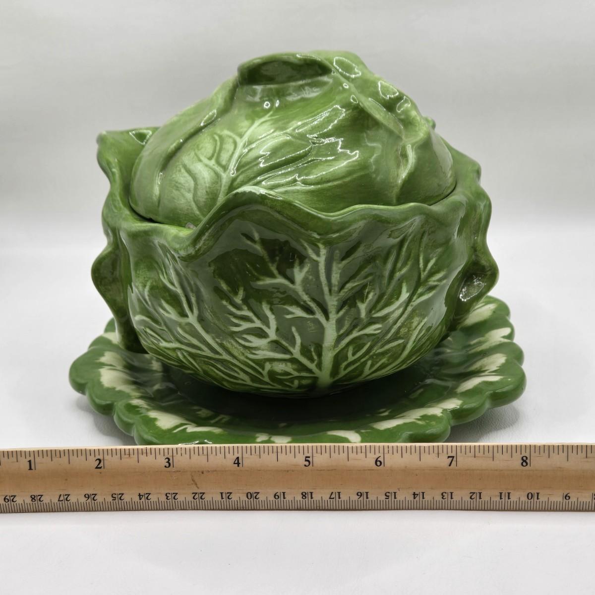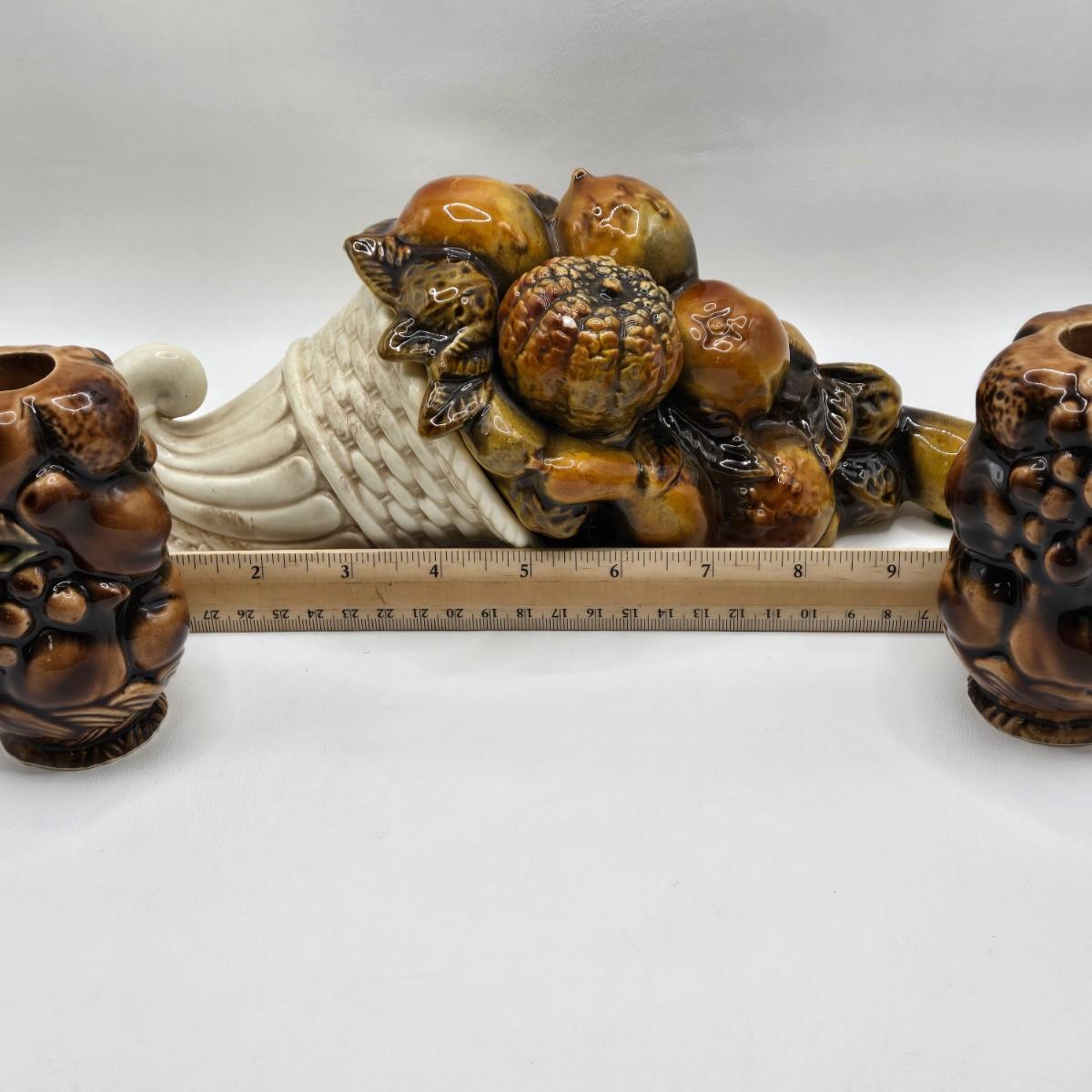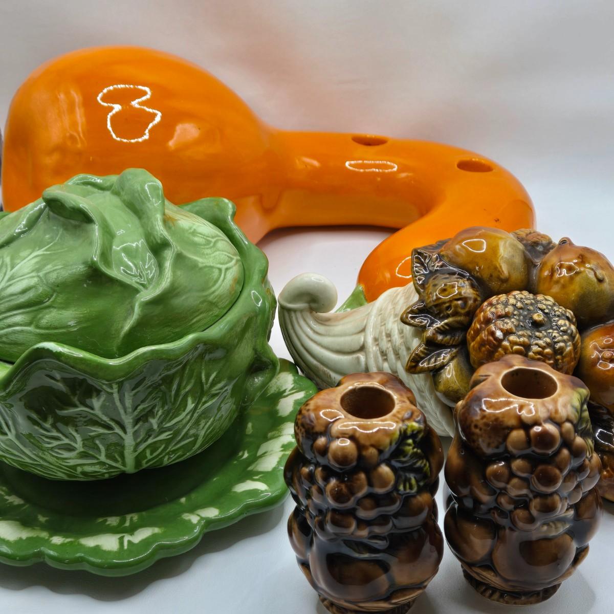 LOT 71K: Vintage Inarco Japan Cornucopia with Matching Candle stick Holders, Holland Mold Cabbage Tureen, and Ceramic Gourd Candle Holder Centerpiece