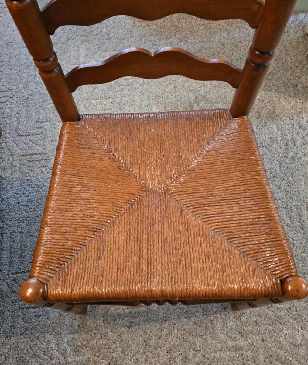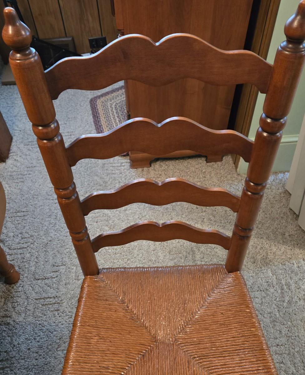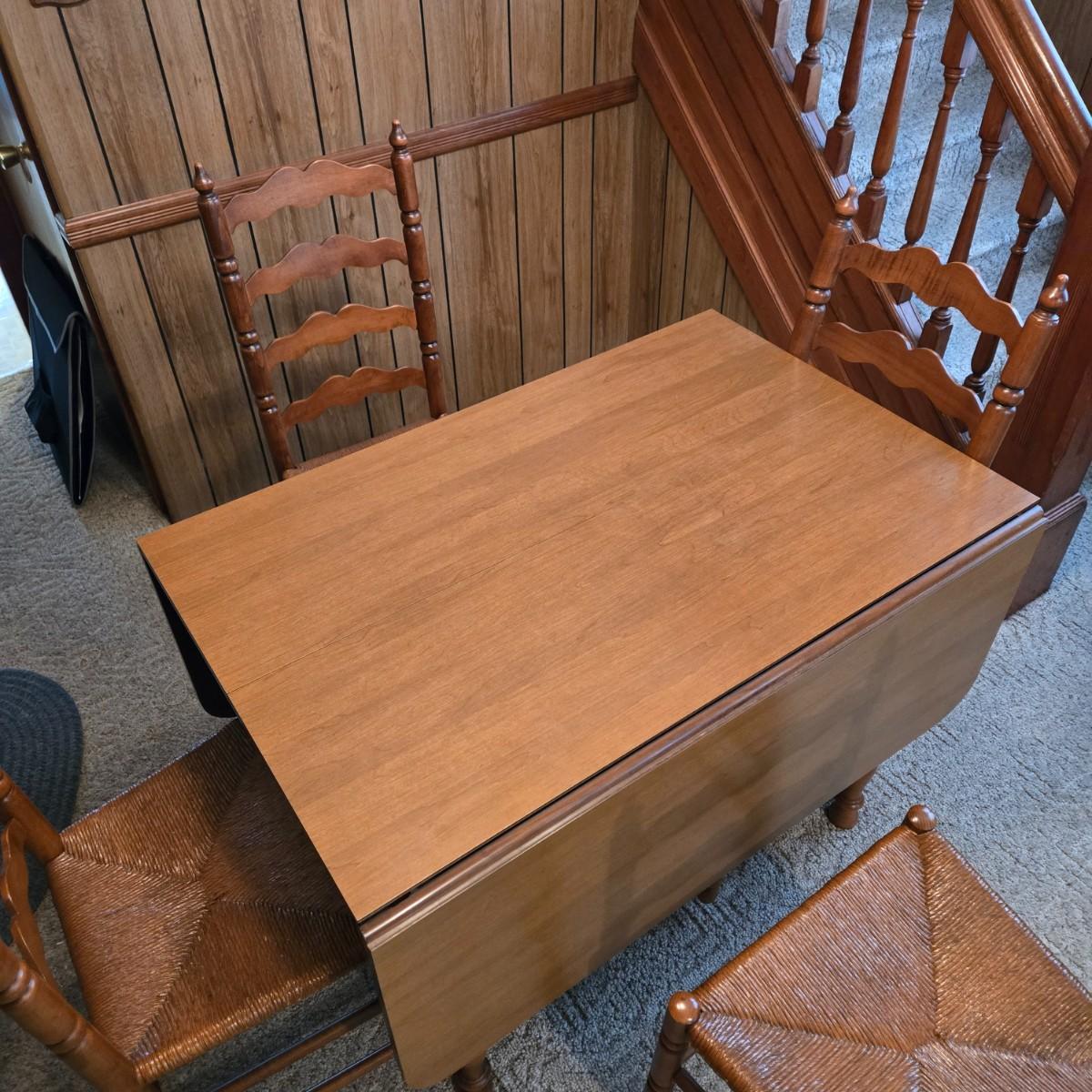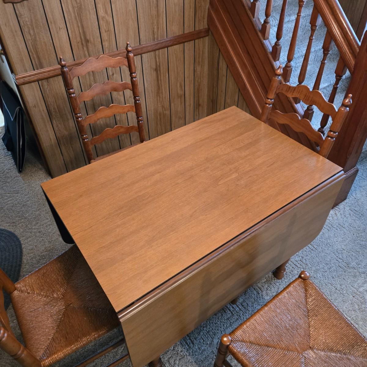 LOT 73D: Beautiful Vintage Drop Leaf Table with 4 Rush Seat, Ladder Back Chairs